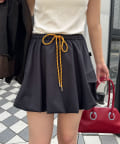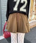 カジュアルなカーゴポケットとウエストゴムでラクな穿き心地を叶え、フロントのひもはリボン結びができるデザイン。