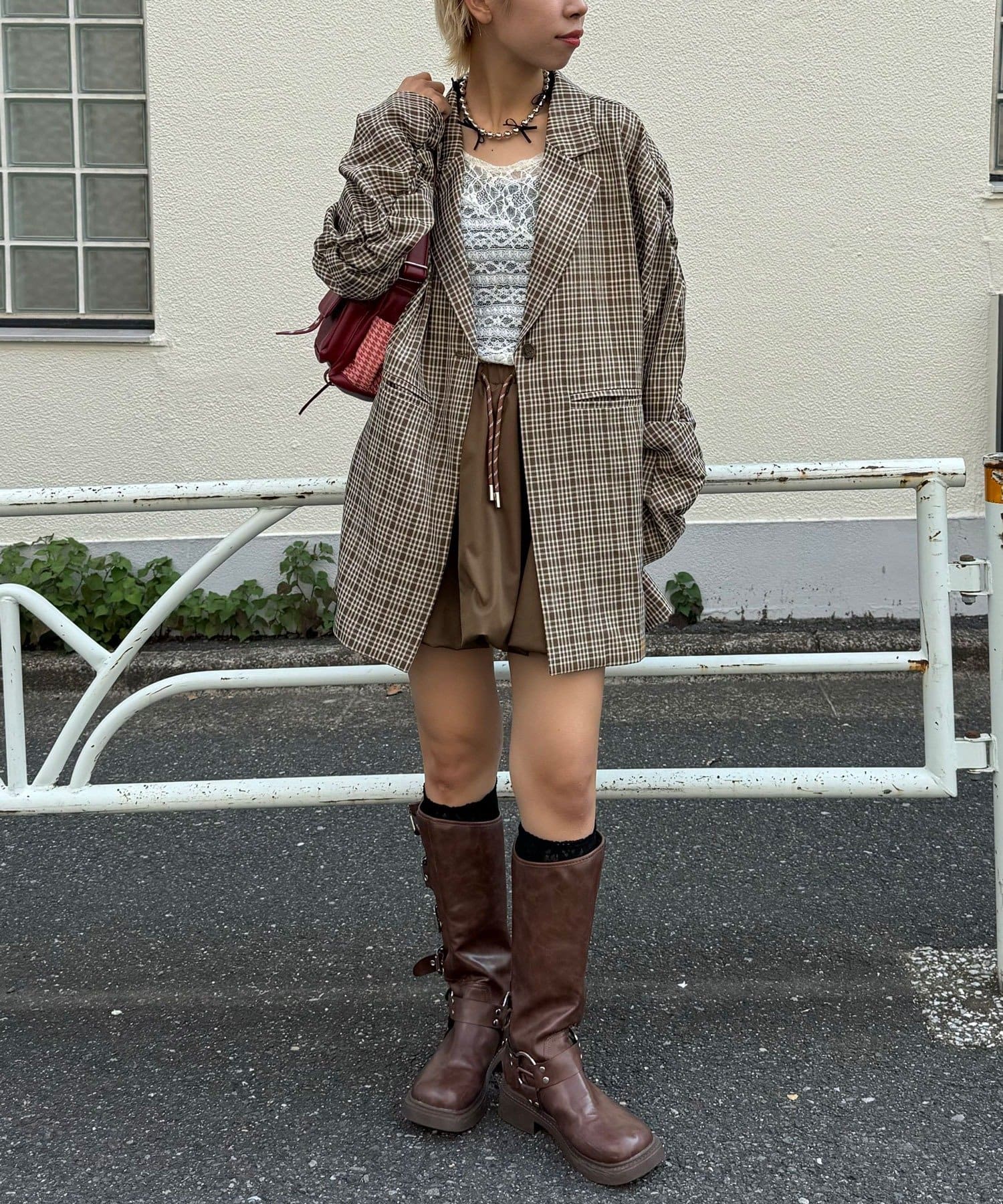 スニーカーやブーツでカジュアルに仕上げれば、旬のカジュアルミックススタイルに。