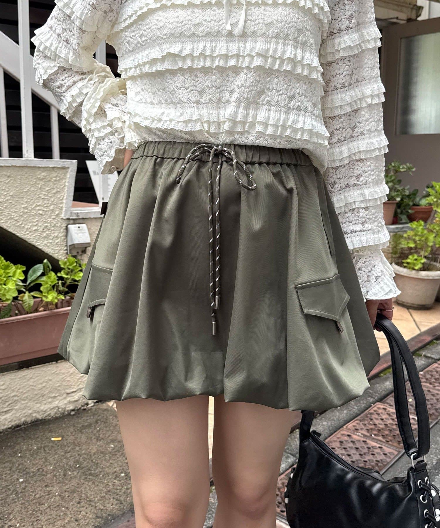 ふんわりバルーンシルエットが可愛いカーゴミニスカート。