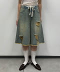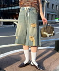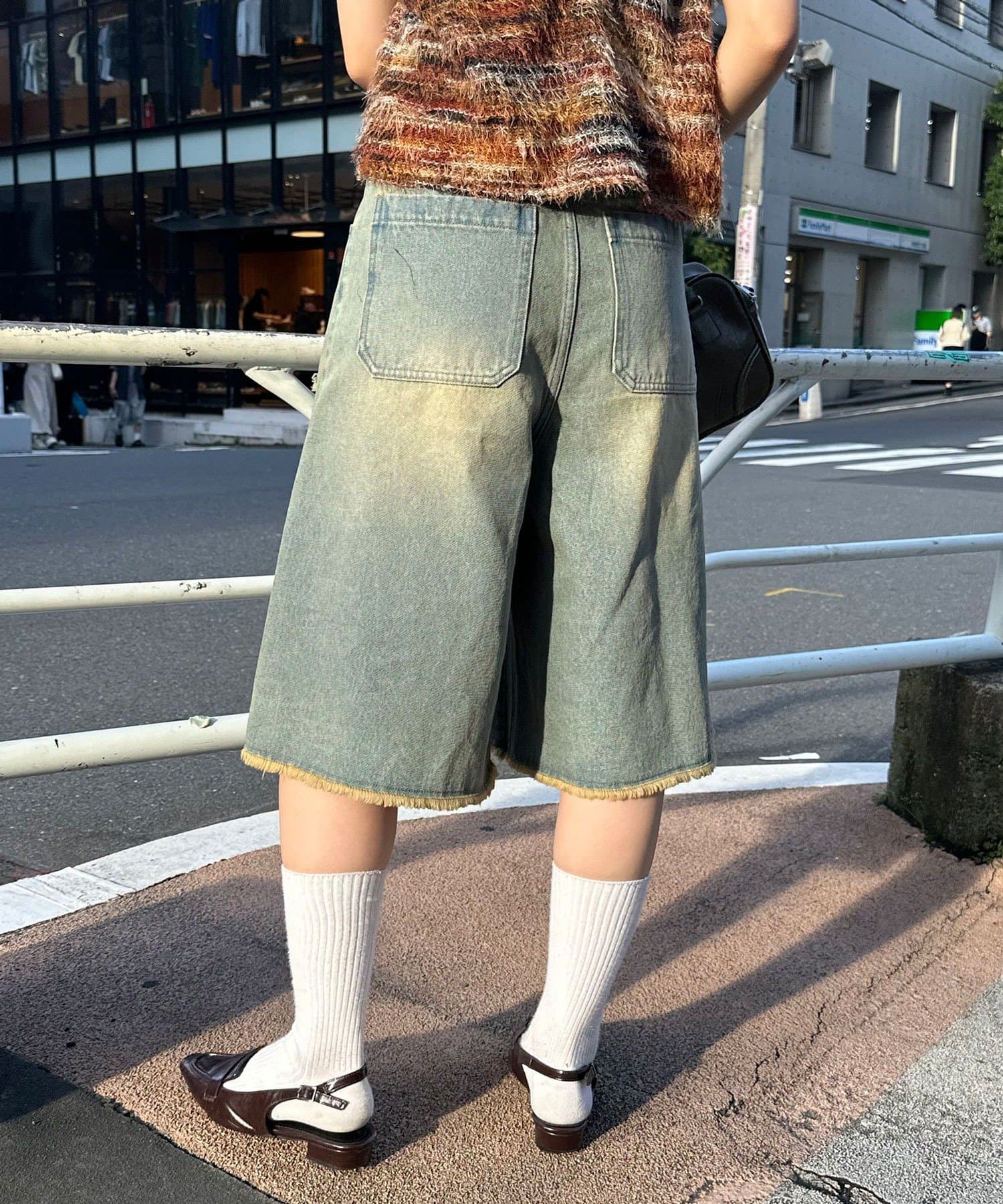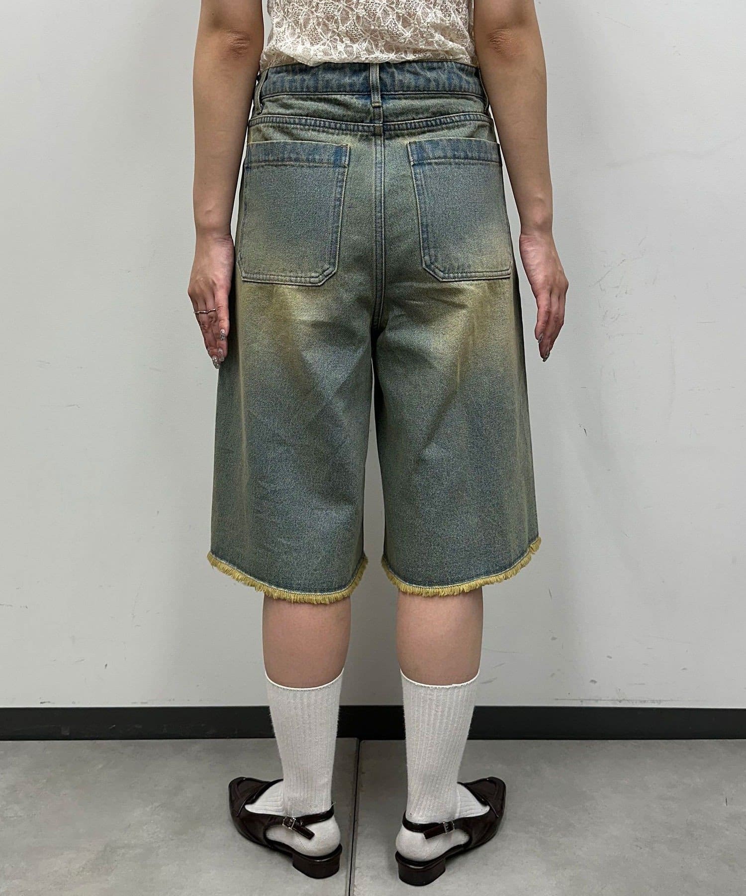 絶妙な色落ち感がかわいい、オーバーダイ加工のハーフデニムパンツ。