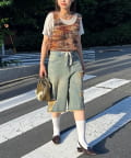 ぴたっとしたトップスを合わせれば、ワイドなパンツとのバランスが◎