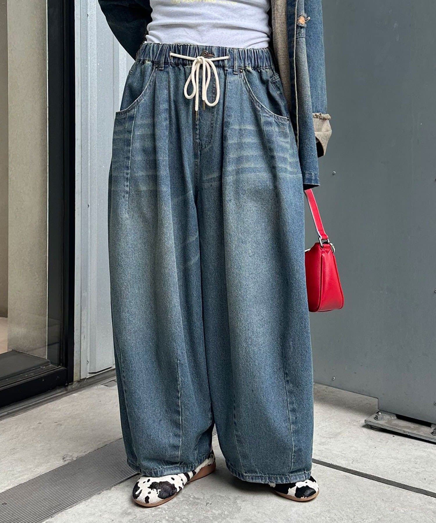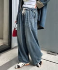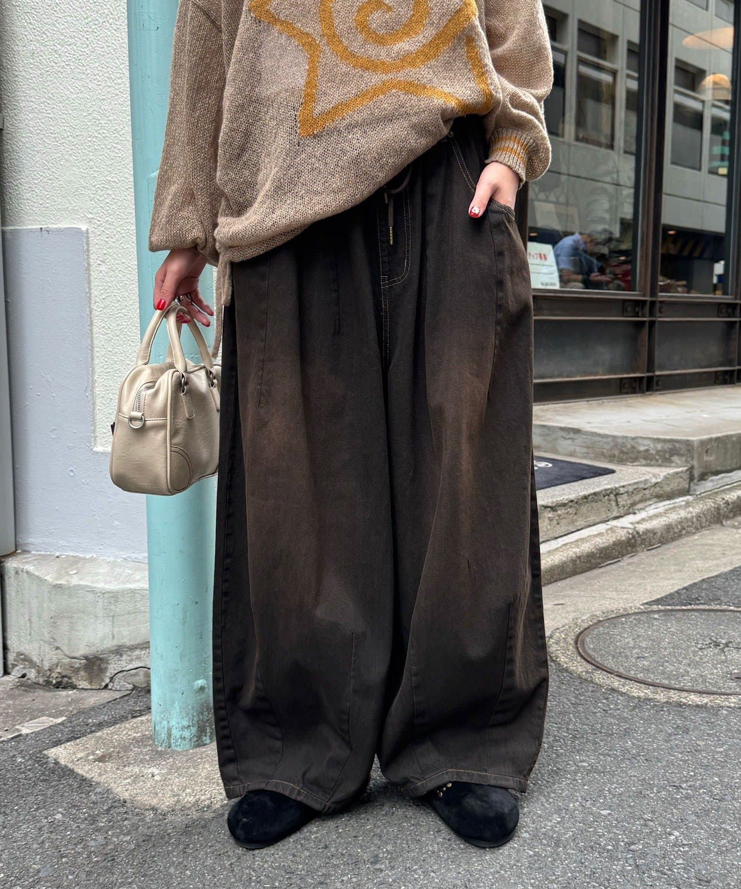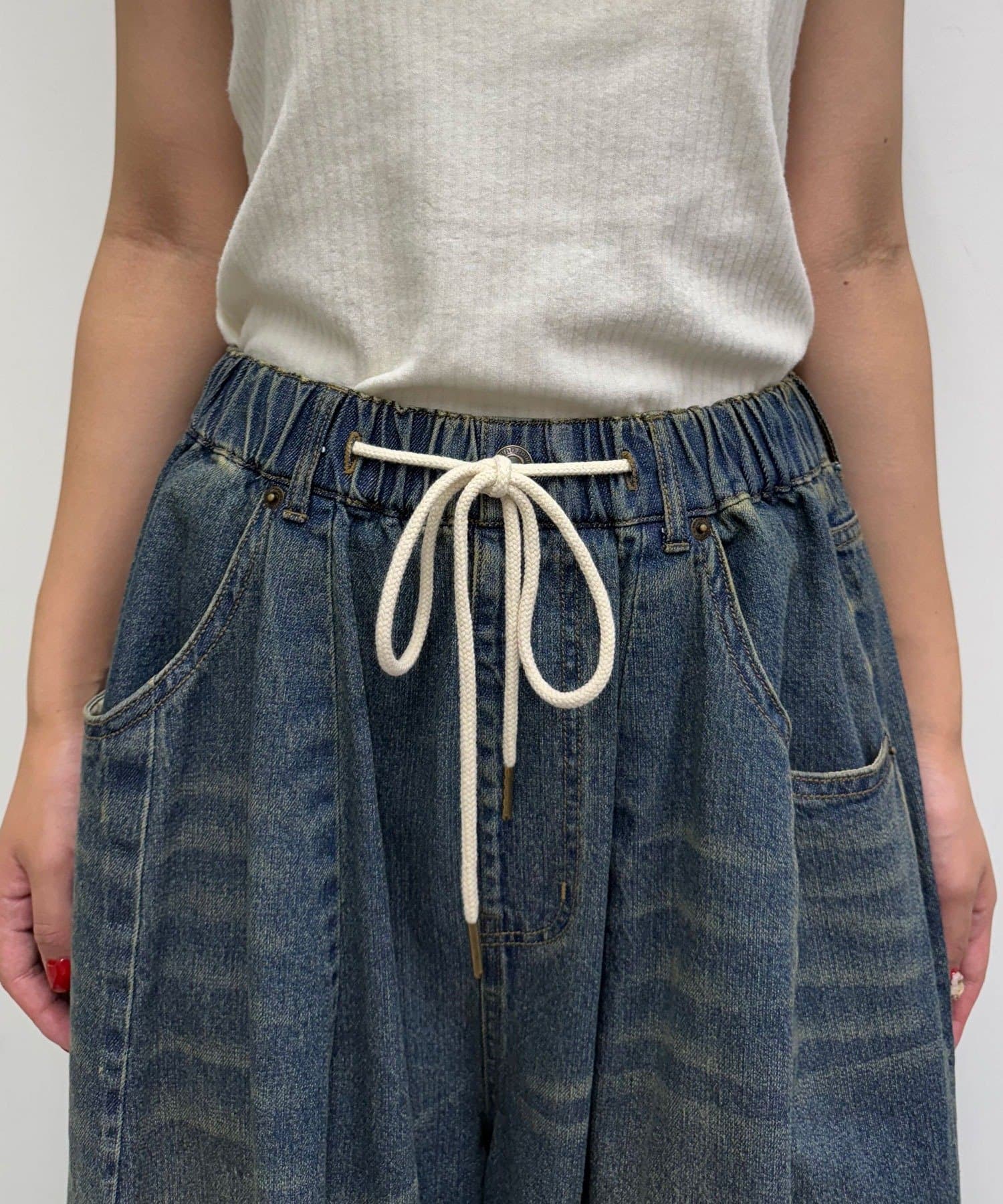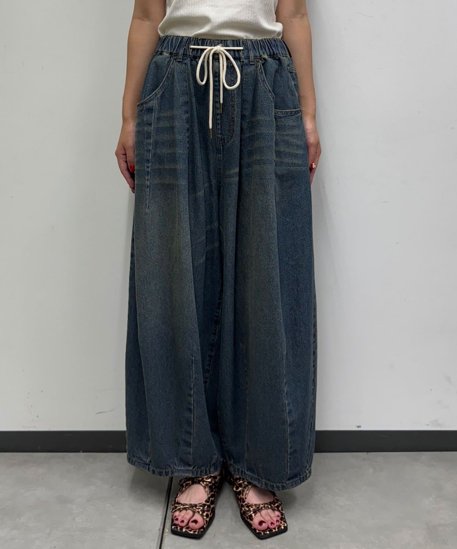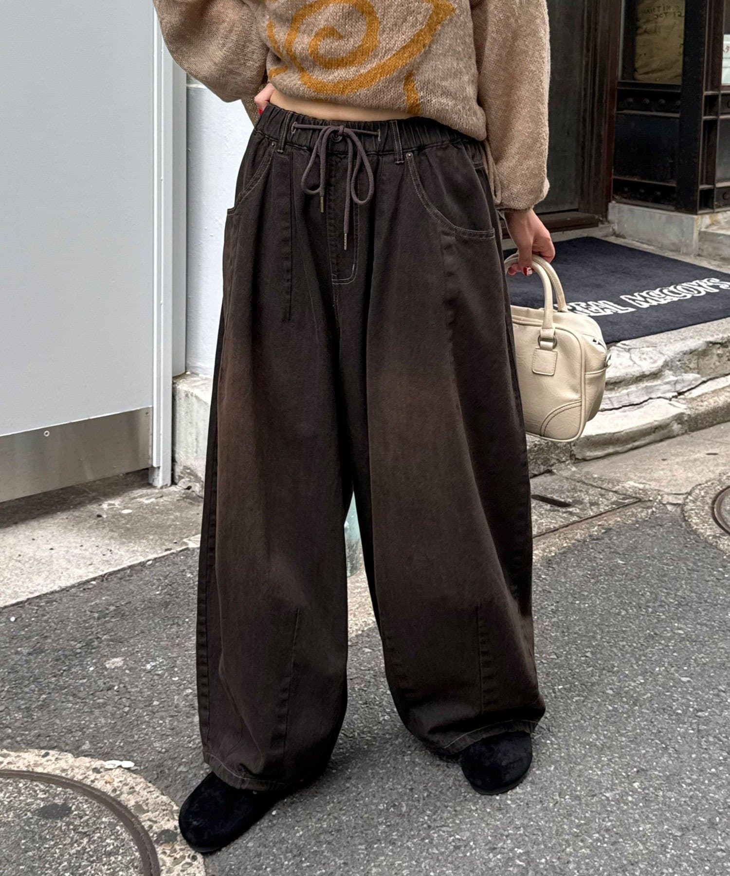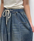 ウエストはゴム&紐仕様でラクに穿けて、カーブシルエットがスタイルに差をつけてくれます。