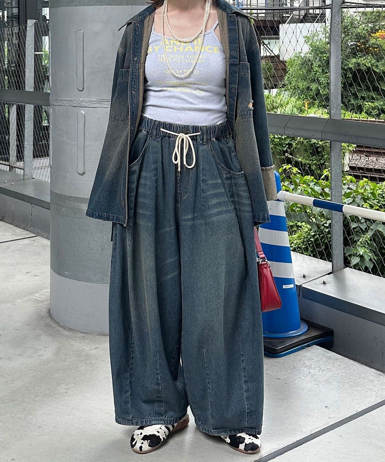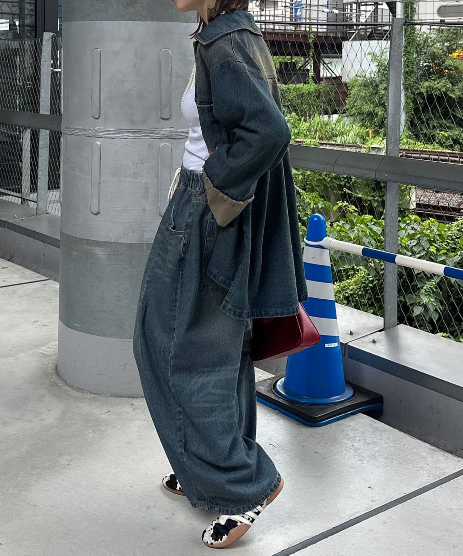 奥行きのある色味が魅力のオーバーダイ加工を施した、スーパーワイドカーブデニム。