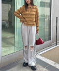 デニムやカーゴでカジュアルに外して、甘辛ミックスコーデに。