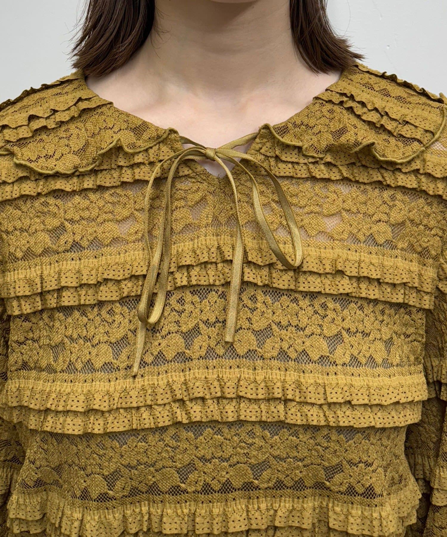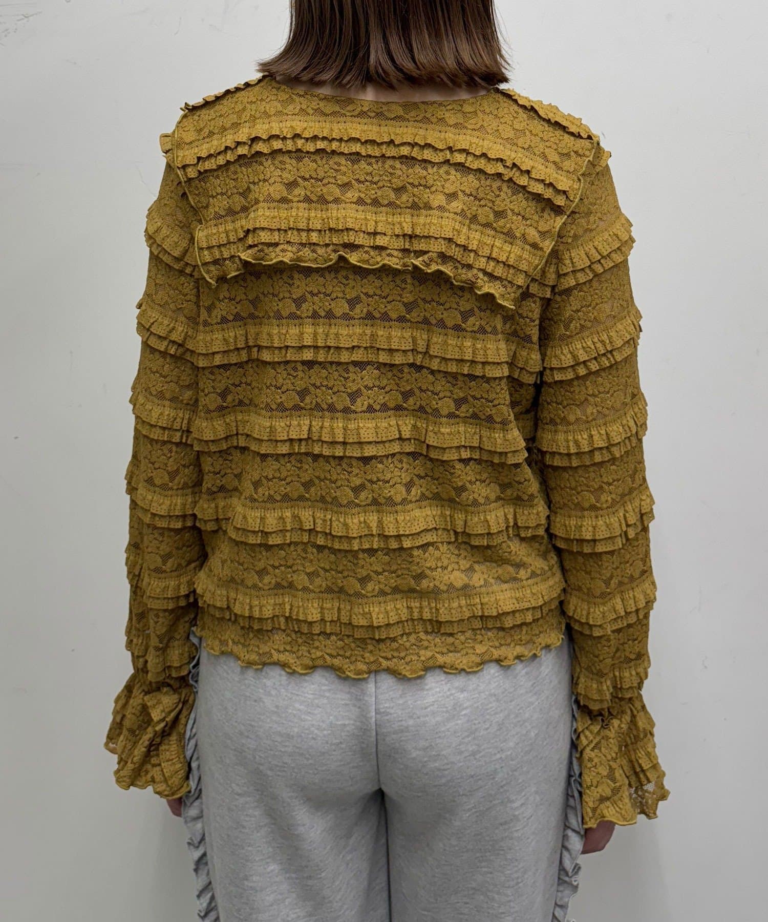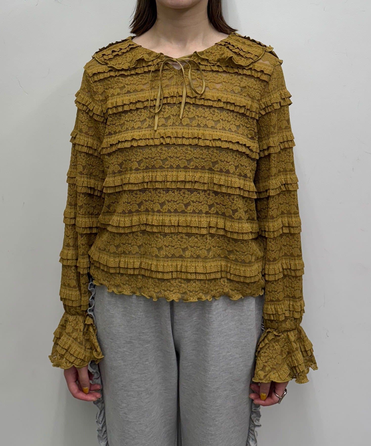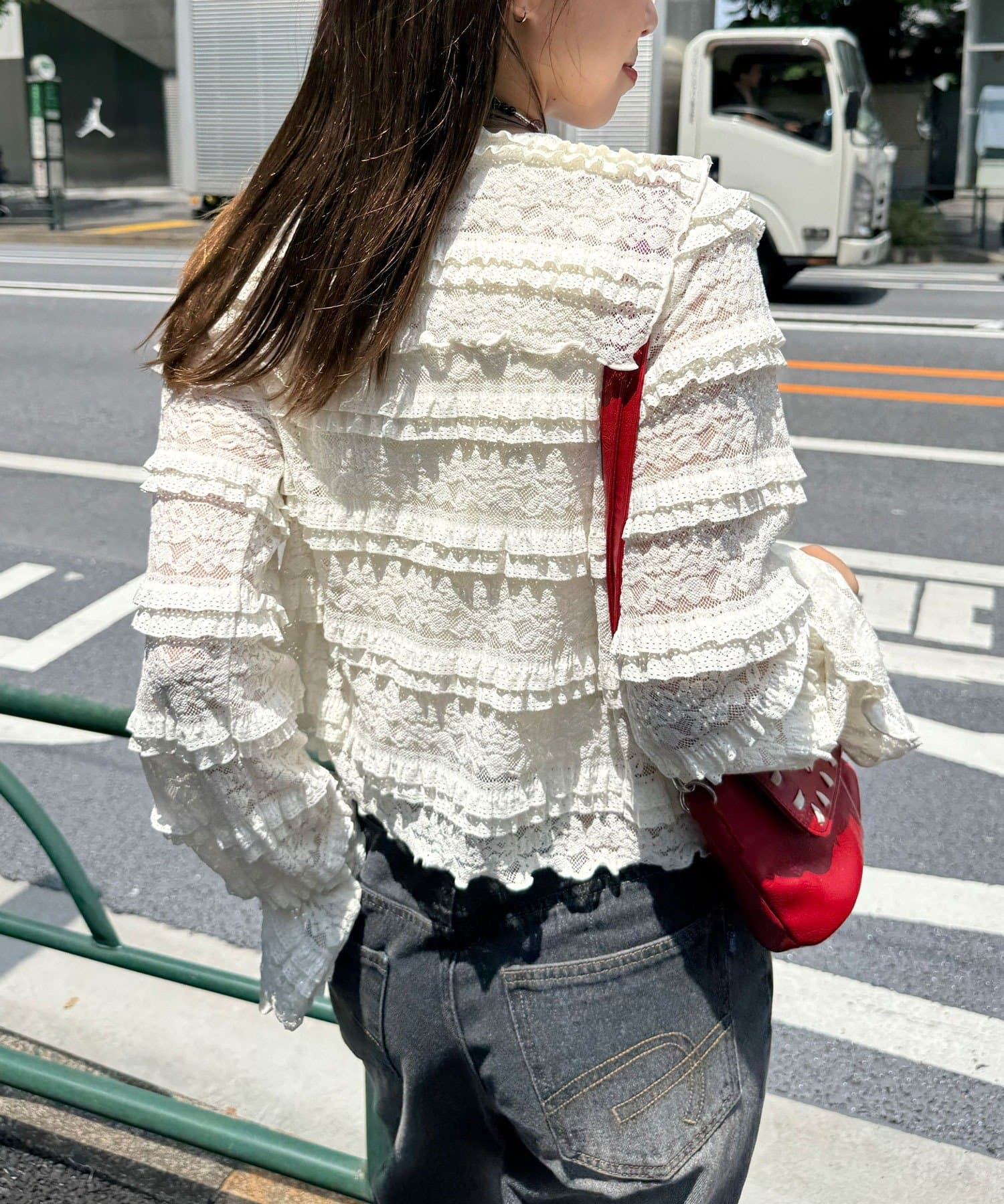 ガーリーな魅力がぎゅっと詰まった、フリルたっぷりのレーストップス。