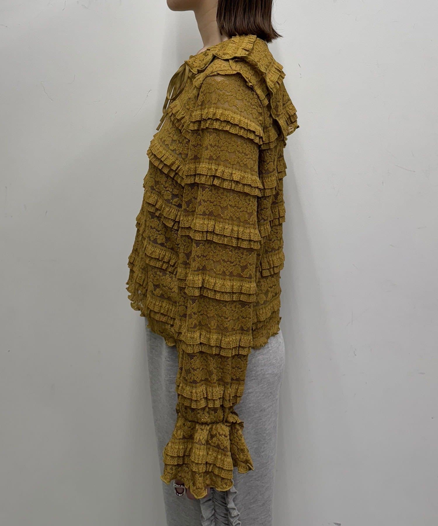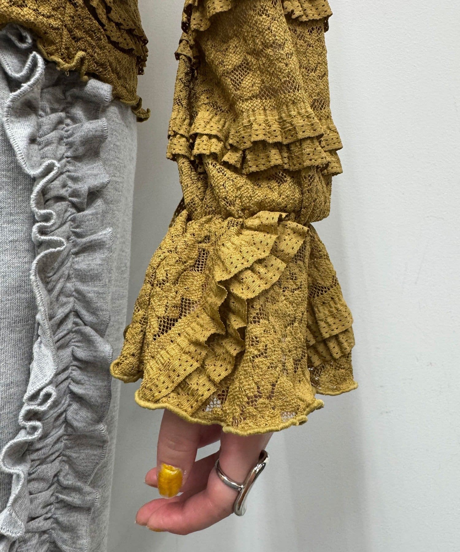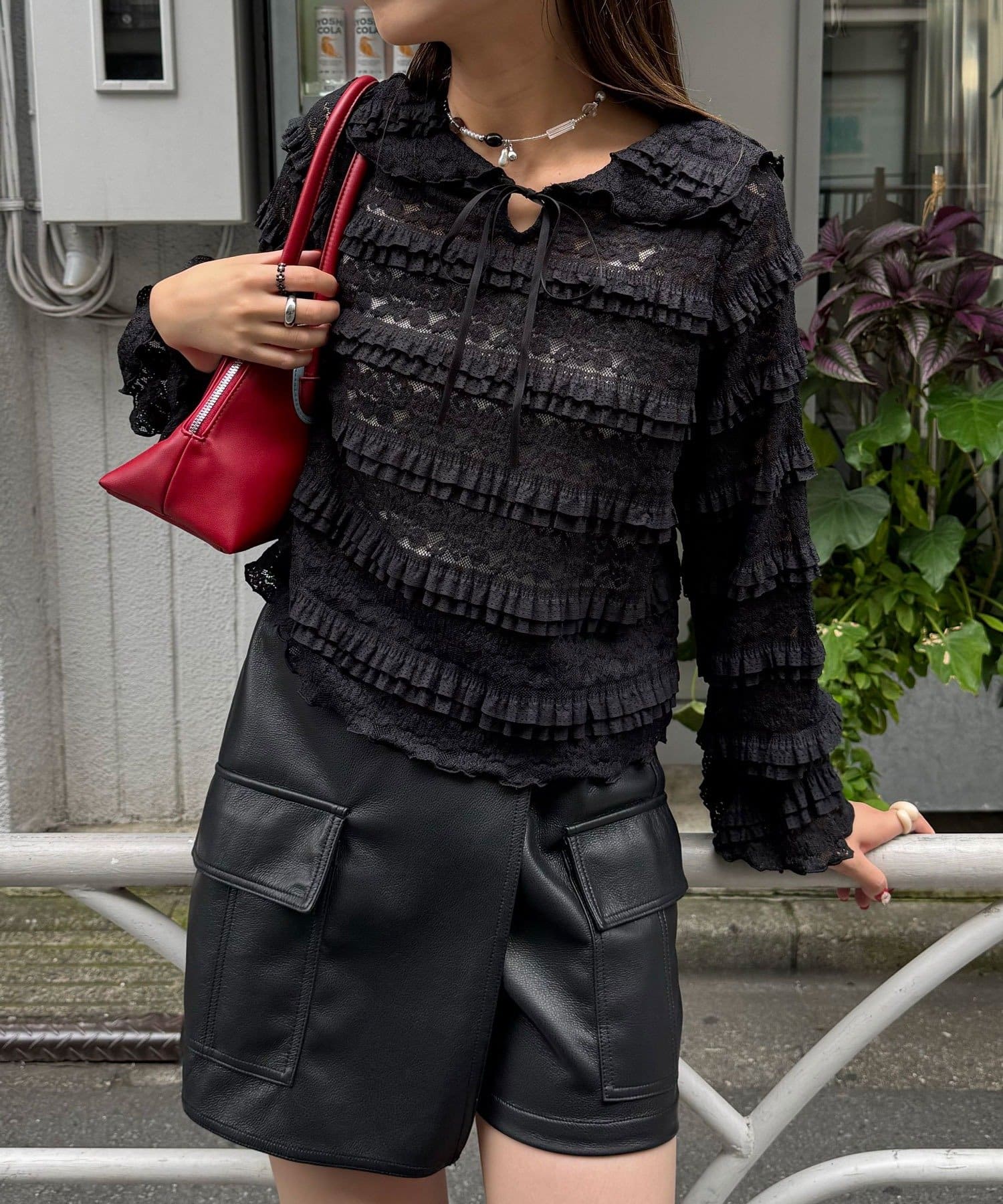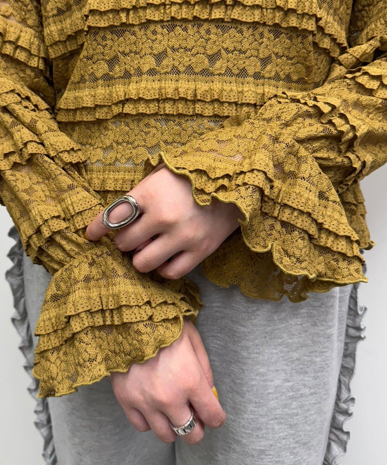 ガーリーな魅力がぎゅっと詰まった、フリルたっぷりのレーストップス。