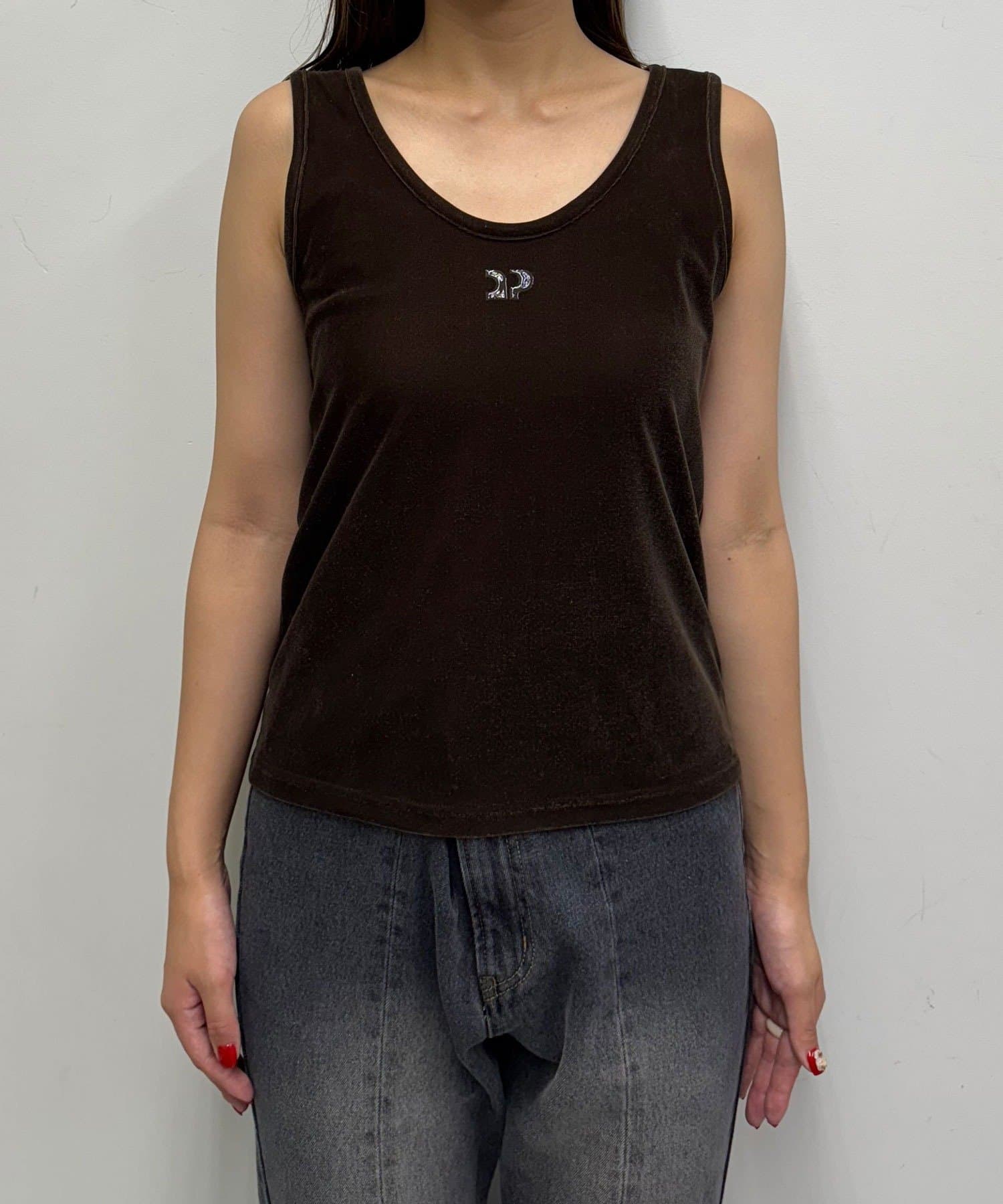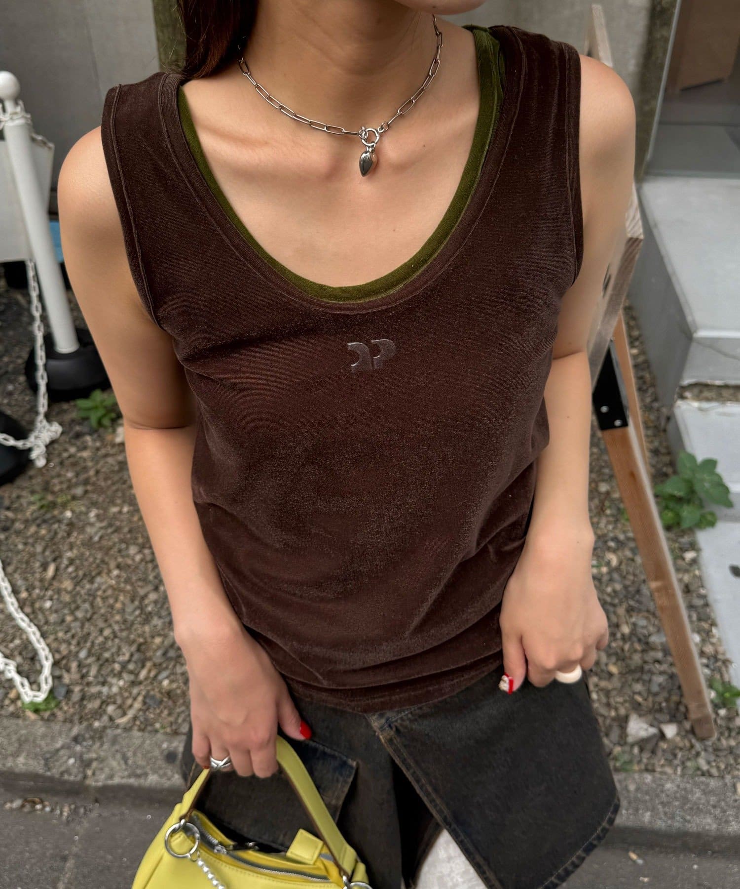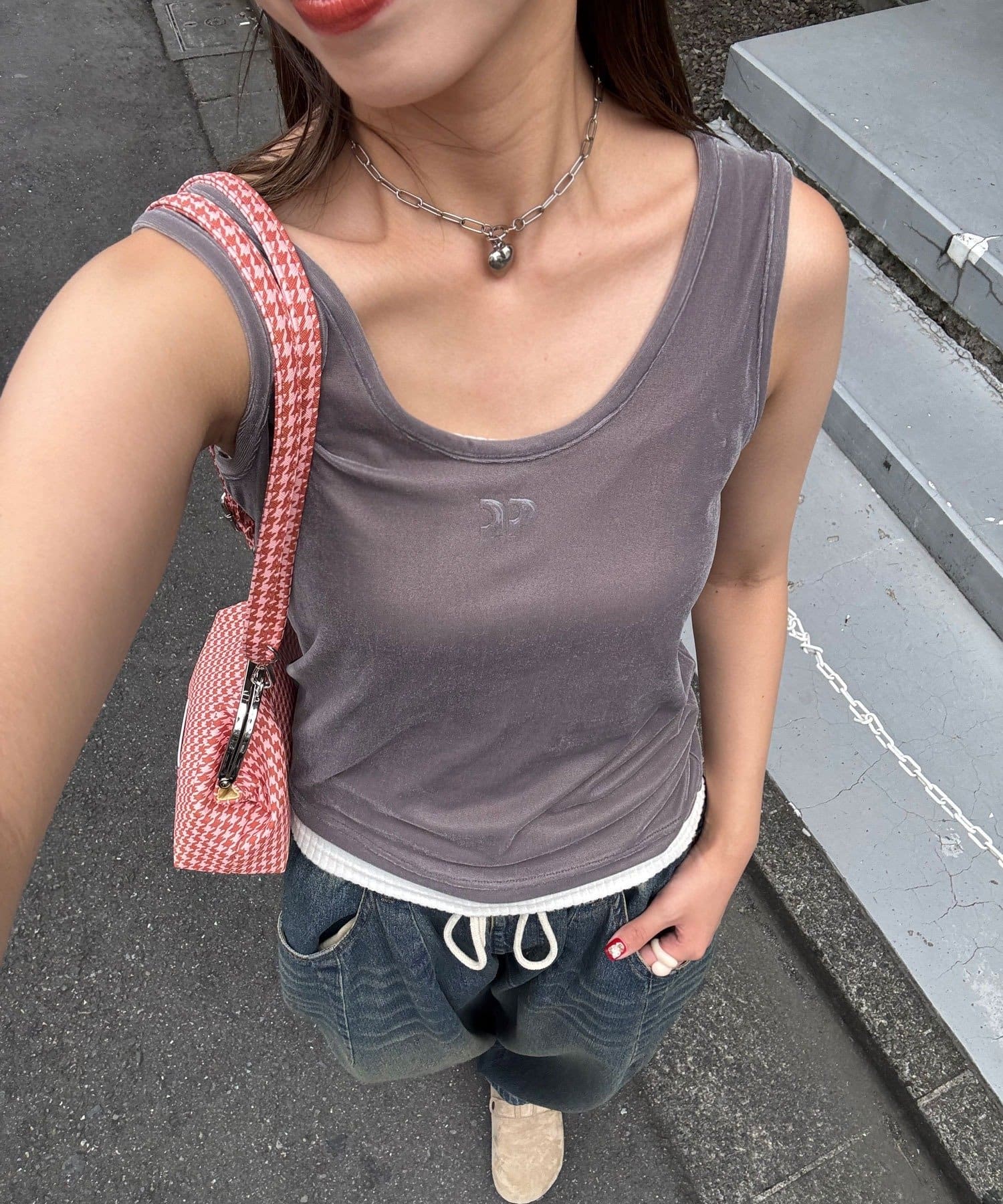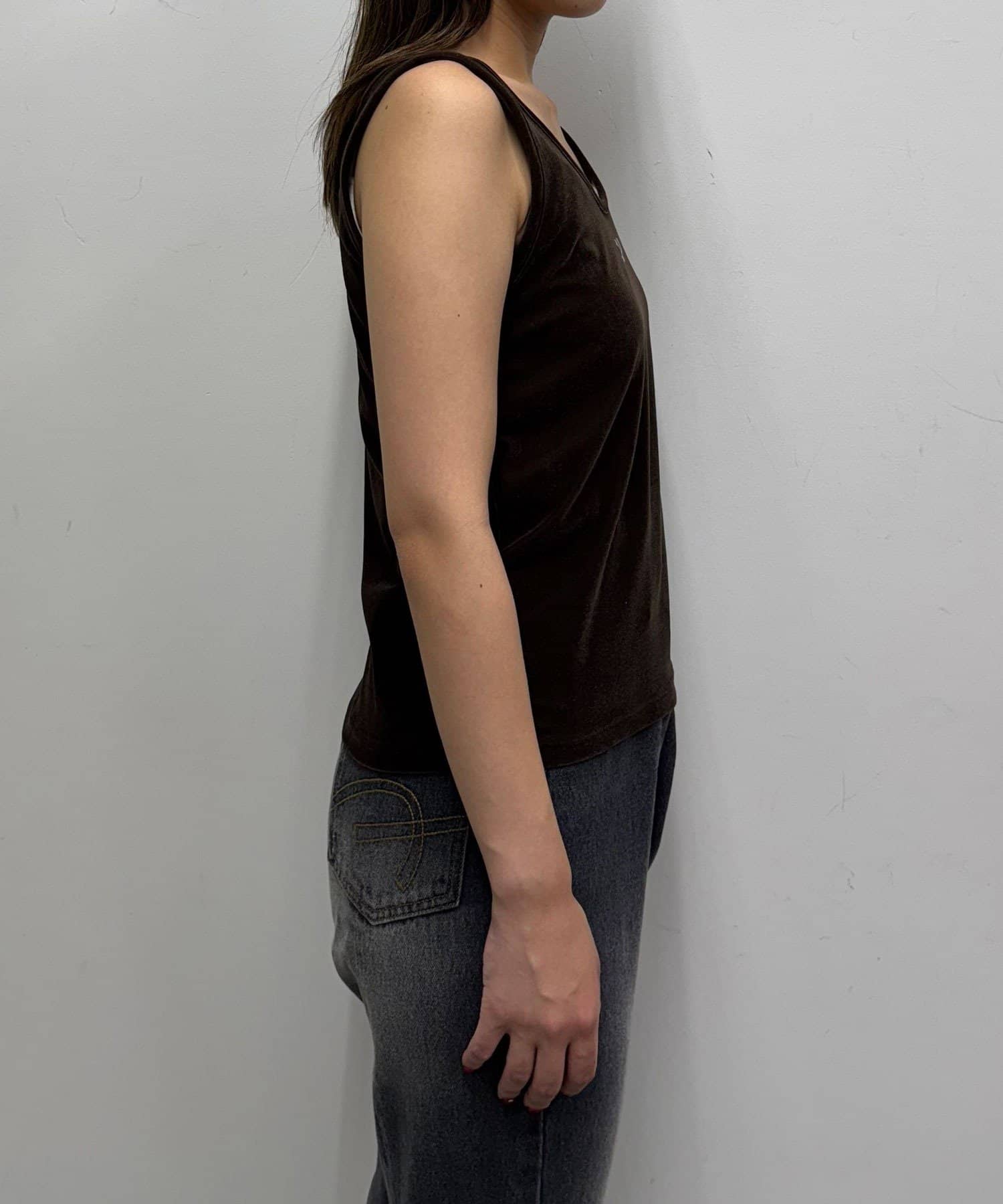なめらかな光沢感が魅力のベロアタンクトップ。