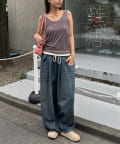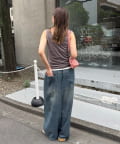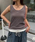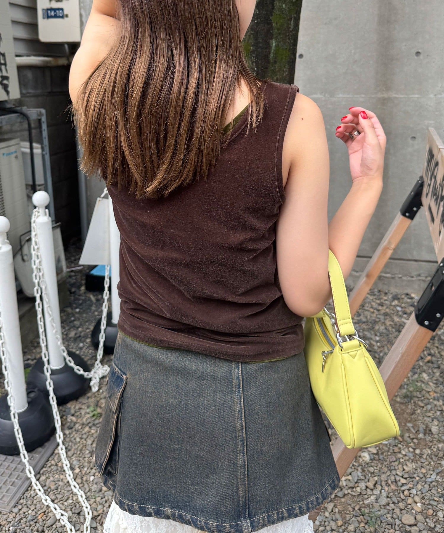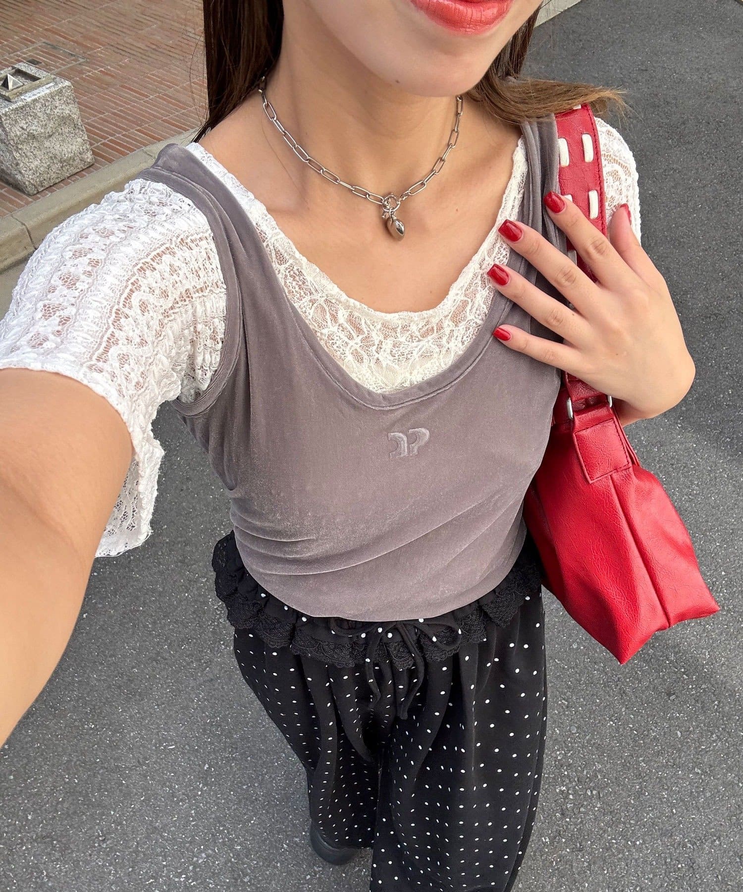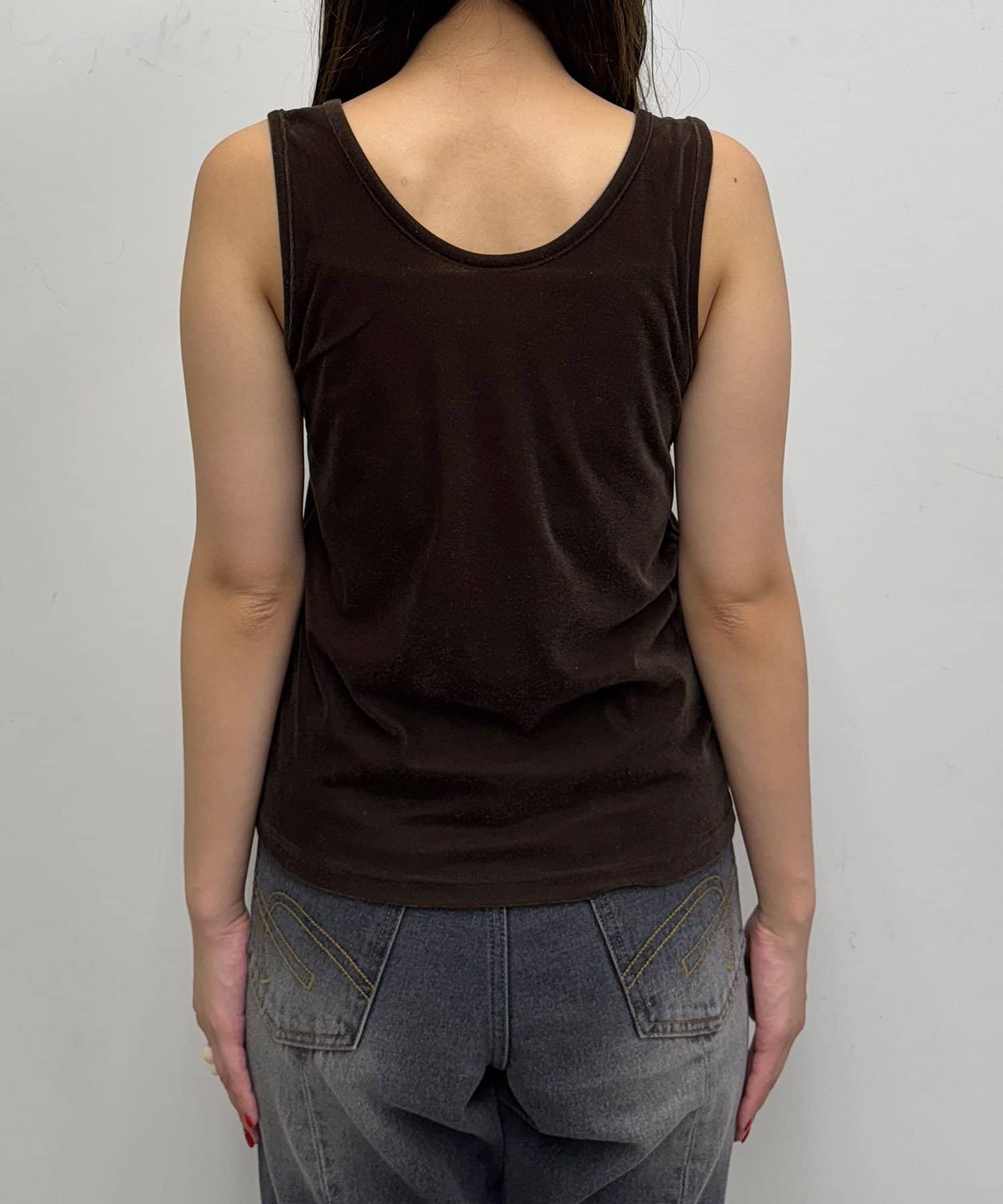 なめらかな光沢感が魅力のベロアタンクトップ。