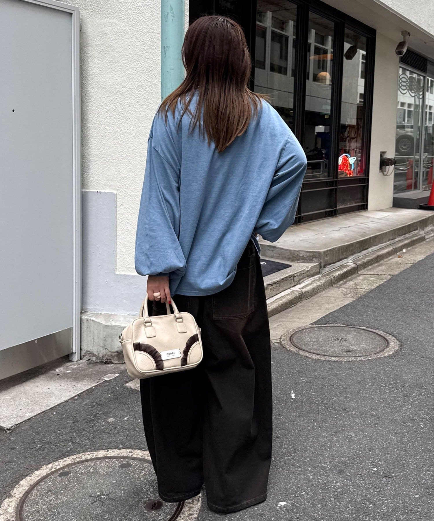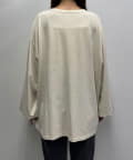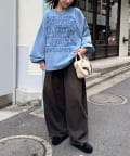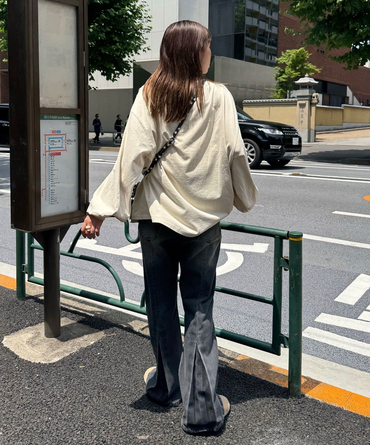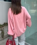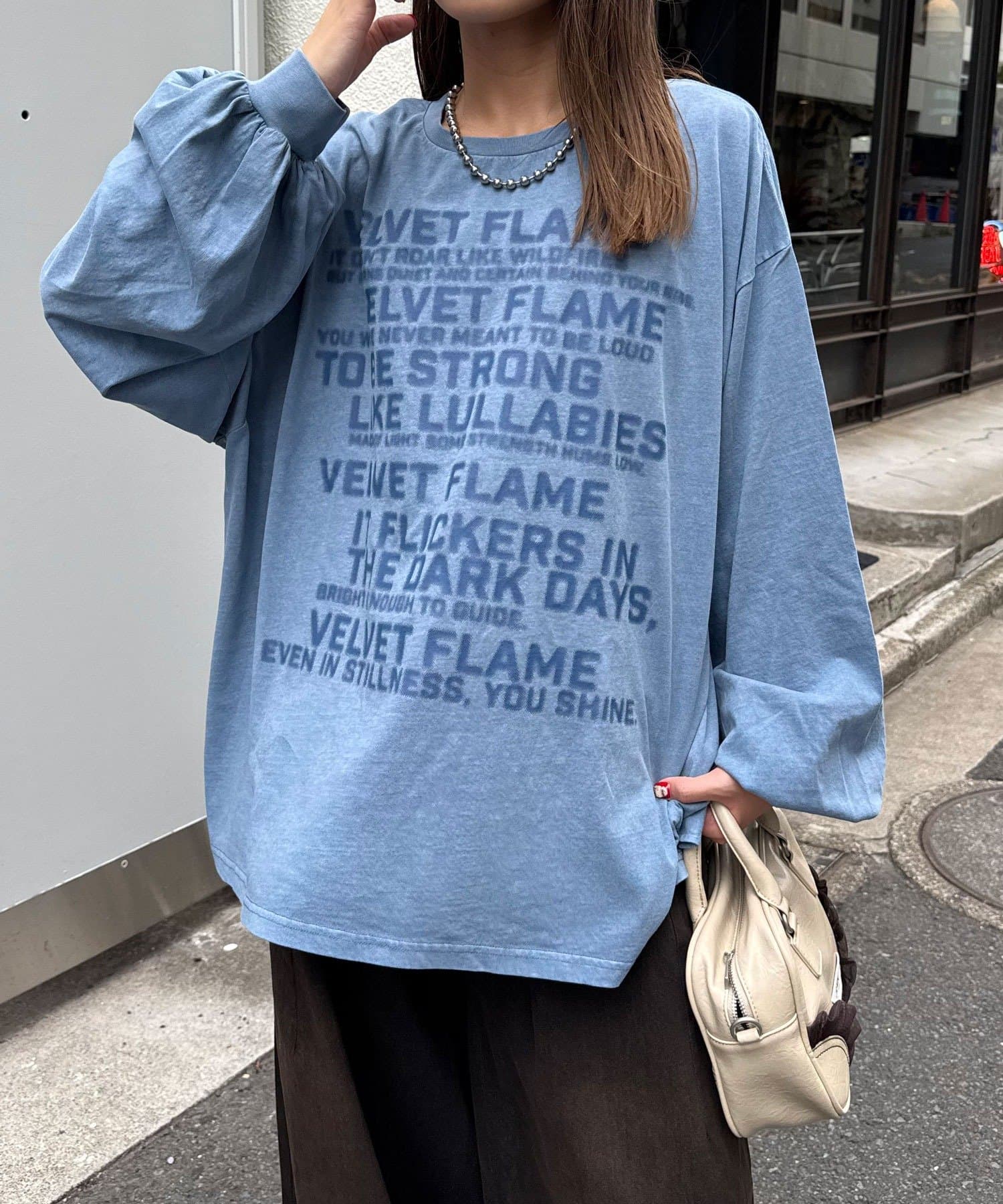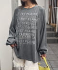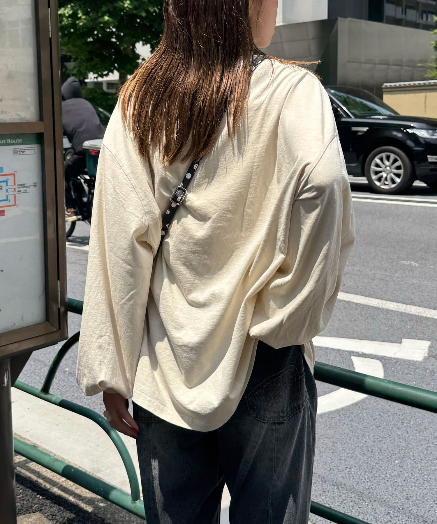 大胆なメッセージロゴとボリュームスリーブがアクセントになり、ゆるっと着るだけでサマになるデザインです。