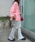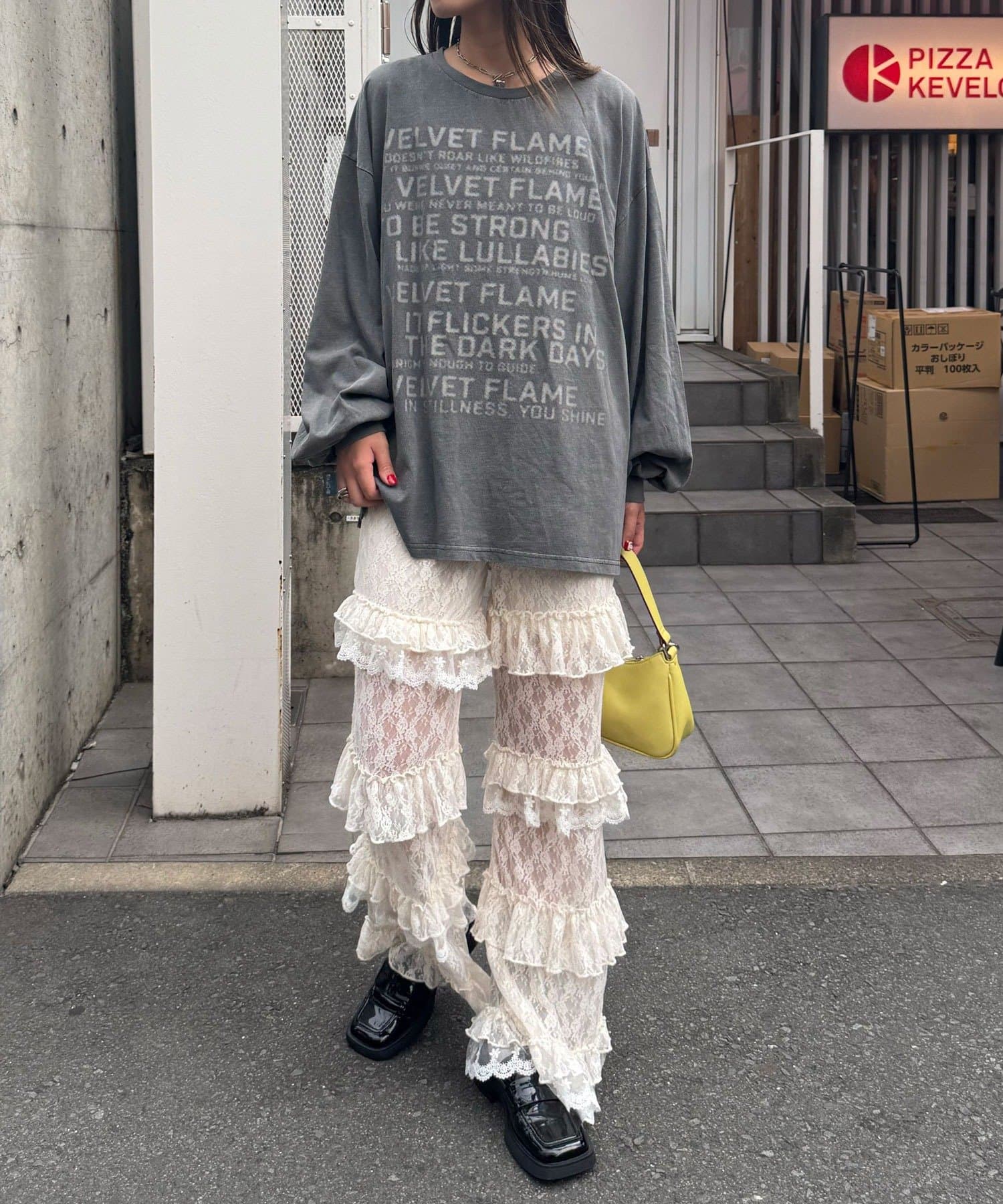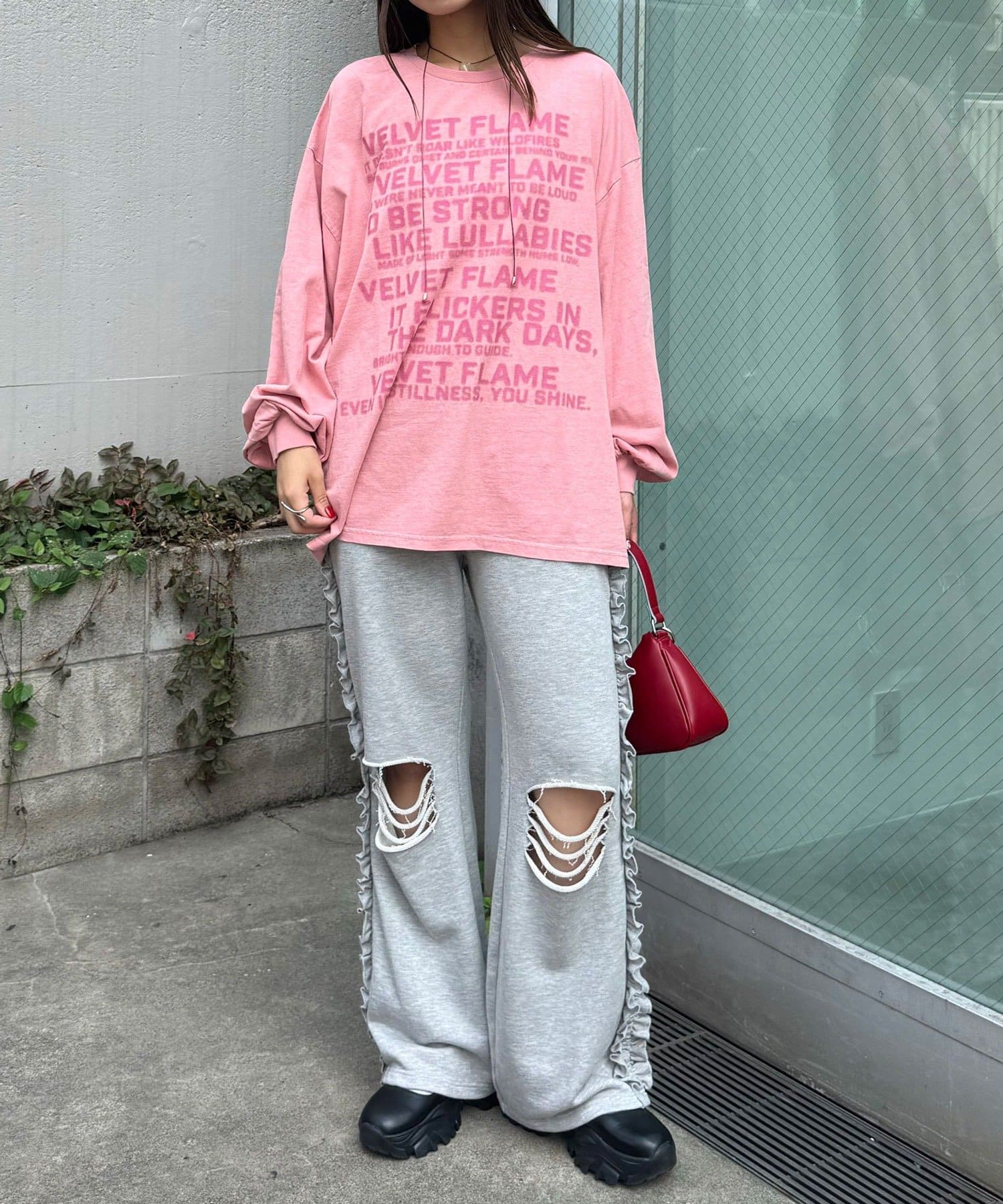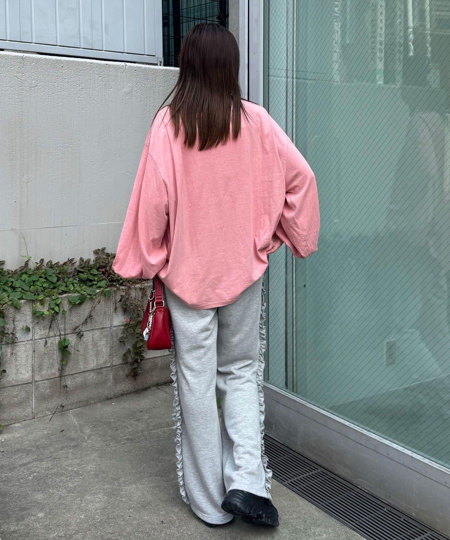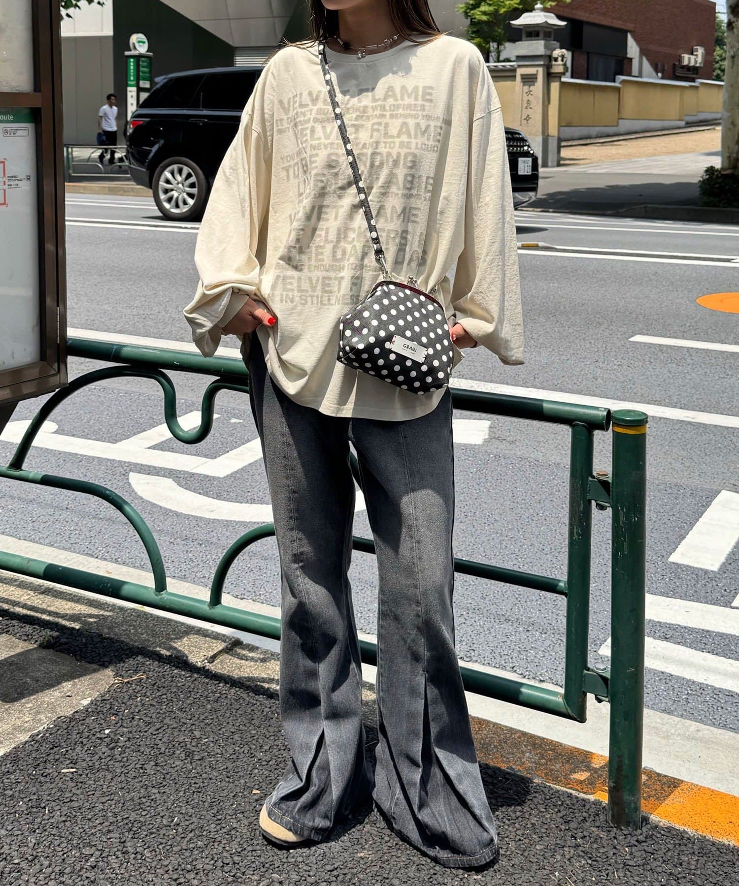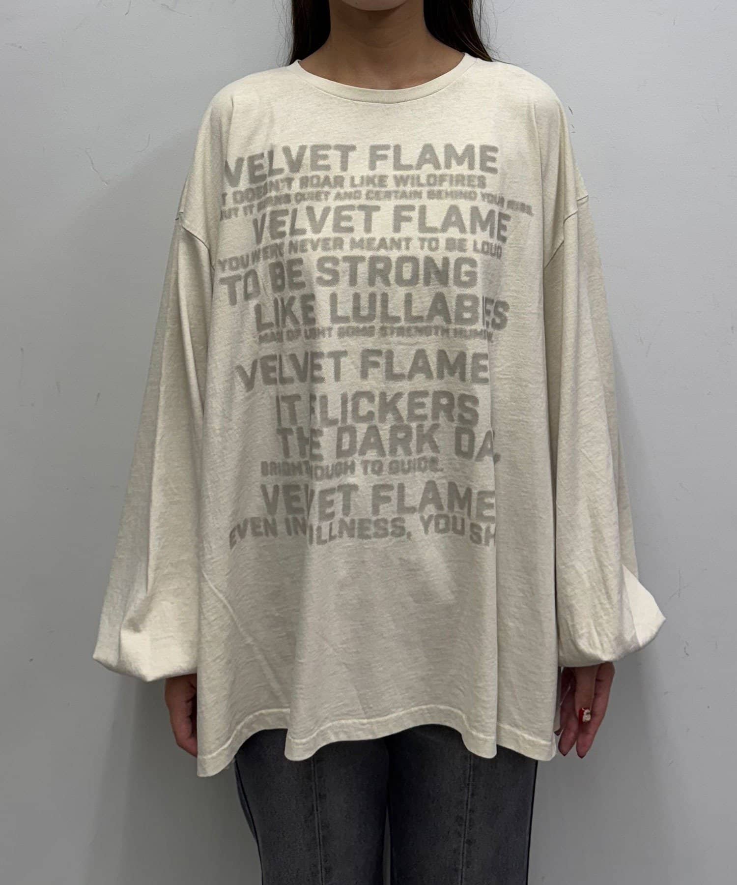 大胆なメッセージロゴとボリュームスリーブがアクセントになり、ゆるっと着るだけでサマになるデザインです。