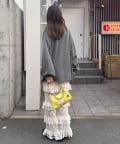 プリーツのミニスカートと合わせて、ロゴの主張を効かせたプレッピーMIXに。