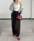 ボリュームカーゴやスウェットパンツと合わせて、Y2Kムードに。
