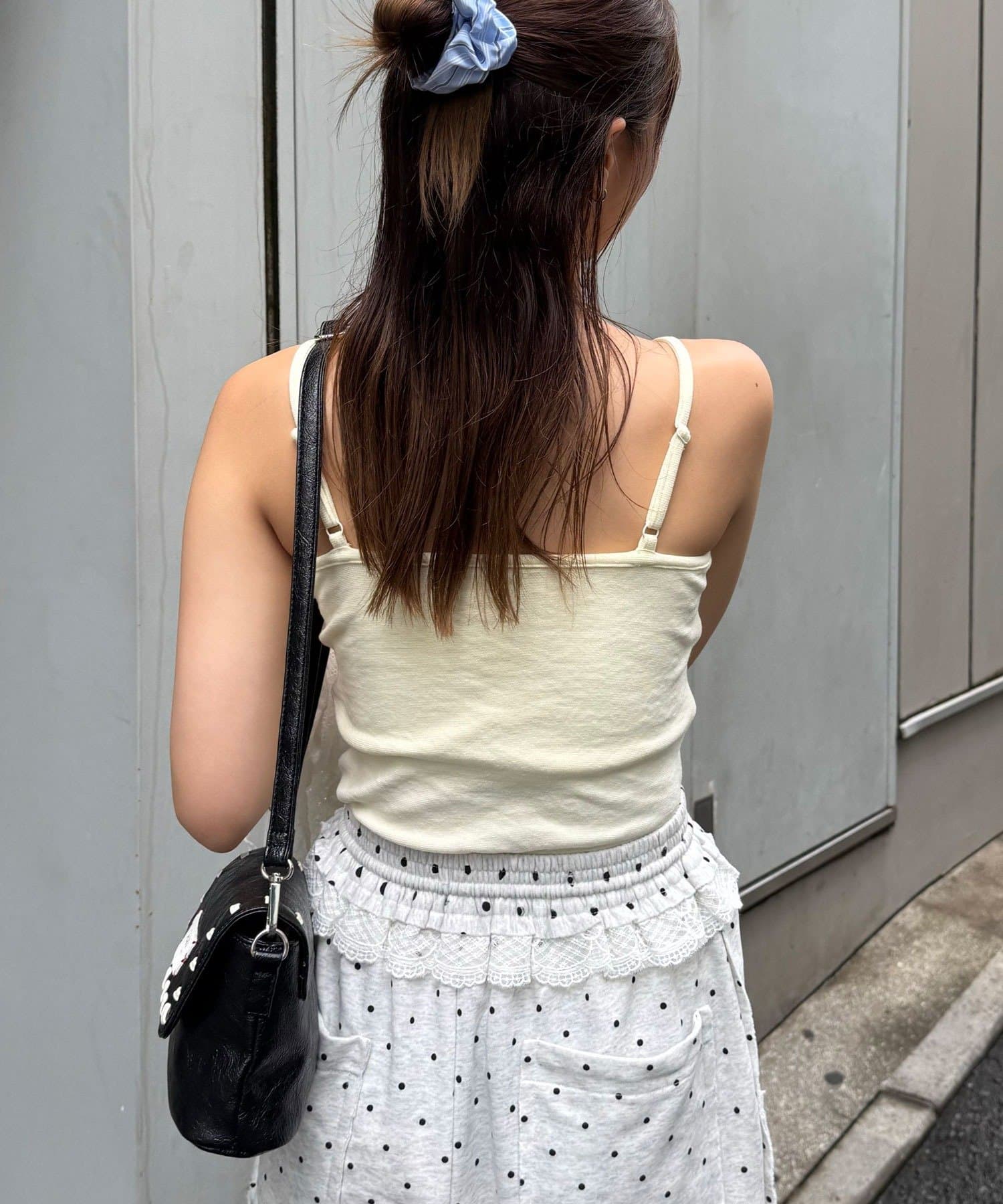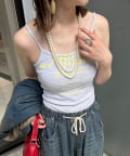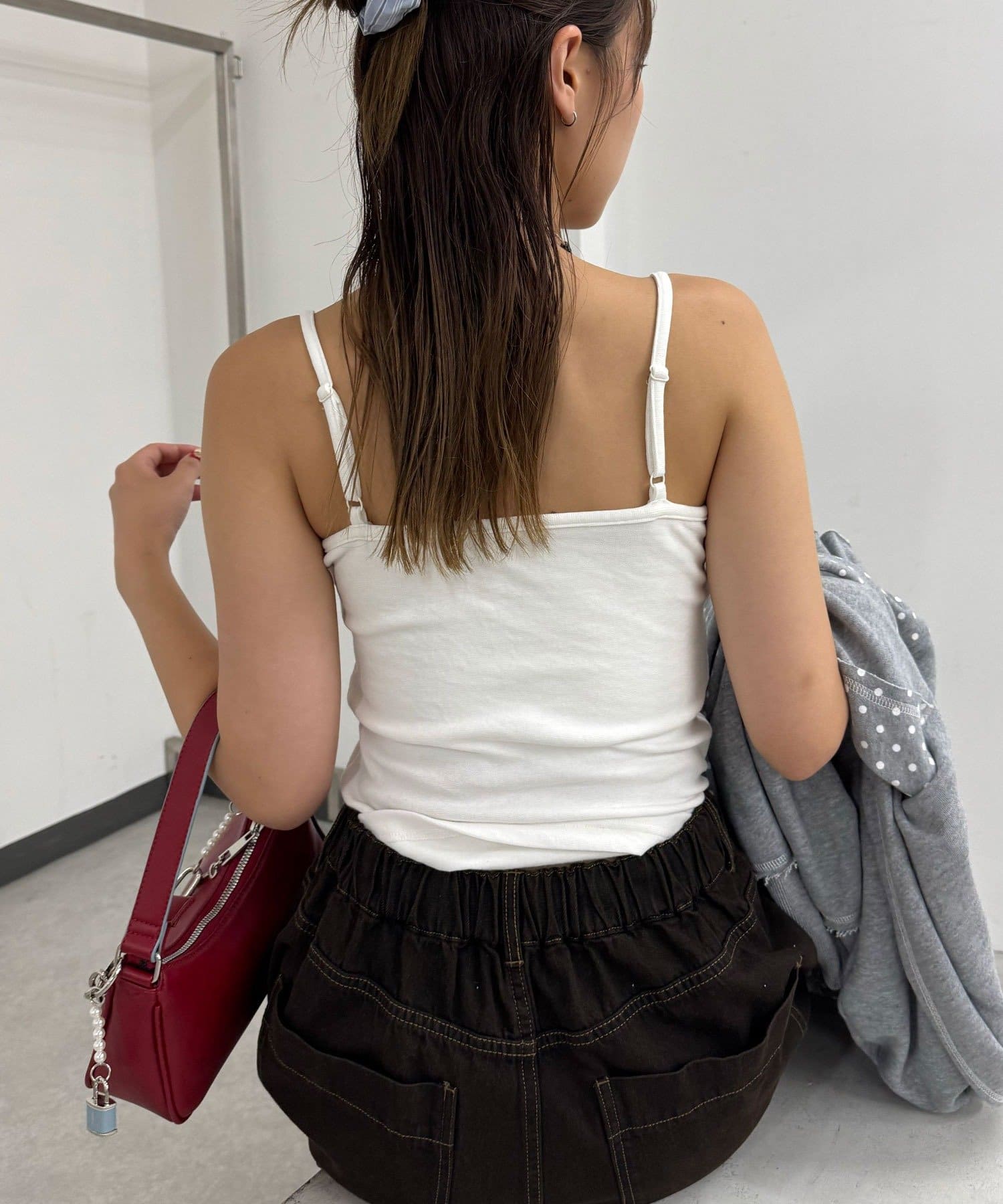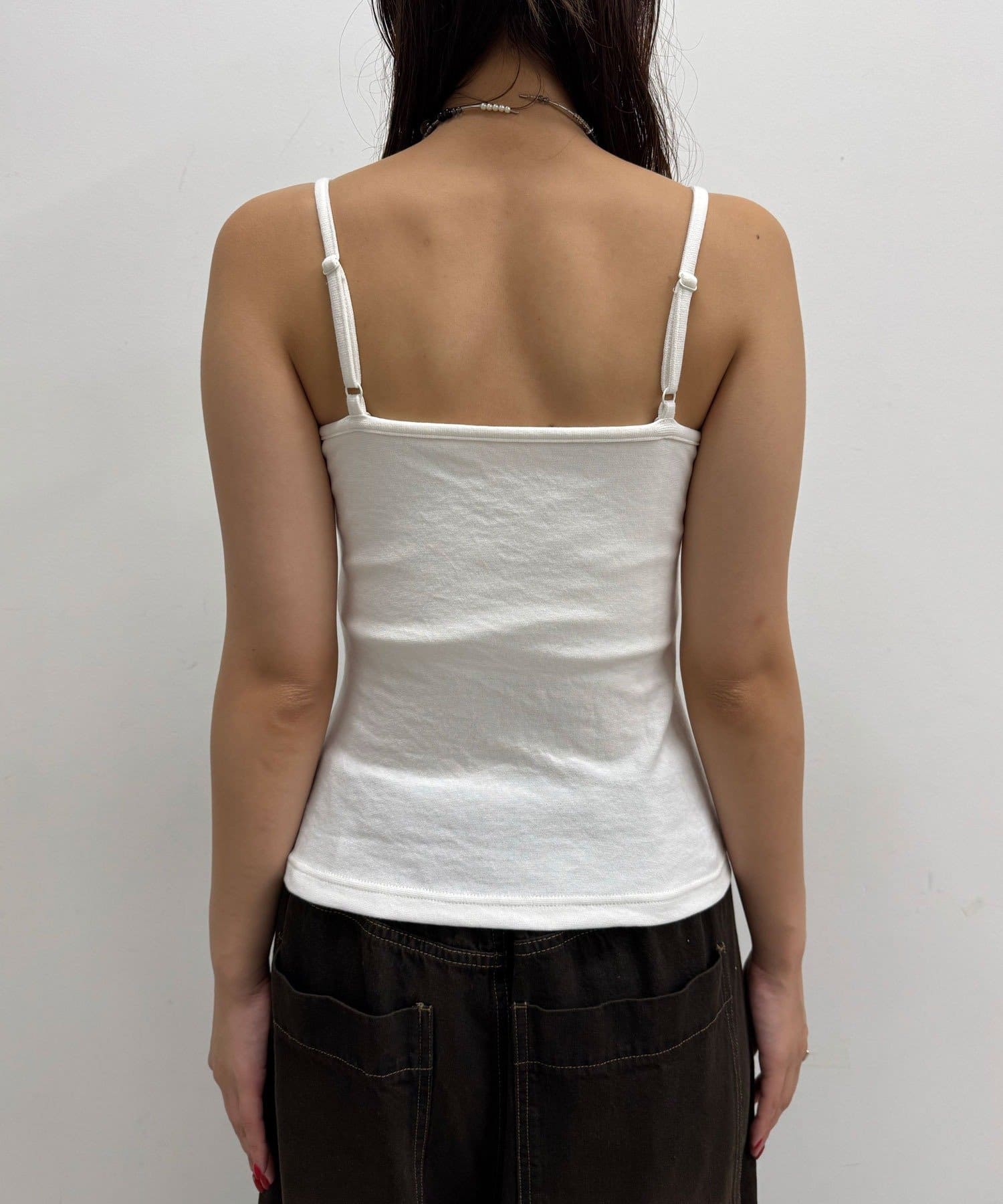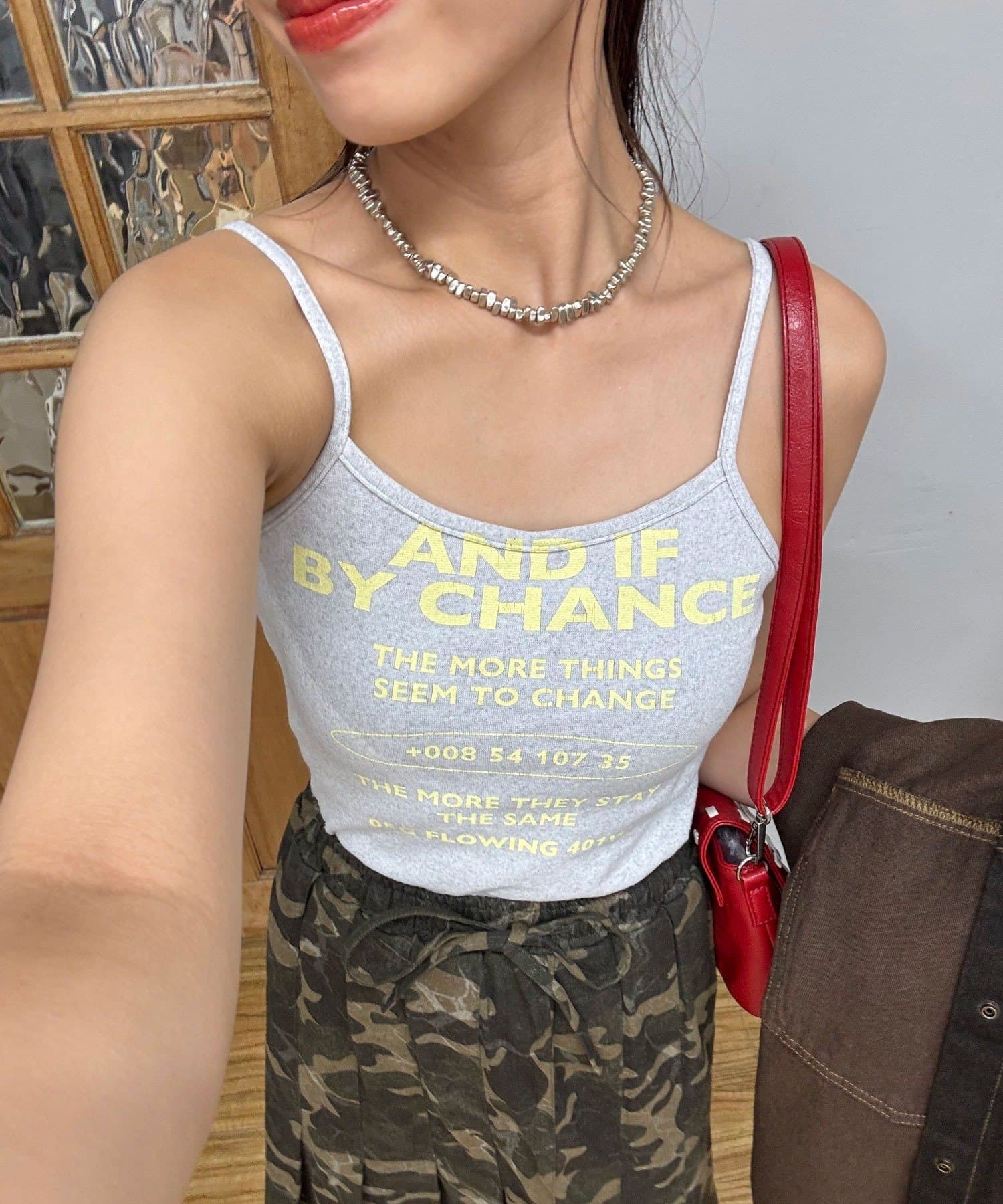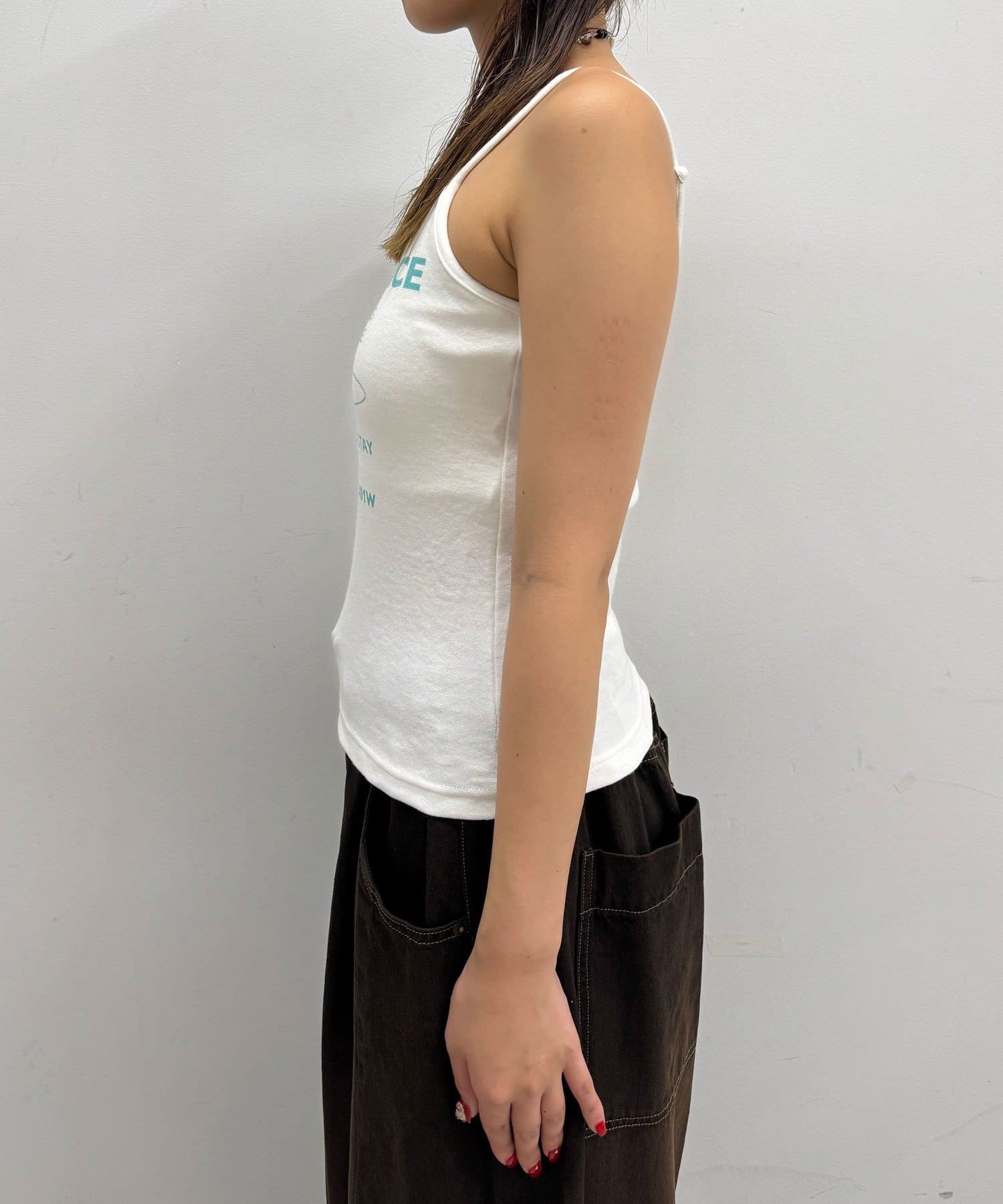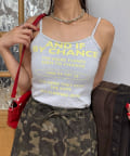 フロントに大きめのメッセージロゴをあしらった、存在感抜群のカップ付きキャミソール。
