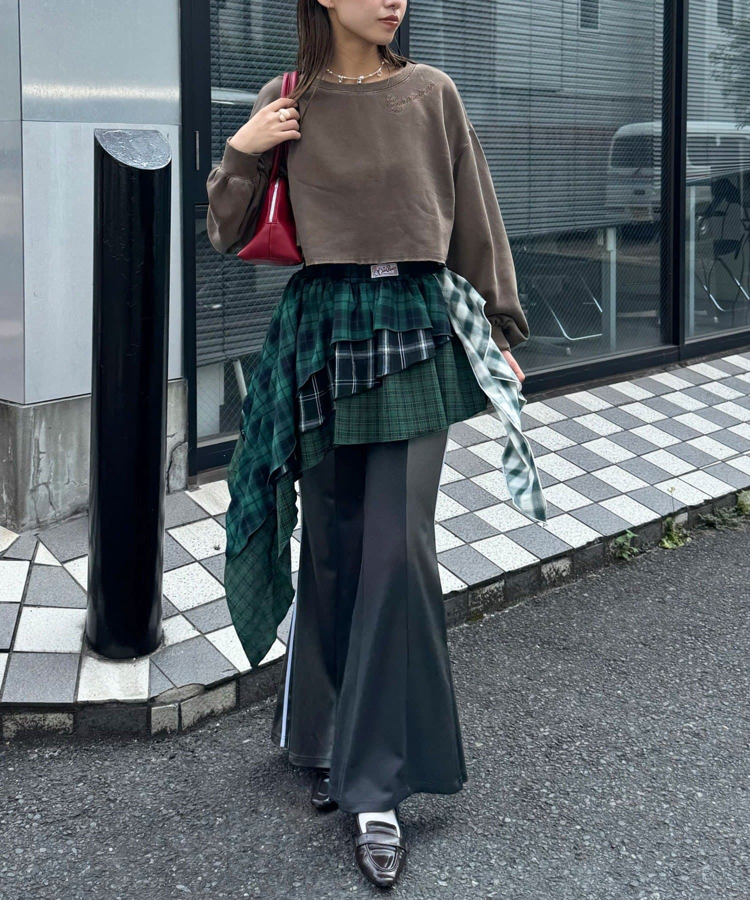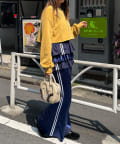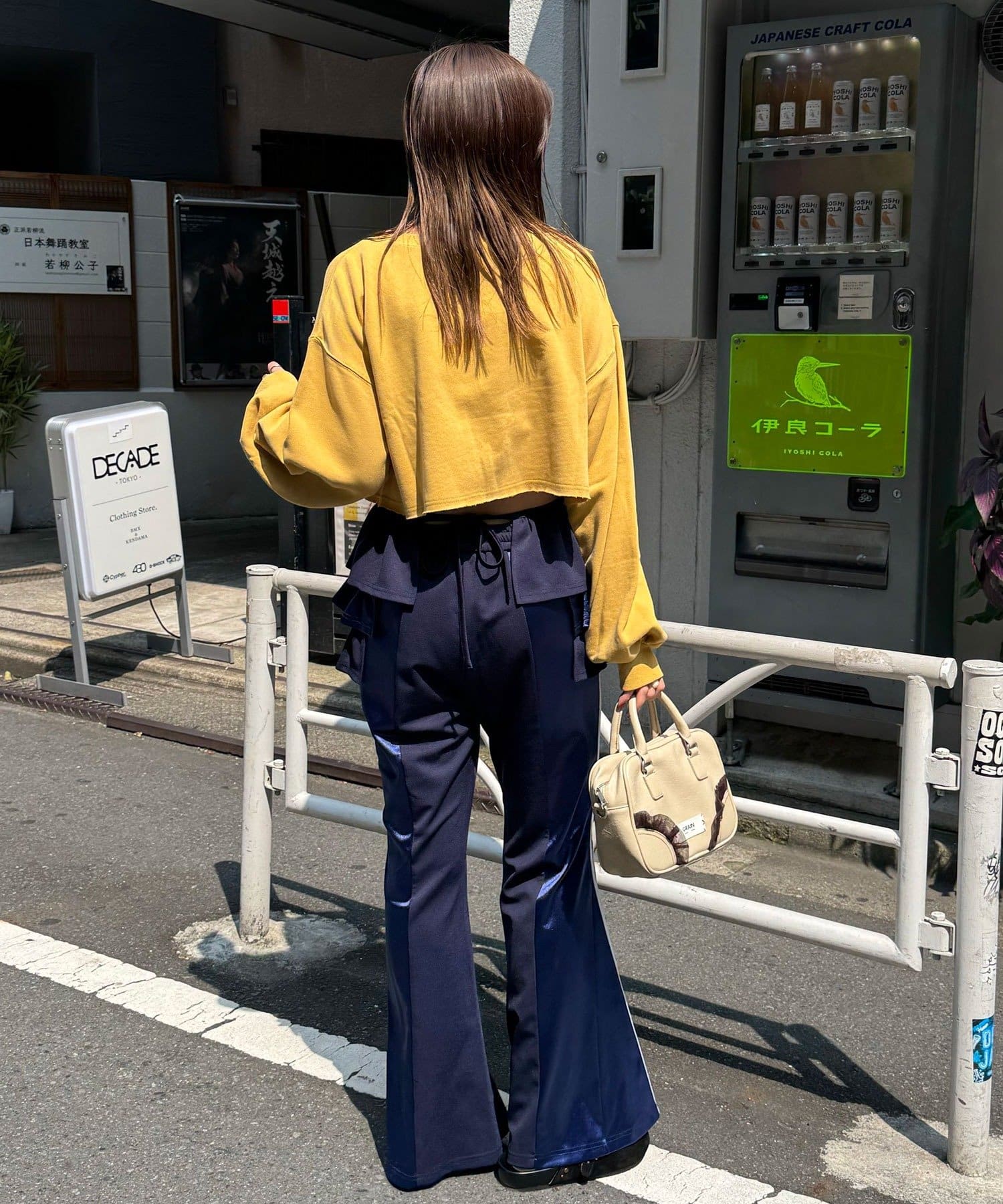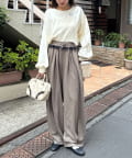 ハイウエストのデニムやワイドパンツと合わせて、バランス良くスタイリング。