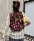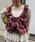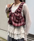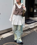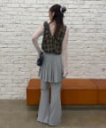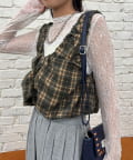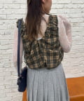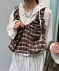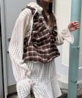 表情のあるシャーリング加工×チェック柄が目を引くジップベスト。