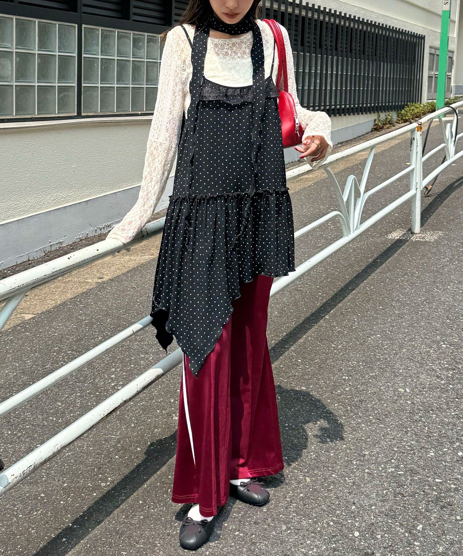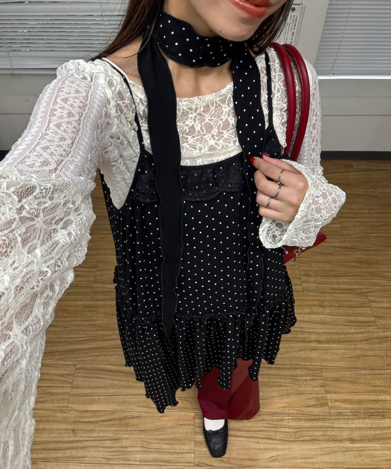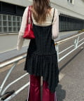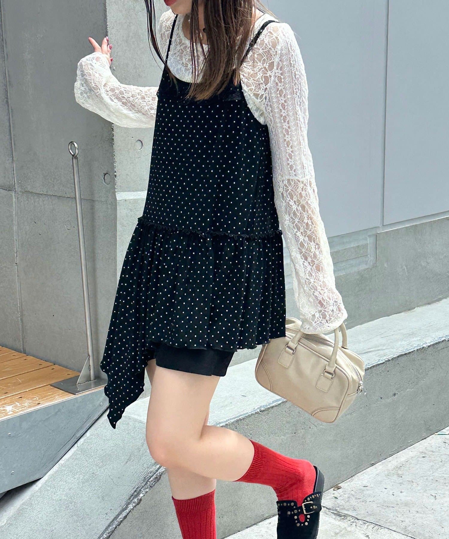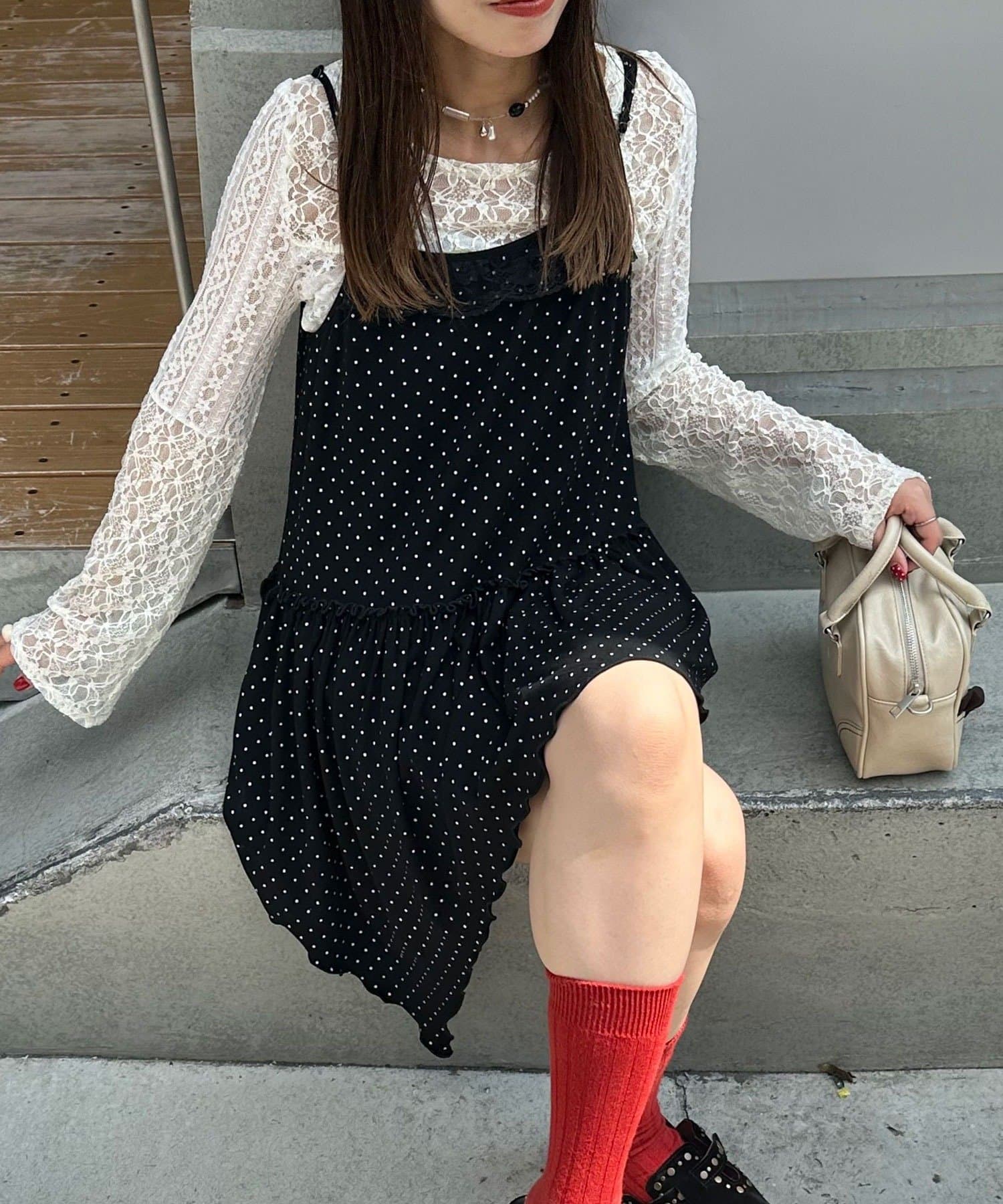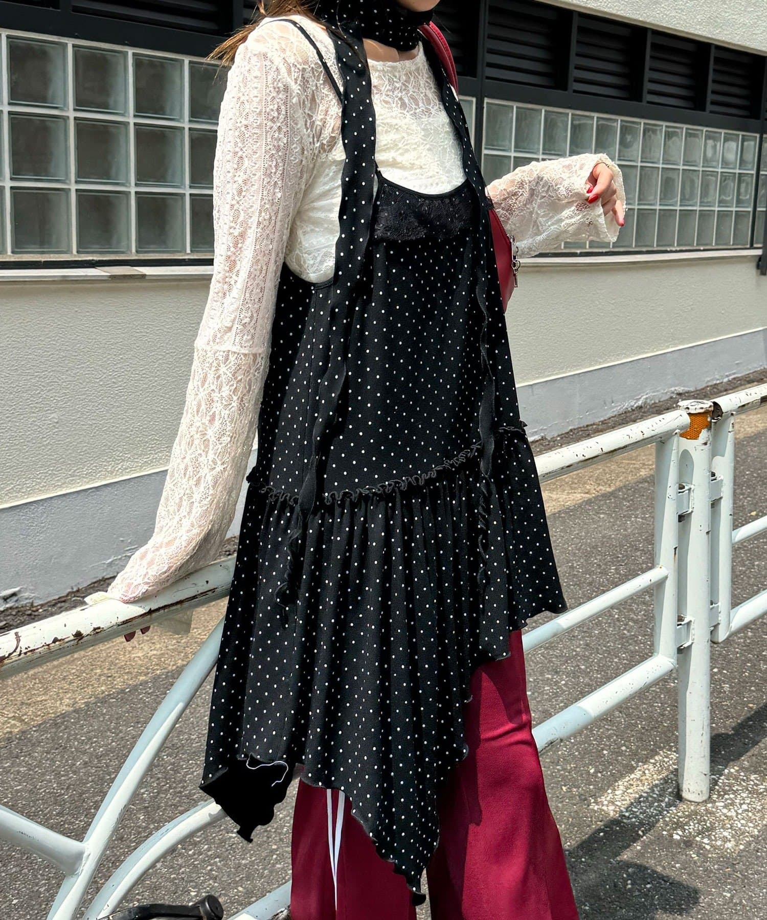 レース×ドット×アシメデザイン、計算されたディテールが詰まったキャミワンピ。