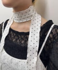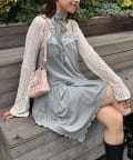 胸元にあしらわれたレースが視線を惹きつけ、チョーカーを合わせることで一気にスタイルアップ。