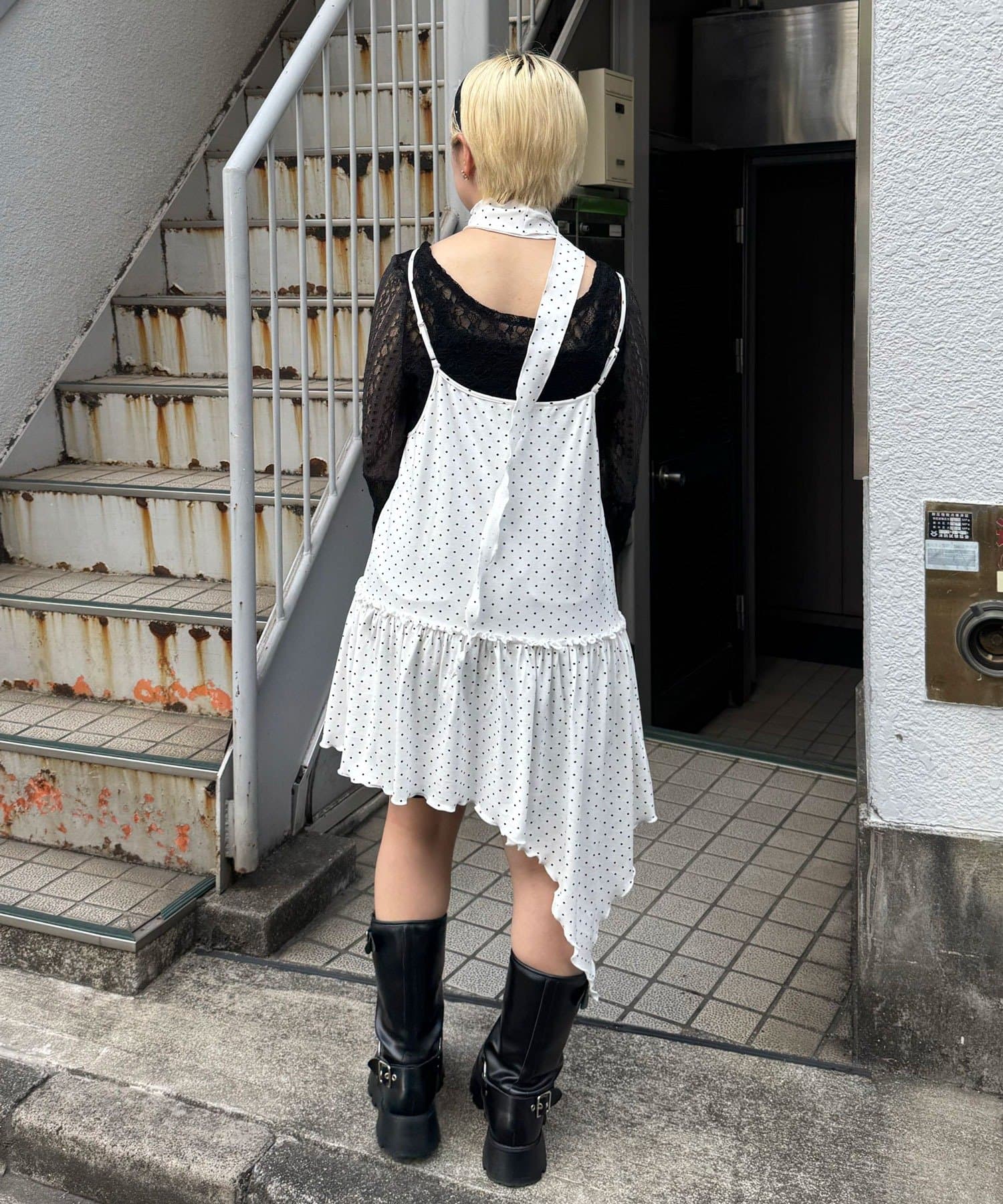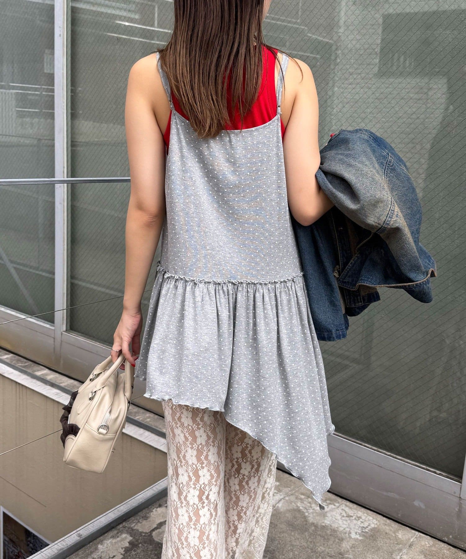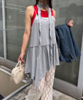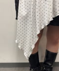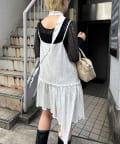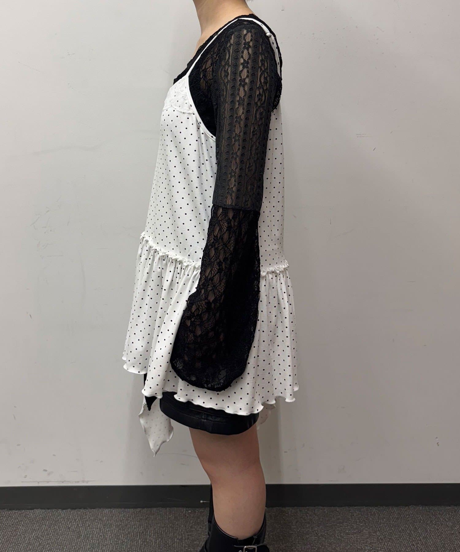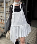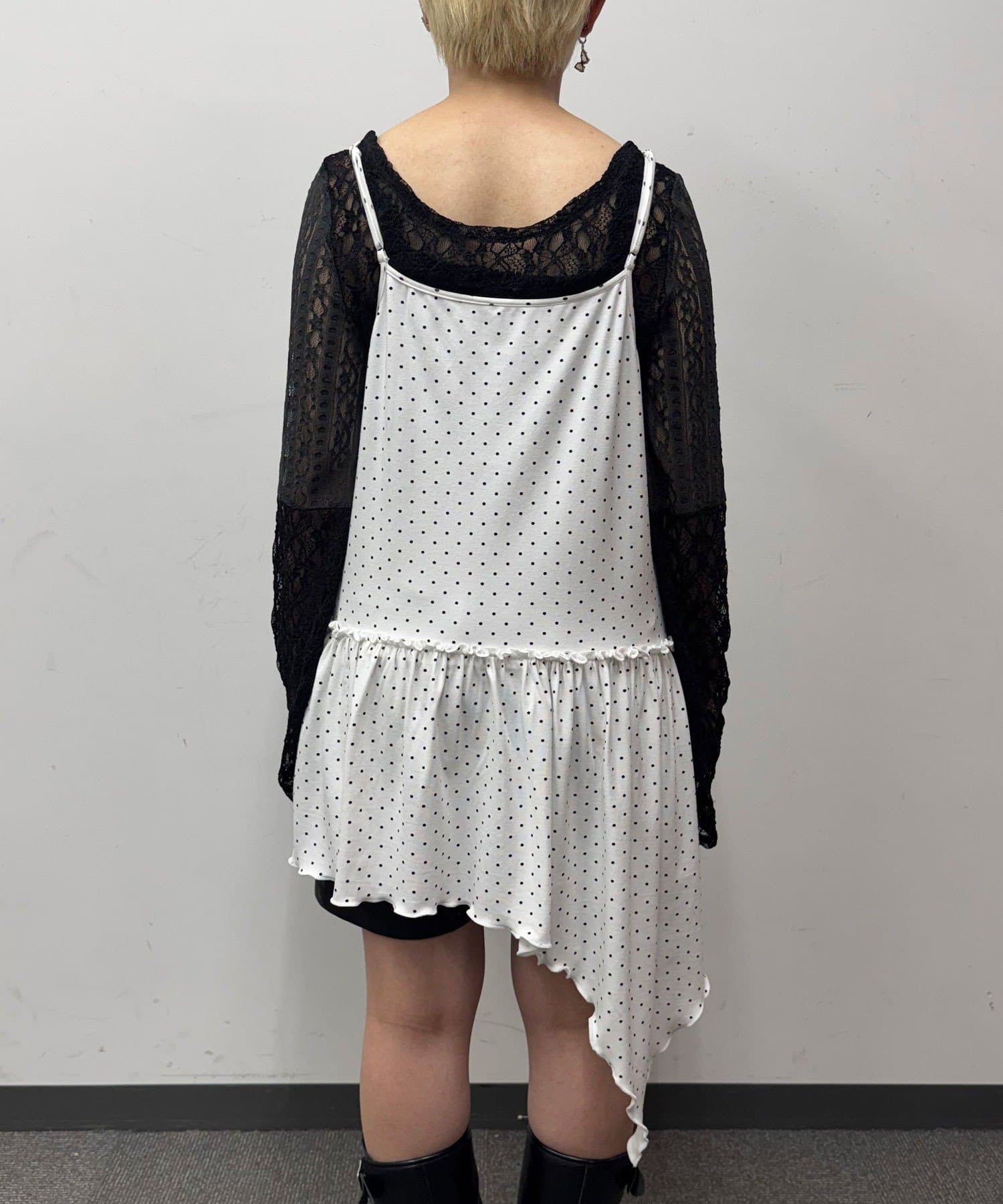レース×ドット×アシメデザイン、計算されたディテールが詰まったキャミワンピ。