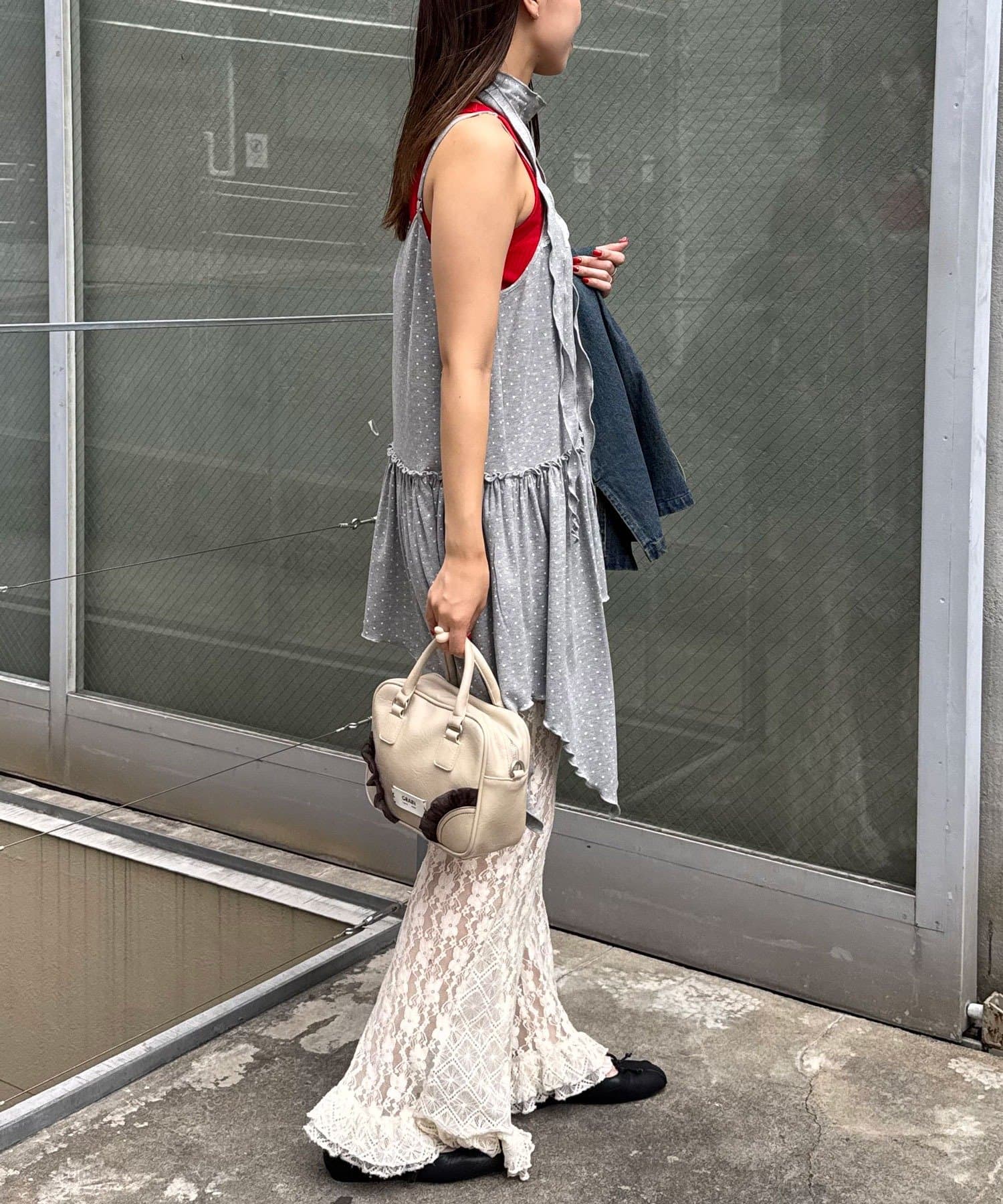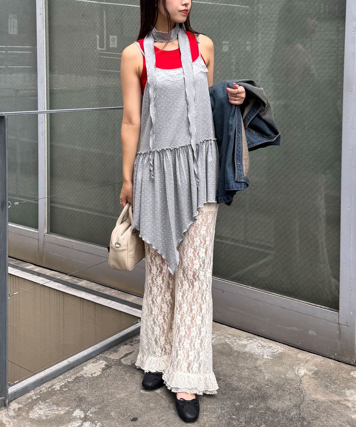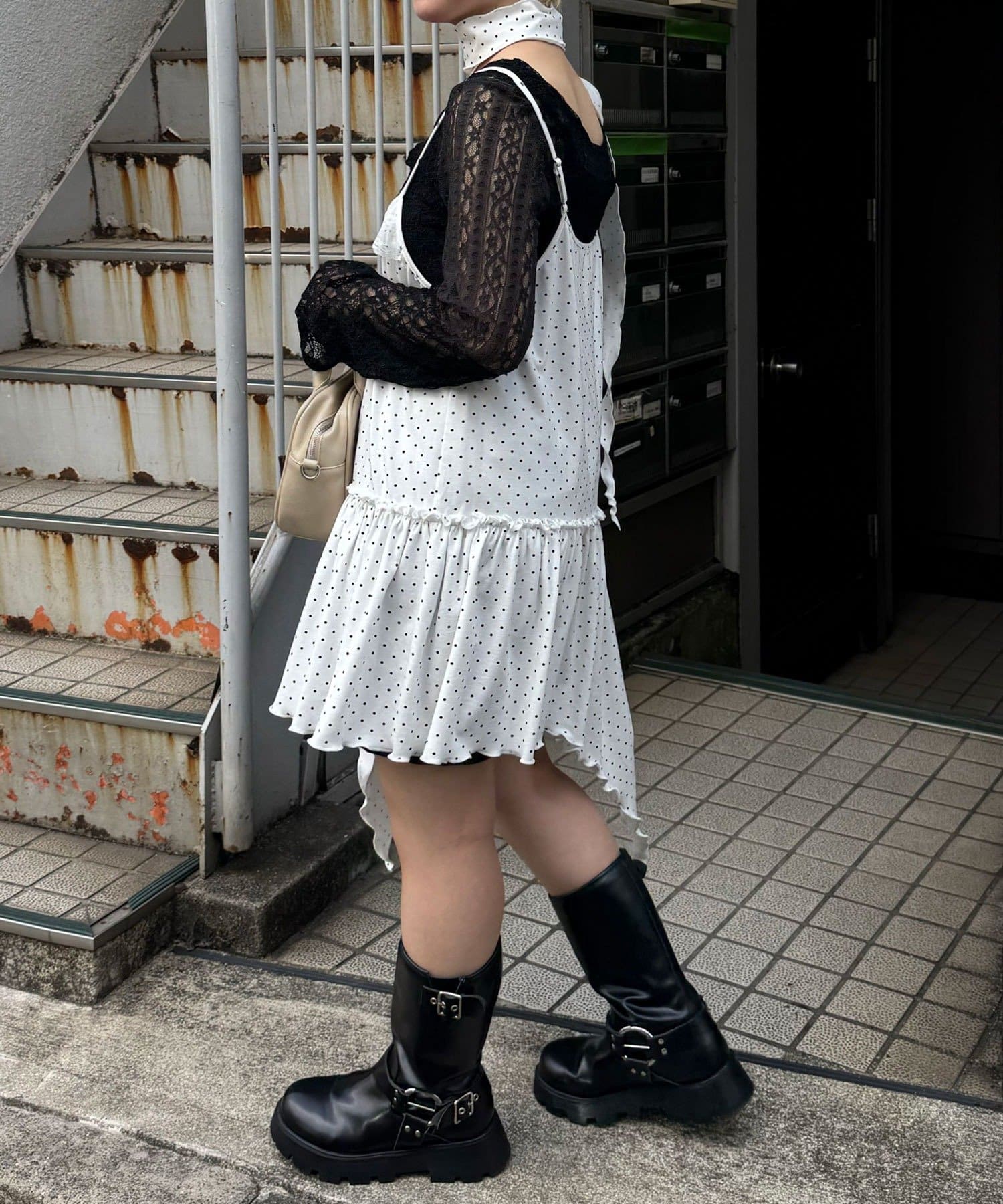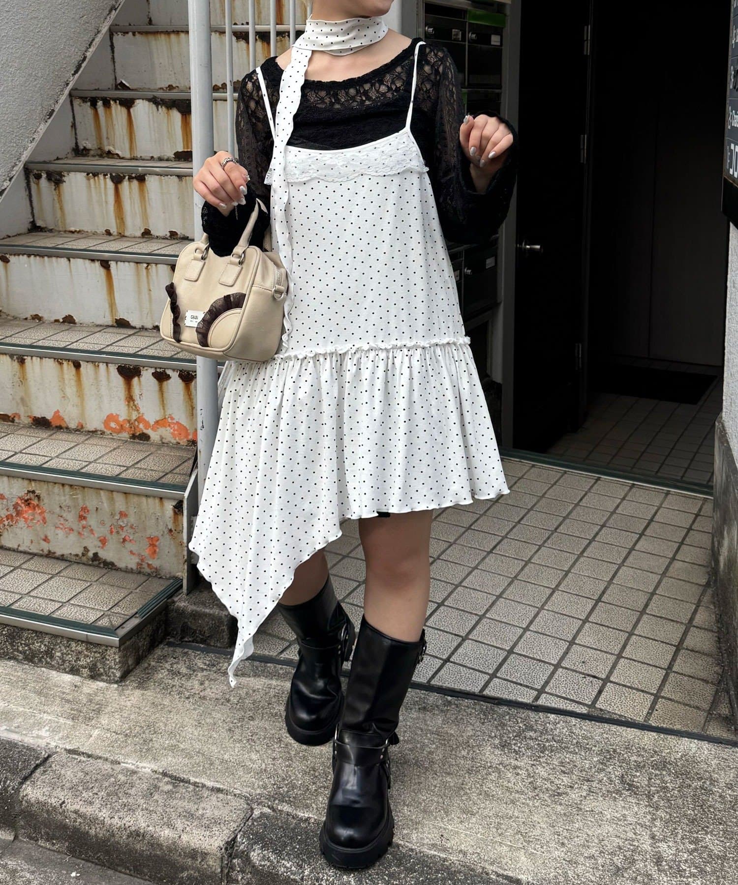 レース×ドット×アシメデザイン、計算されたディテールが詰まったキャミワンピ。