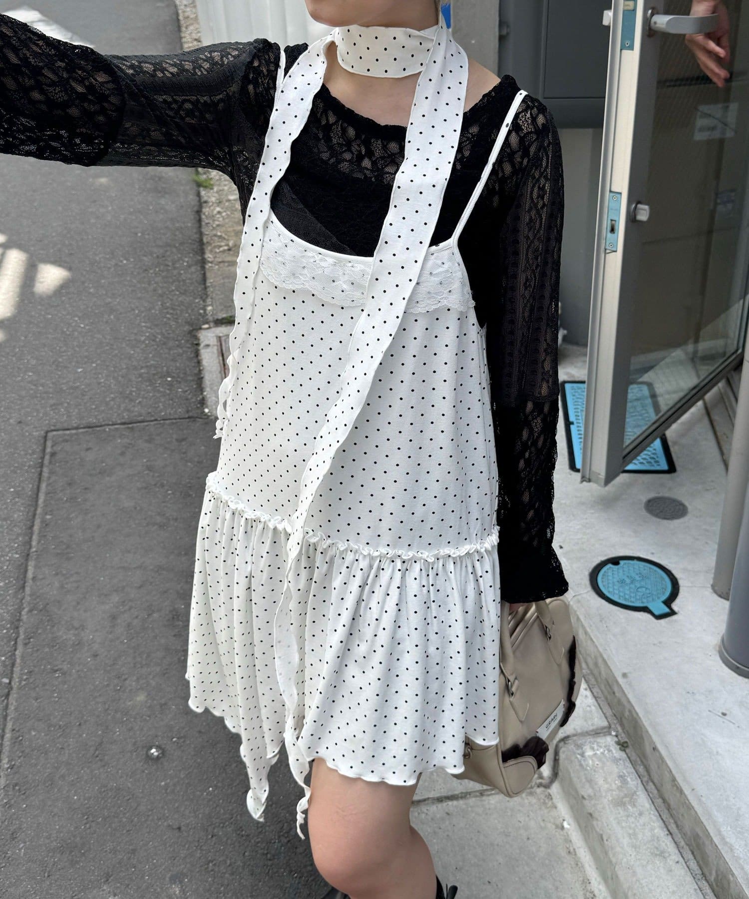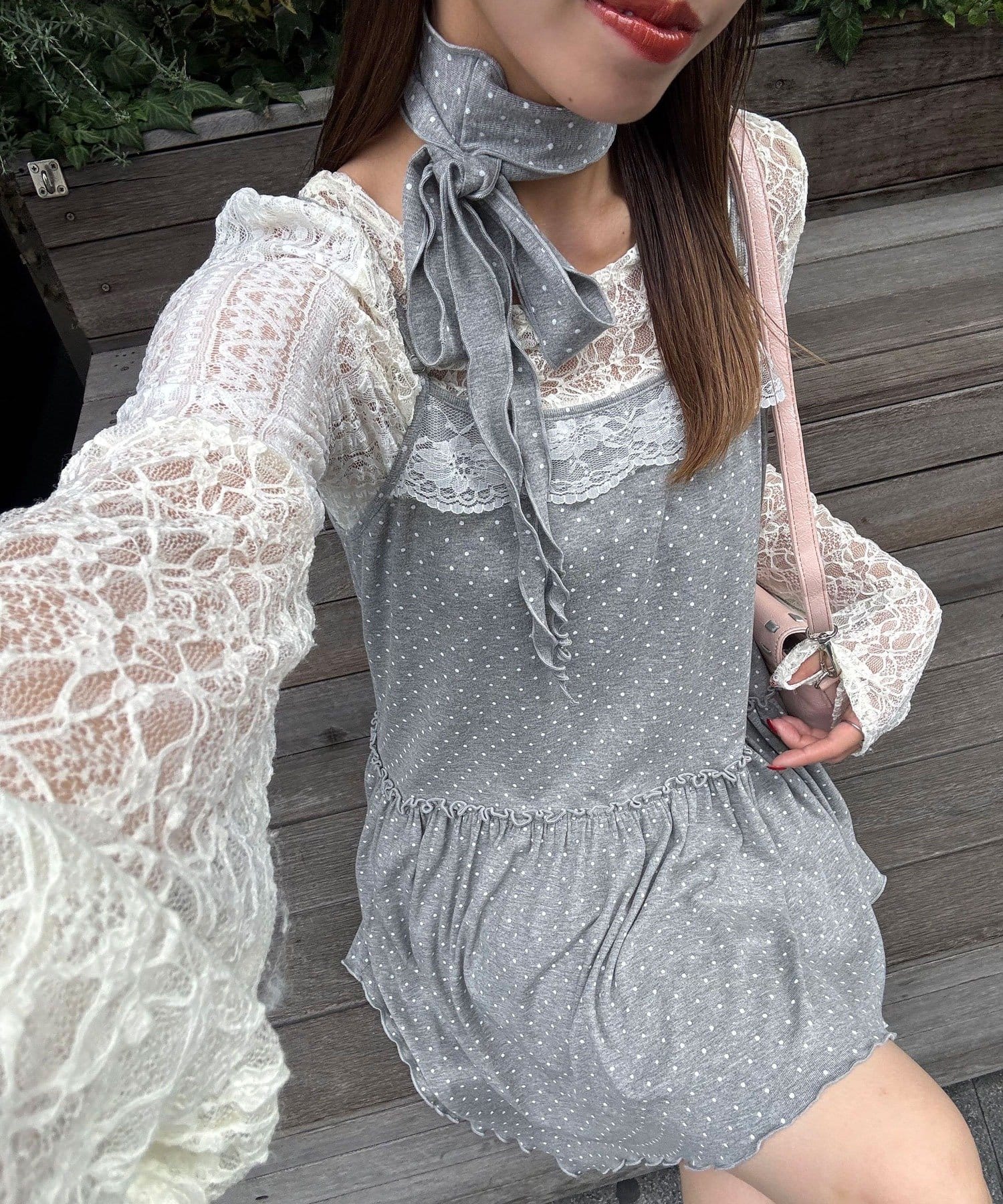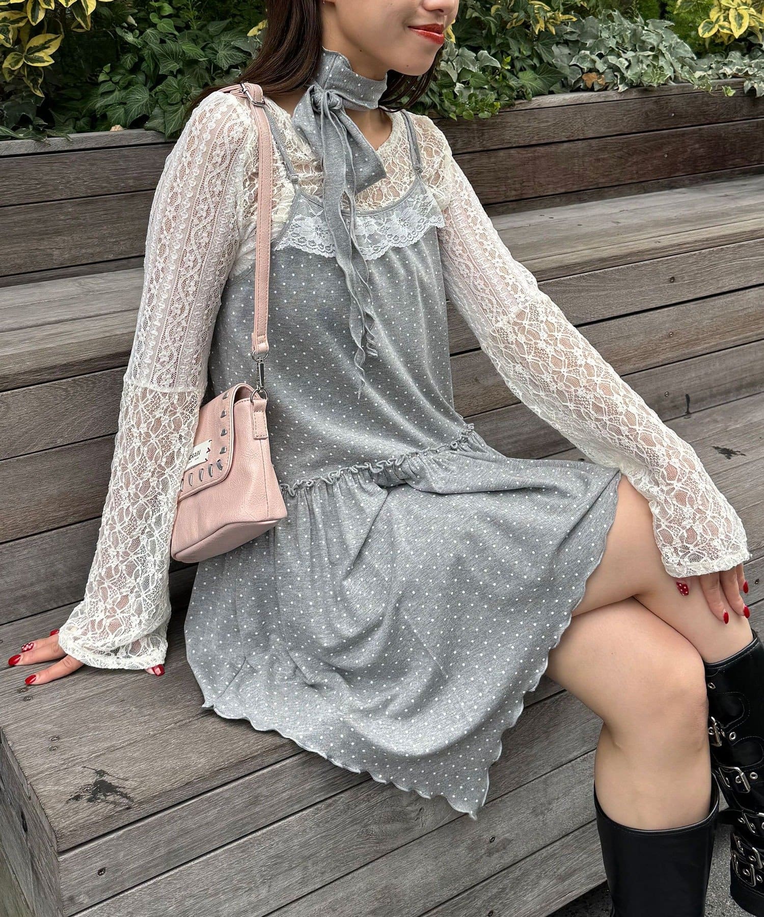 レースとドットの主役級キャミワンピース
