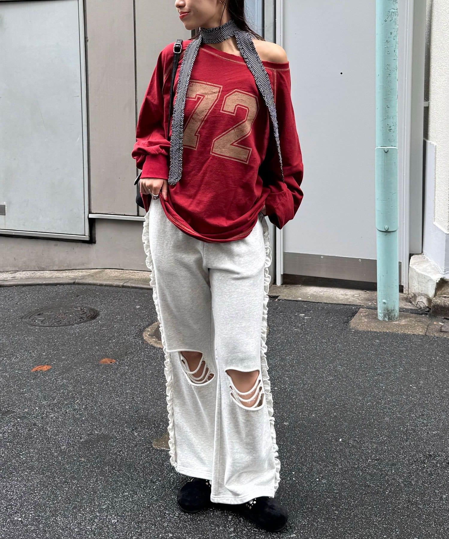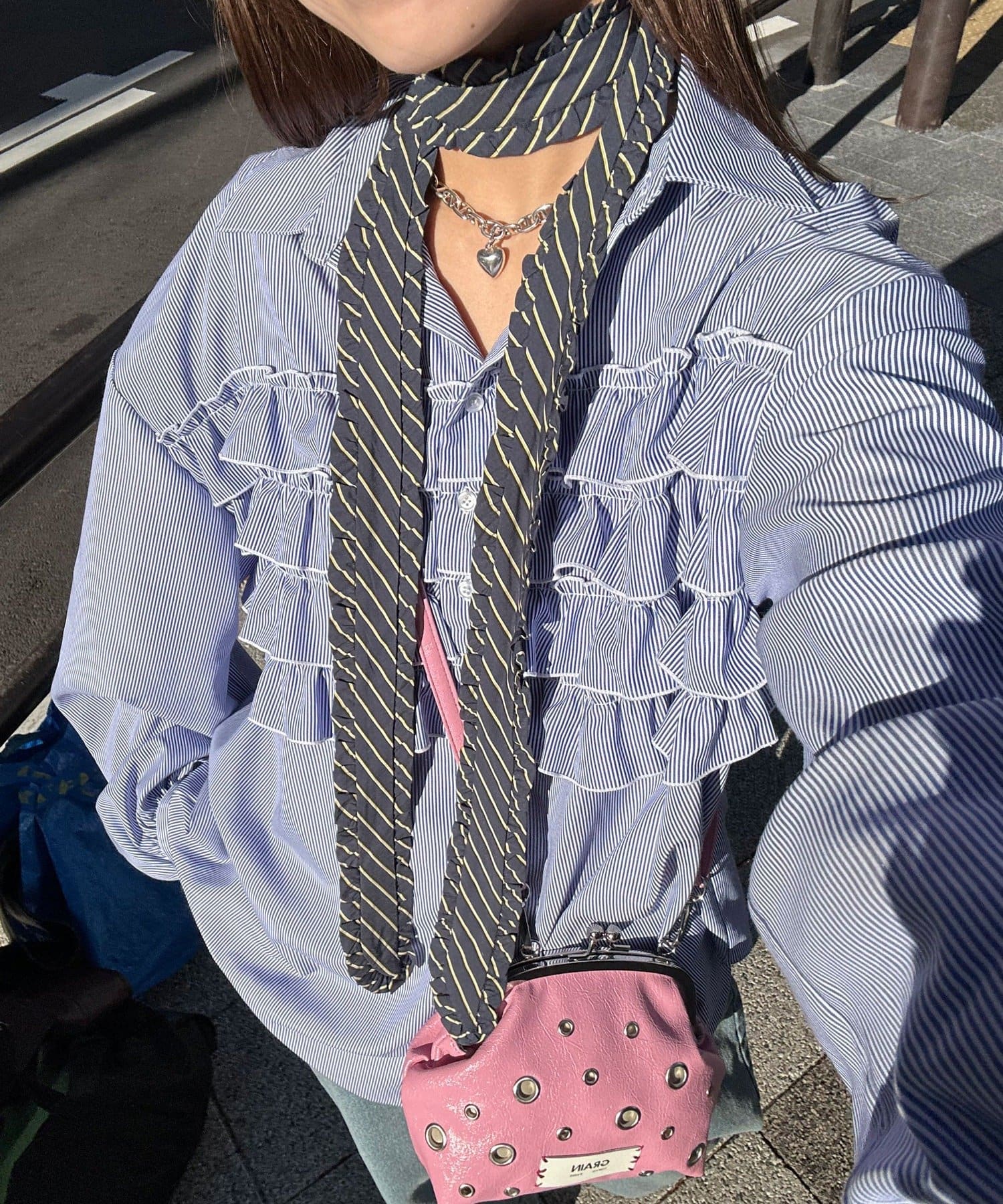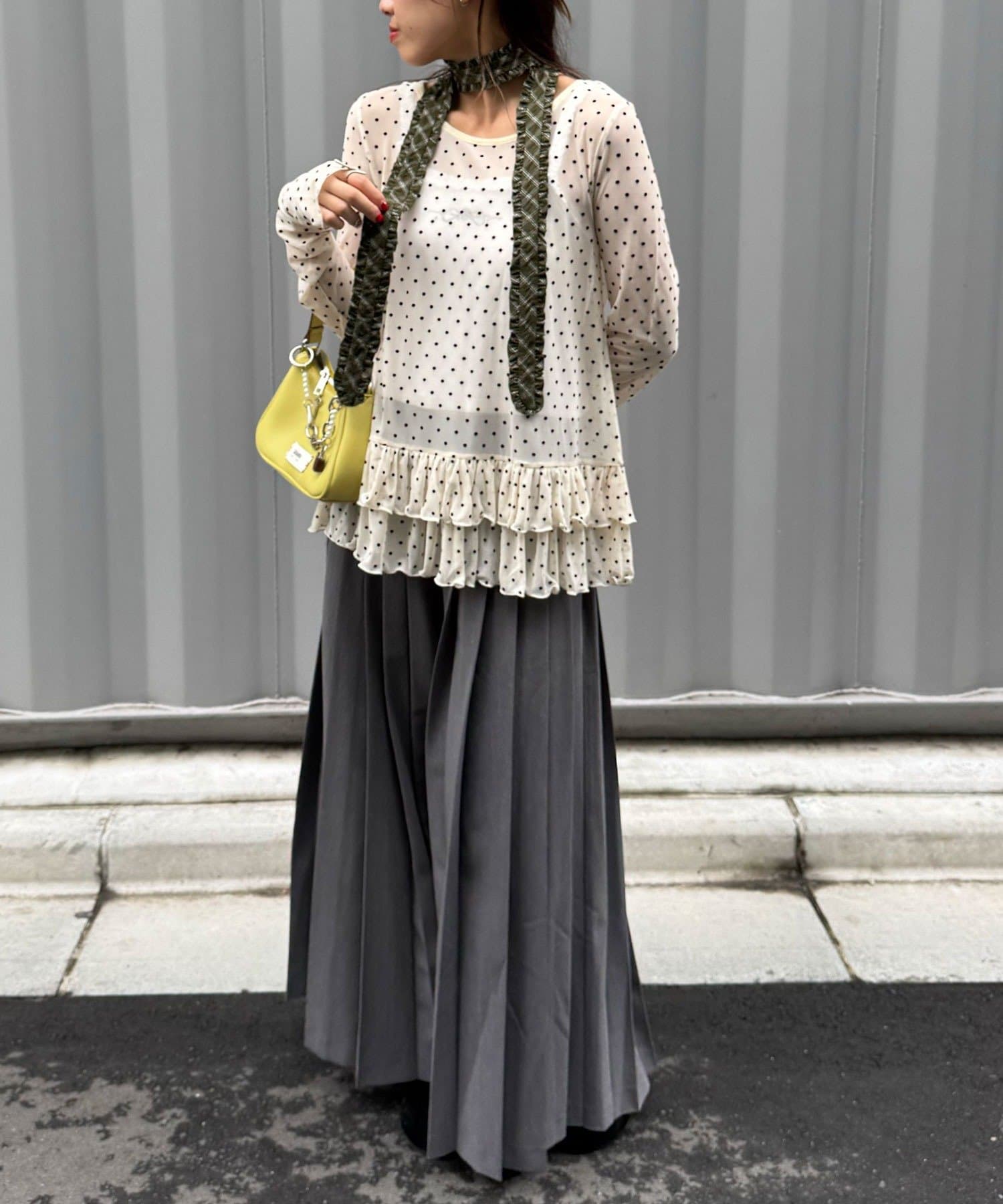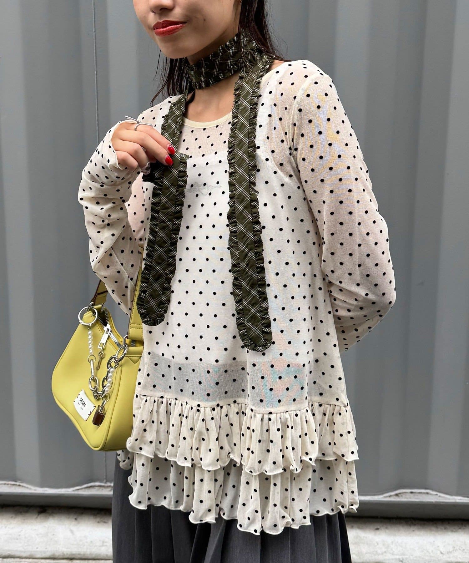フリルネクタイは、ニットやカーディガンにチョーカー巻きで取り入れると◎