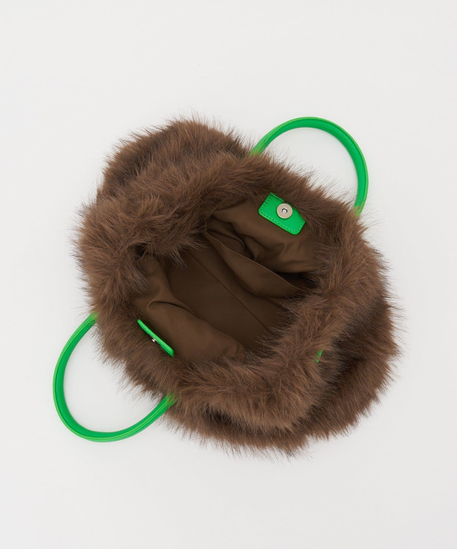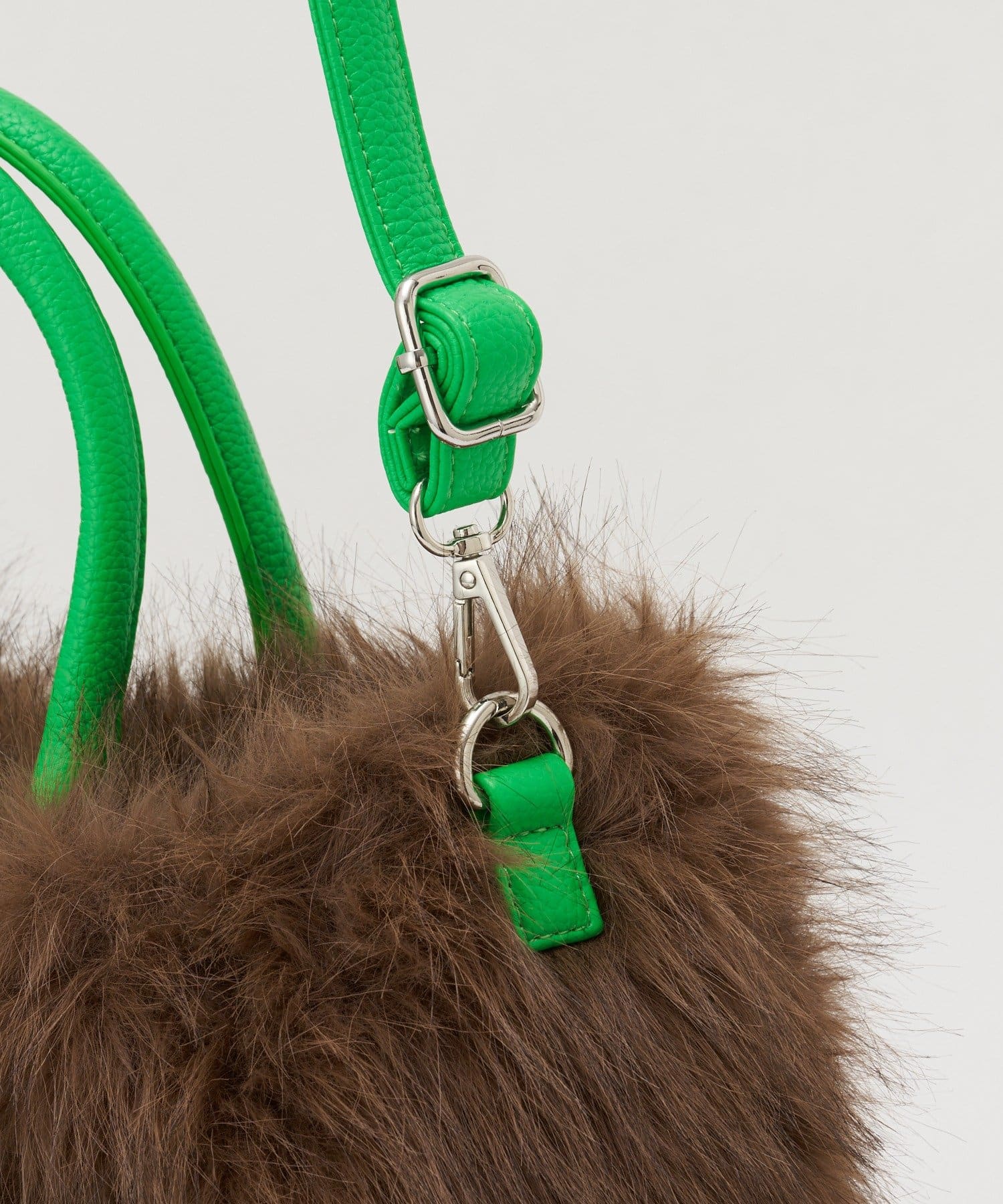 毛足のあるフェイクファー素材が、装いにほんのり季節感を添える2Wayバッグ。