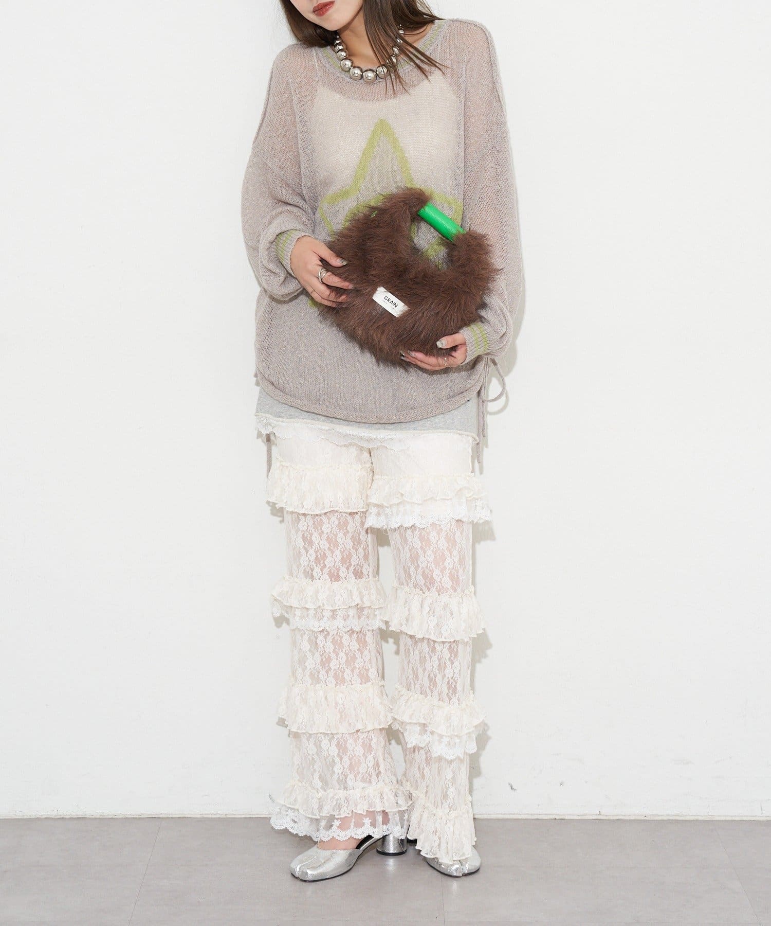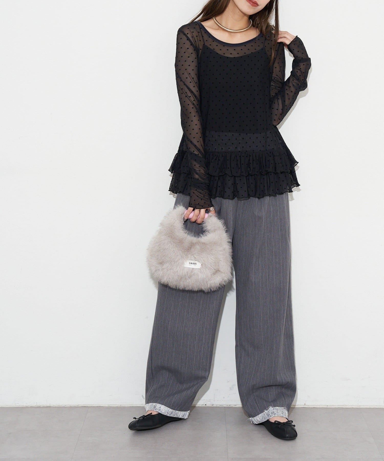 サテンシャツやシアーアイテムと合わせれば、異素材MIXで感度の高い着こなしに。