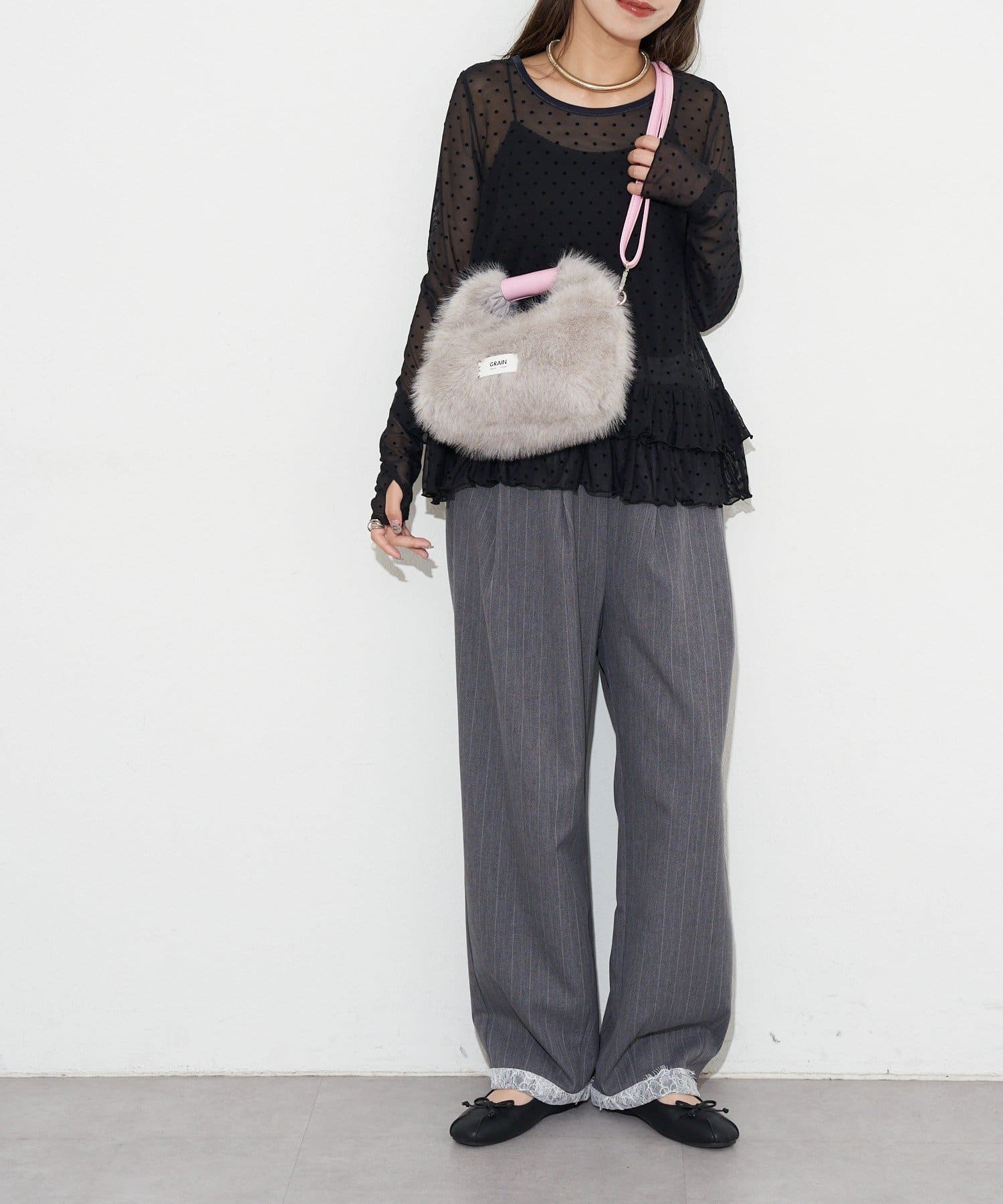 毛足の長いファー素材が、コーデのアクセントになる2Wayバッグ。