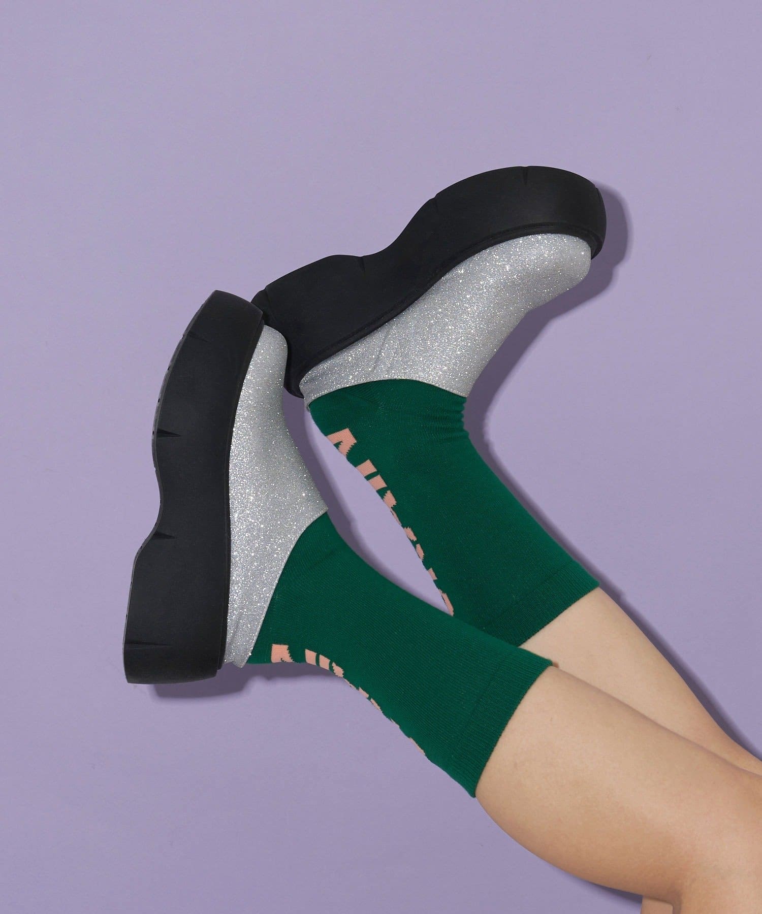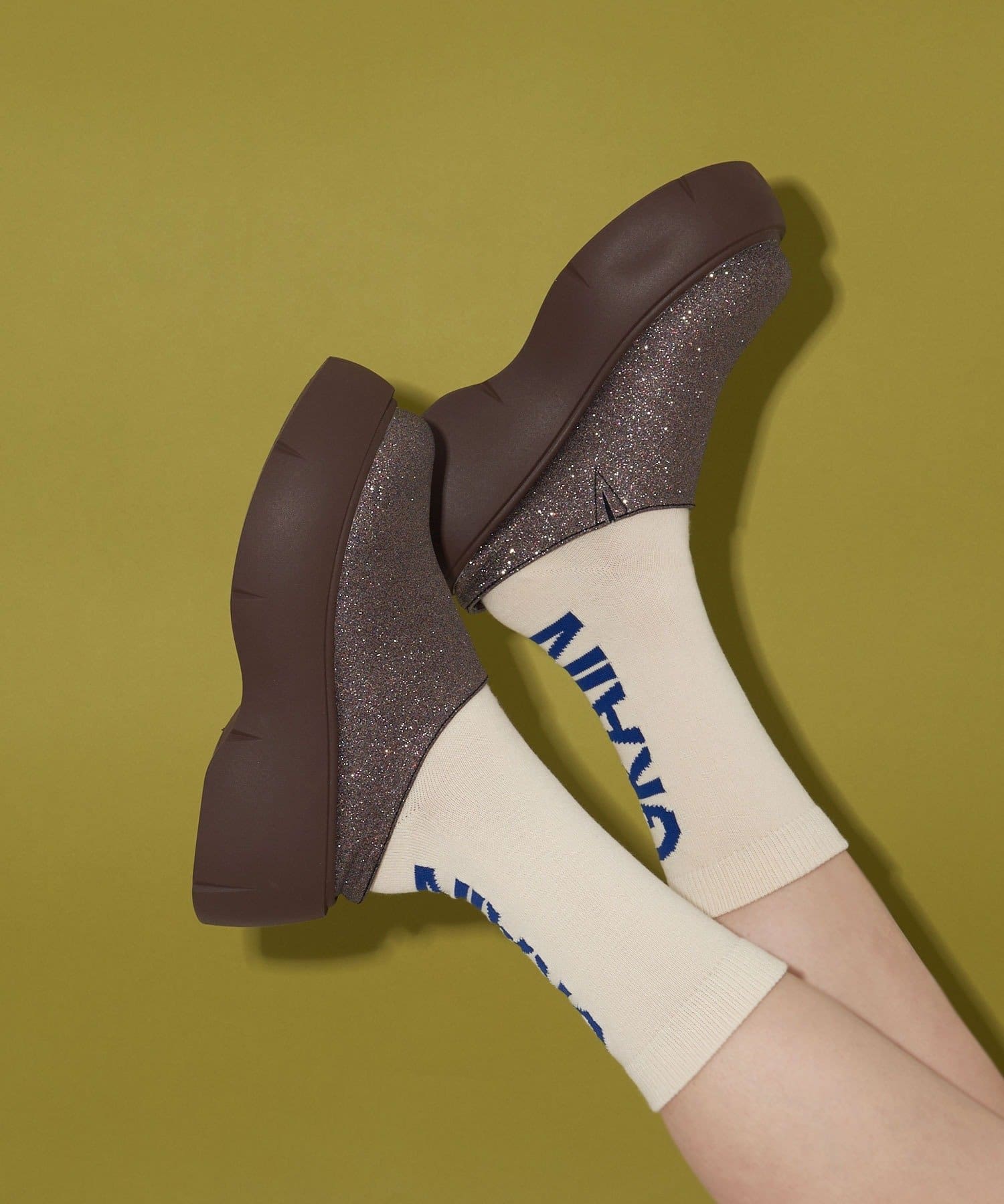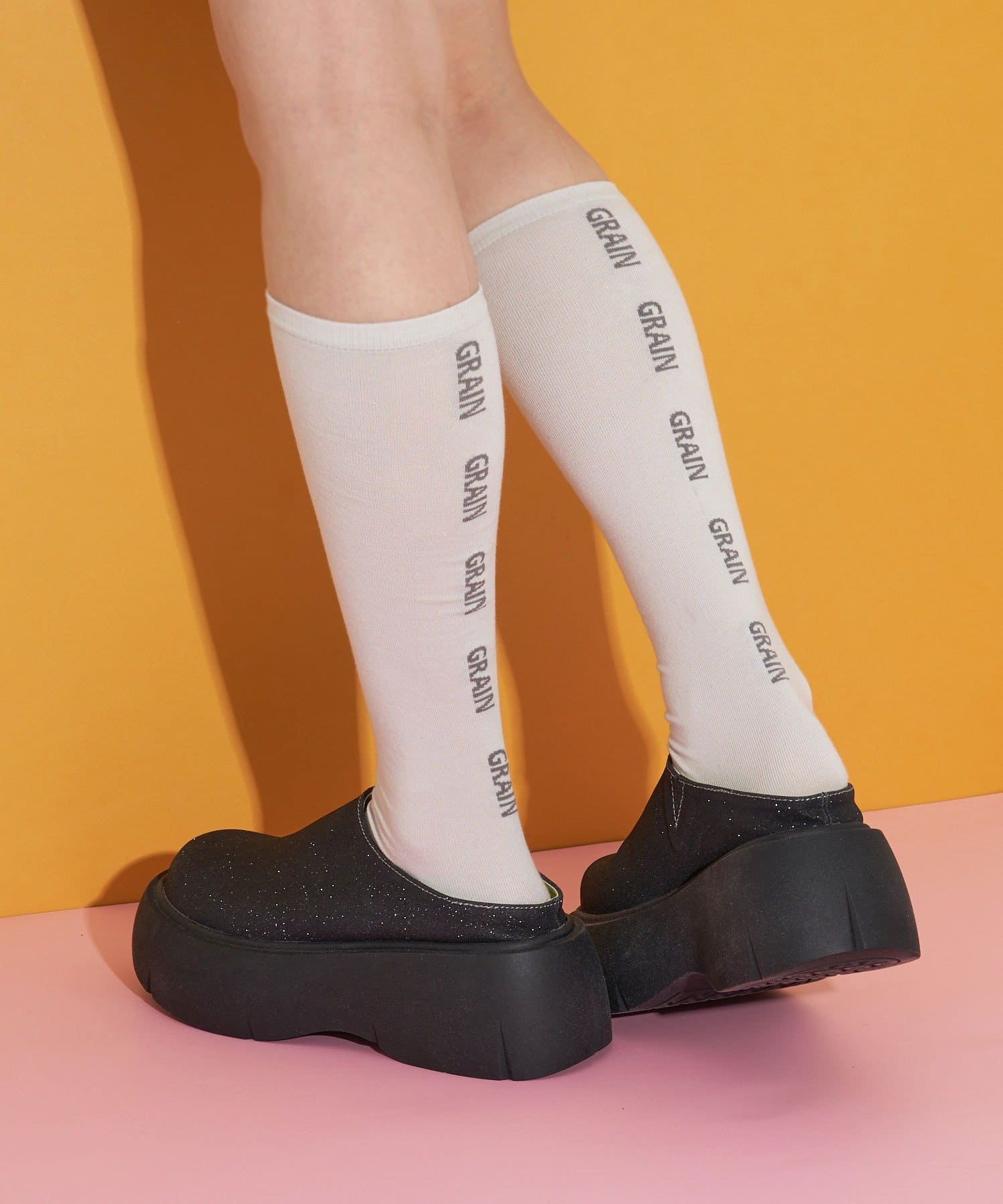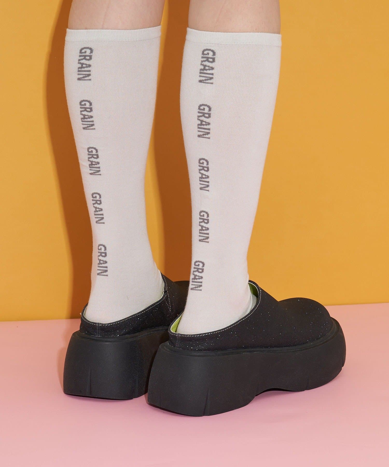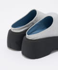細かいラメがさりげなく輝く厚底サボサンダル。