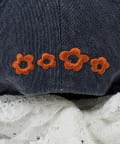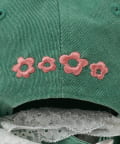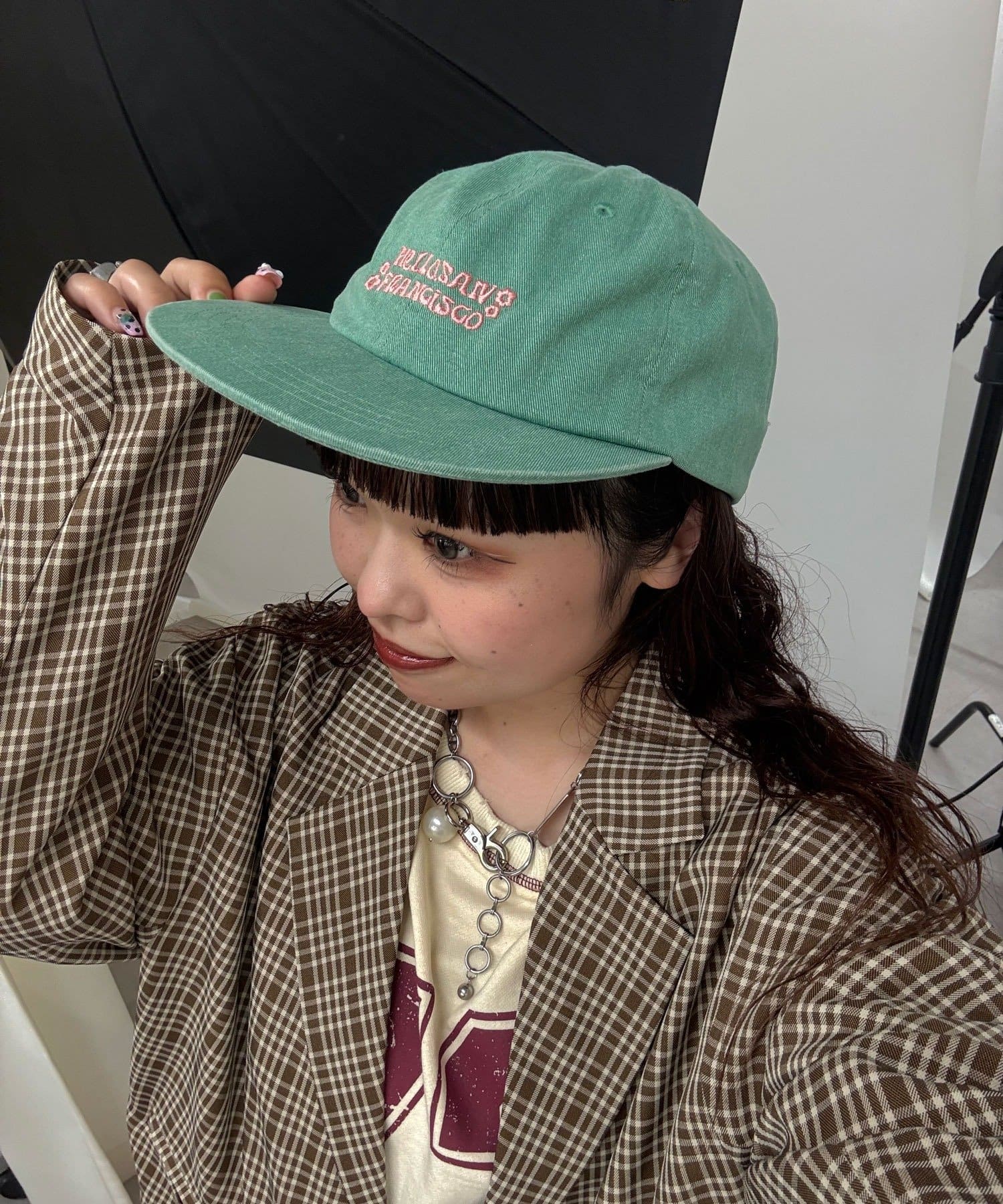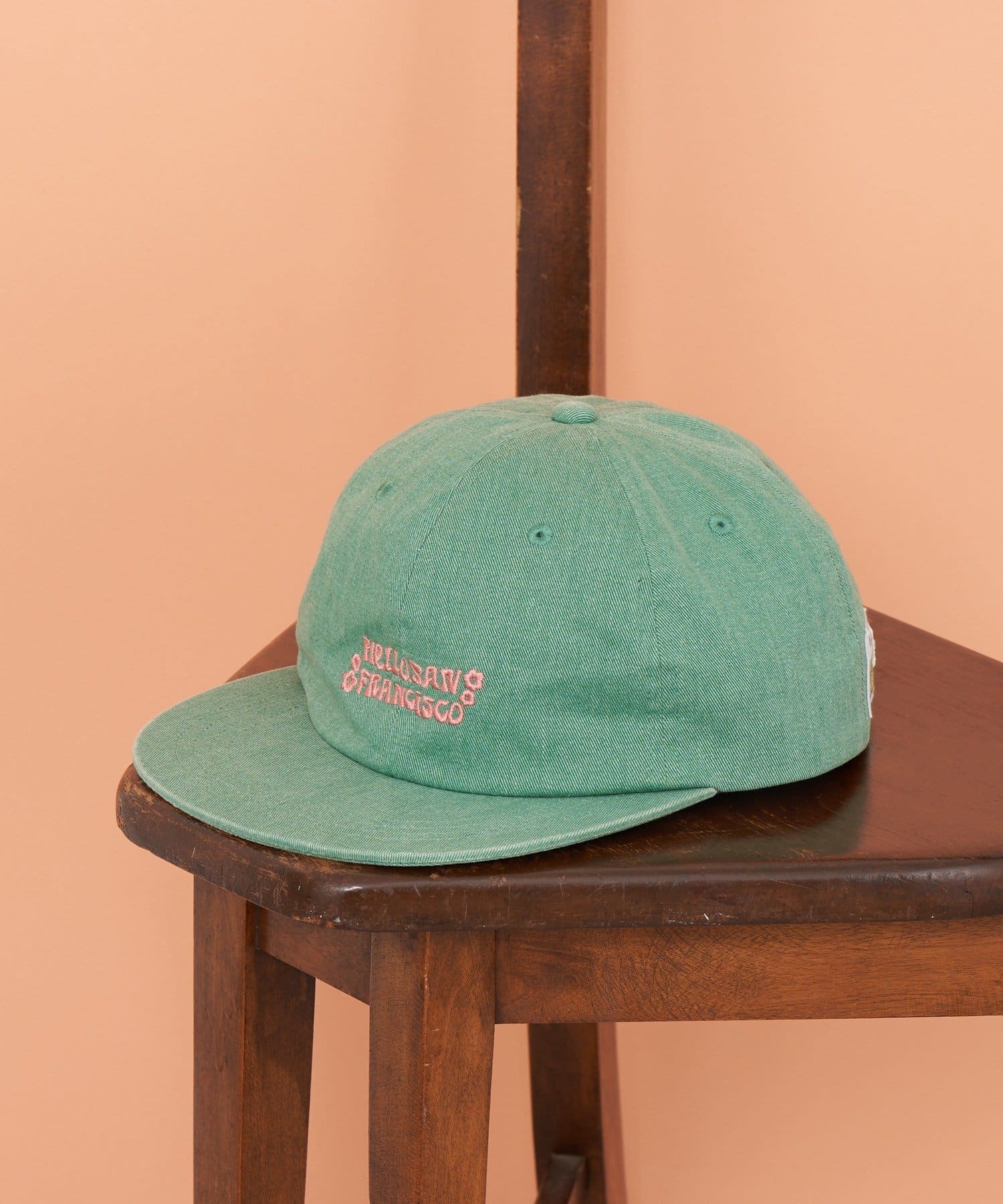 フロントとバックに施された配色刺繍が目を惹く、ピグメント加工のロゴキャップ。