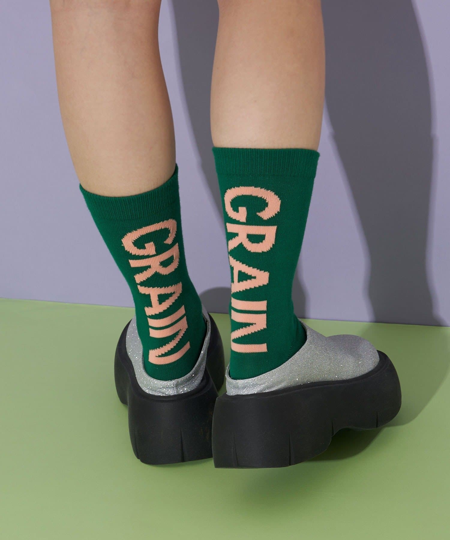 足元から気分をあげてくれる、GRAINのカラーロゴソックス。