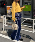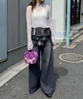 足元はスニーカーや厚底ブーツで、スポーティにもモードにもハマります。