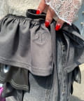 ウエストはひもで結ぶ仕様で、着脱もらくちん。