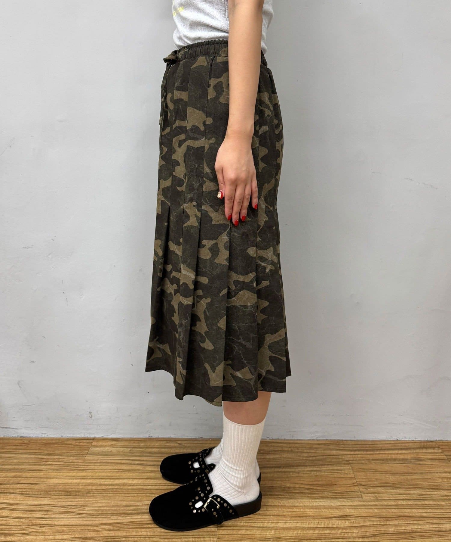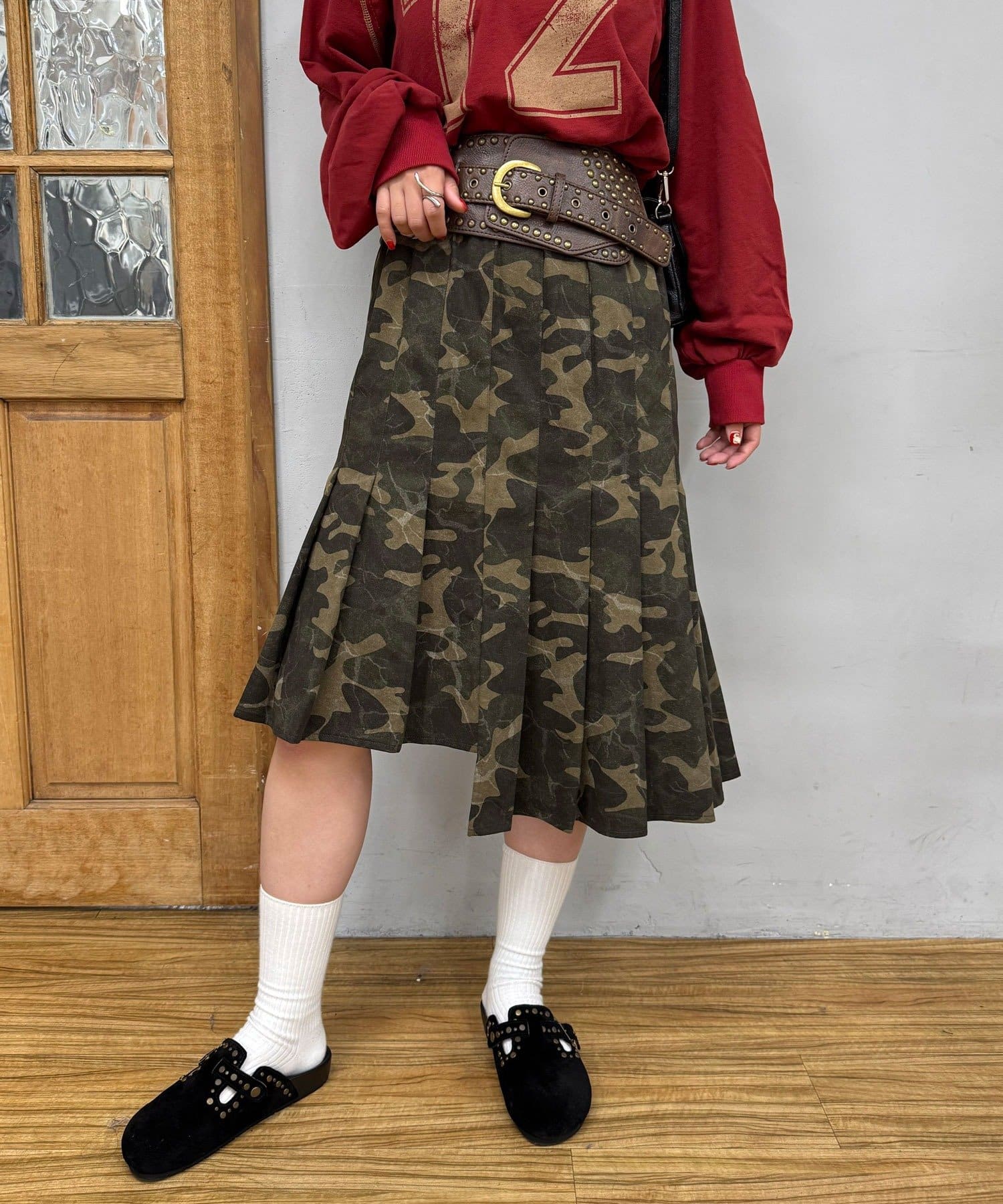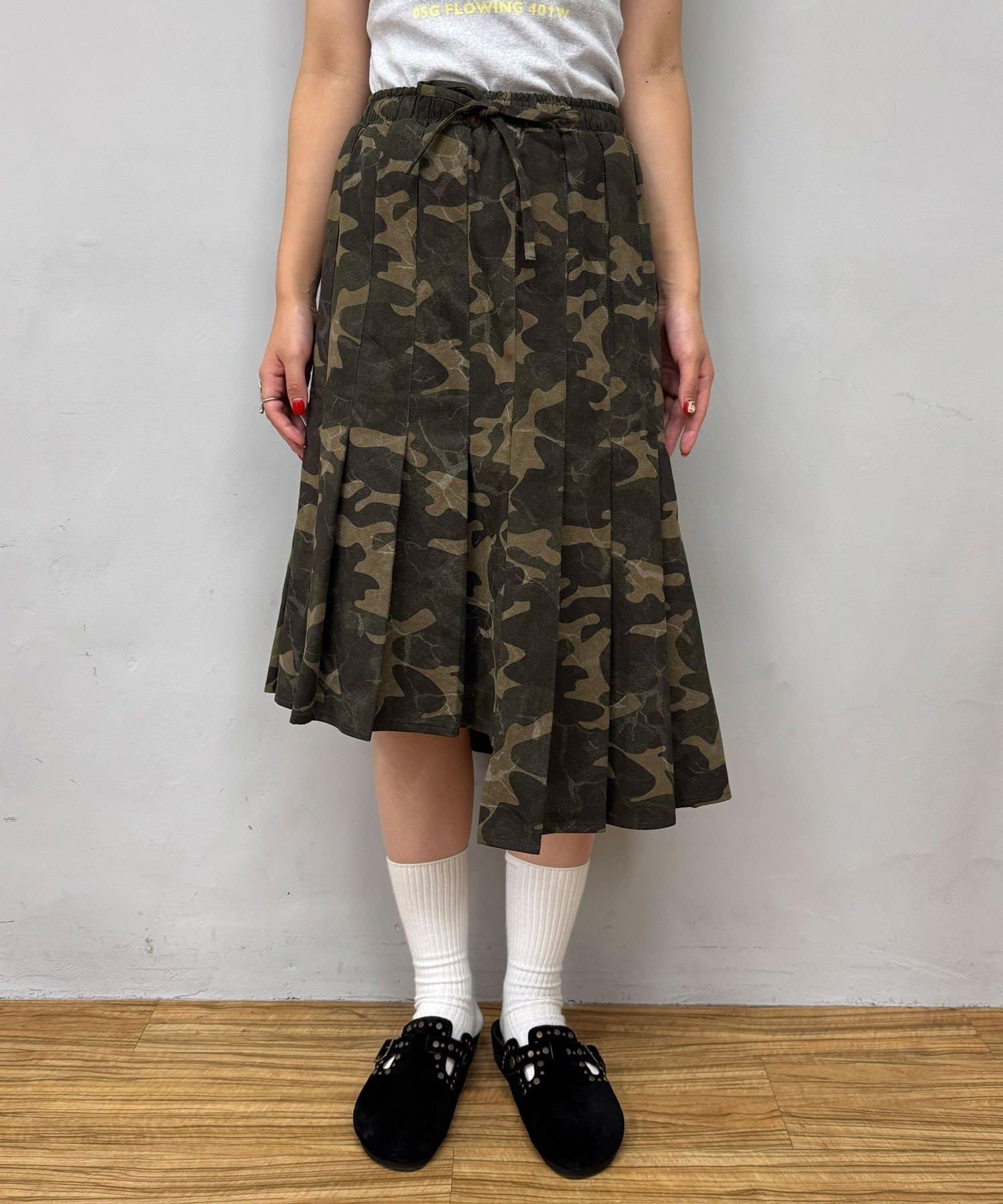 ミリタリーテイストを今っぽく落とし込んだ、カモ柄プリーツスカート。
