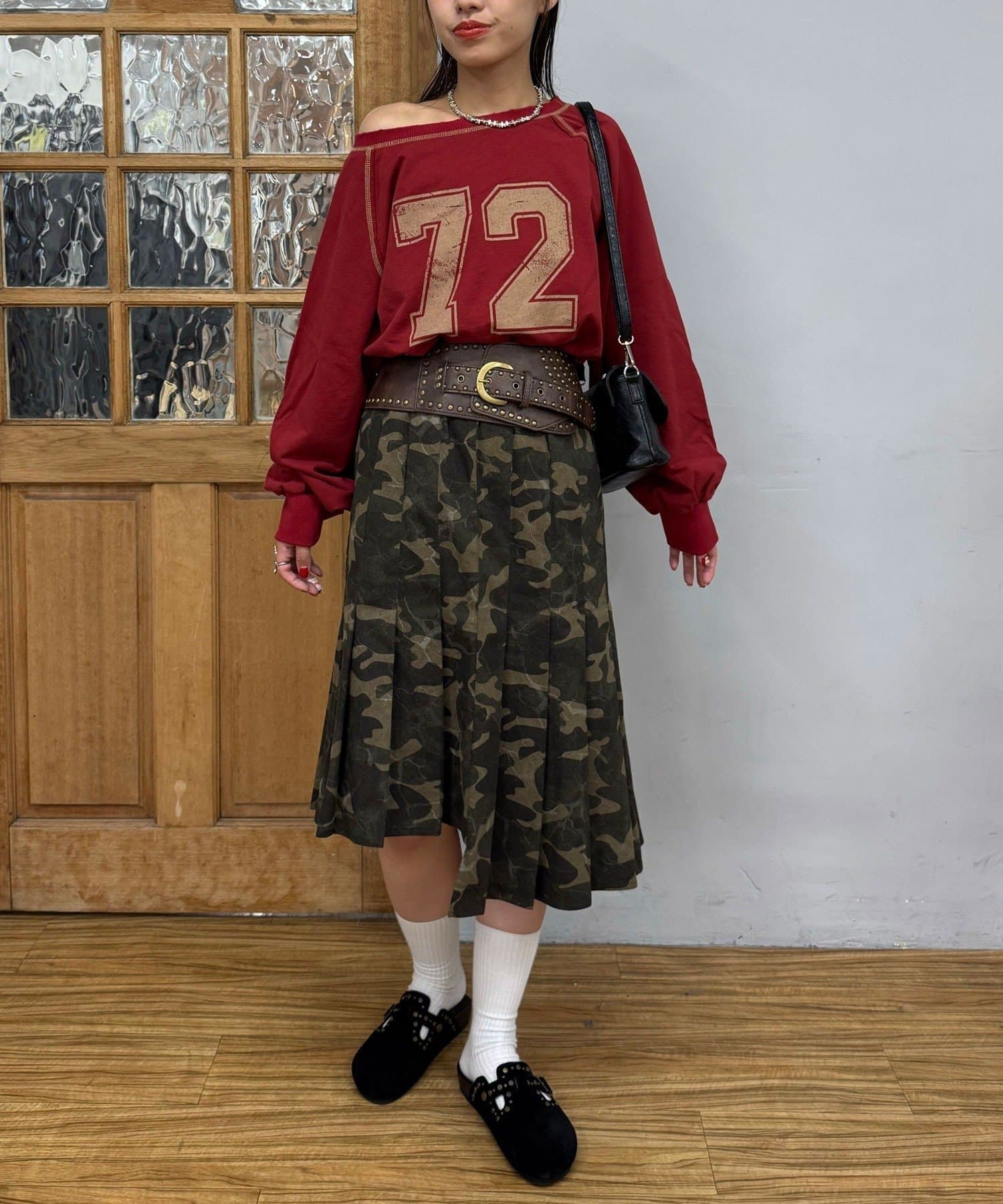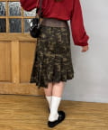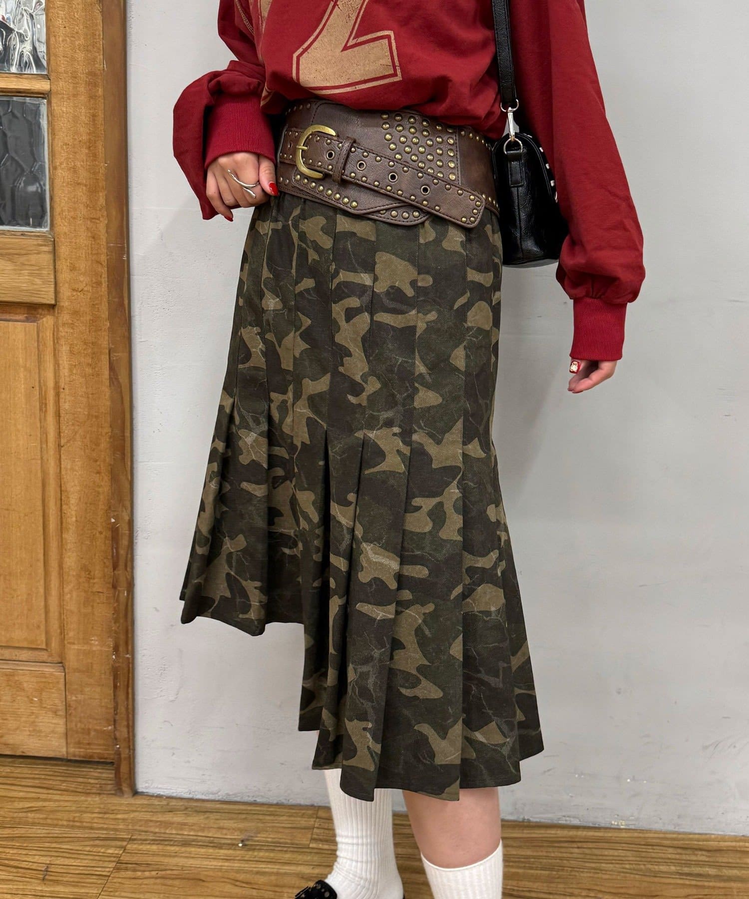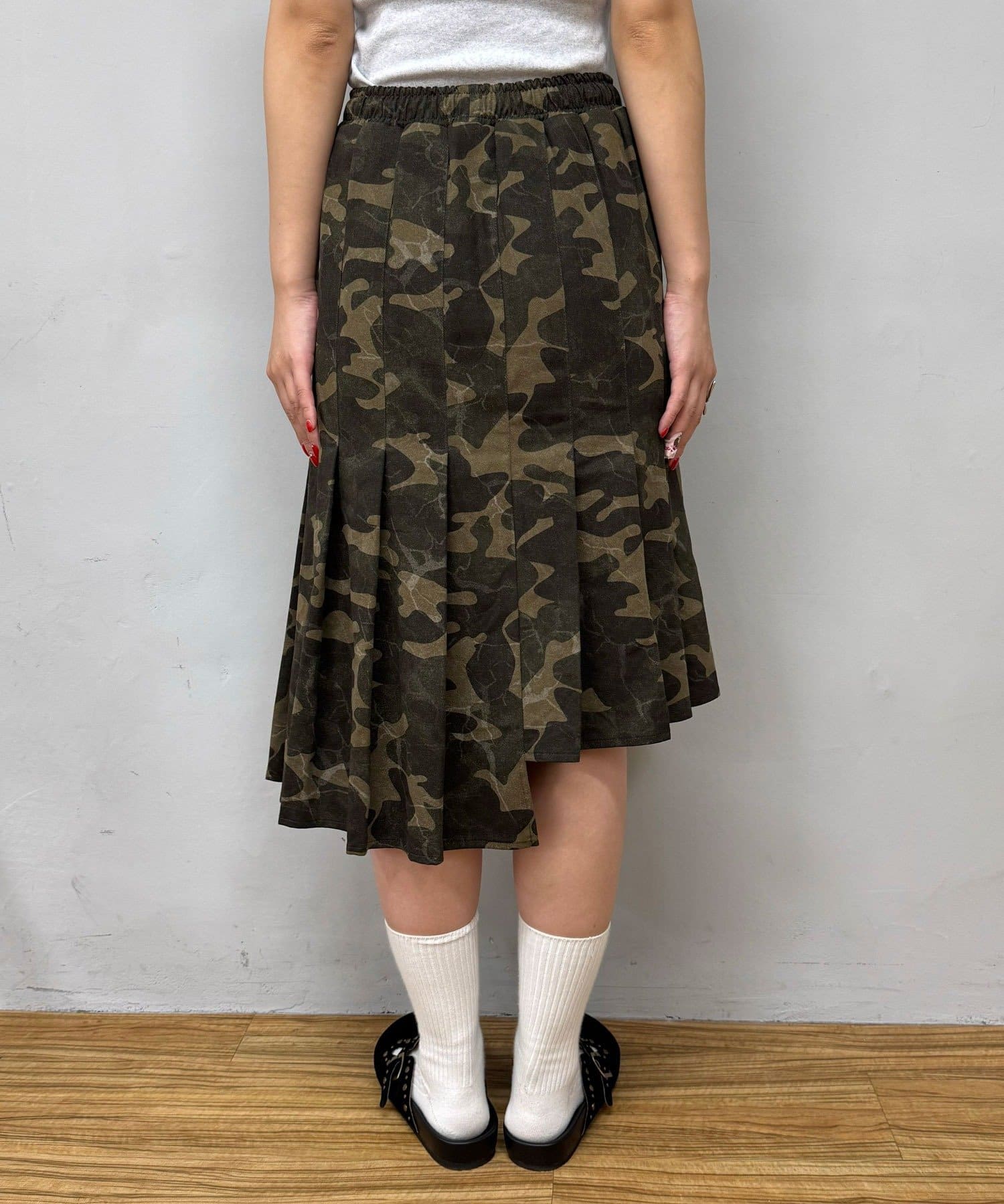 ミリタリーテイストを今っぽく落とし込んだ、カモ柄プリーツスカート。