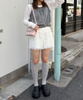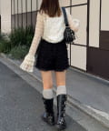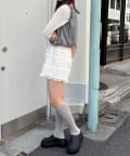 ブラウスやニットと合わせて、とことん甘めのガーリースタイルに。