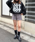 Tシャツやスウェット、ジャケットと合わせて、ガーリー×カジュアルのバランスを楽しむのもおすすめ。