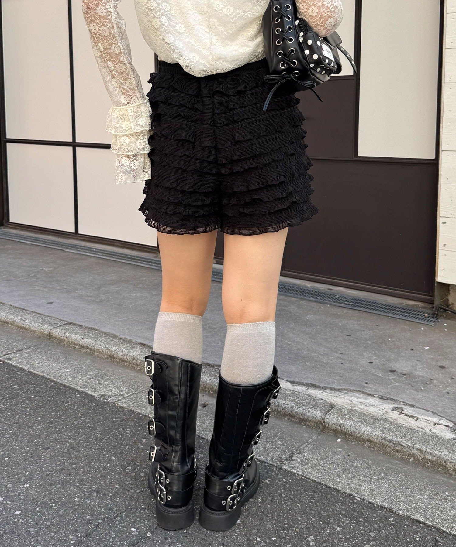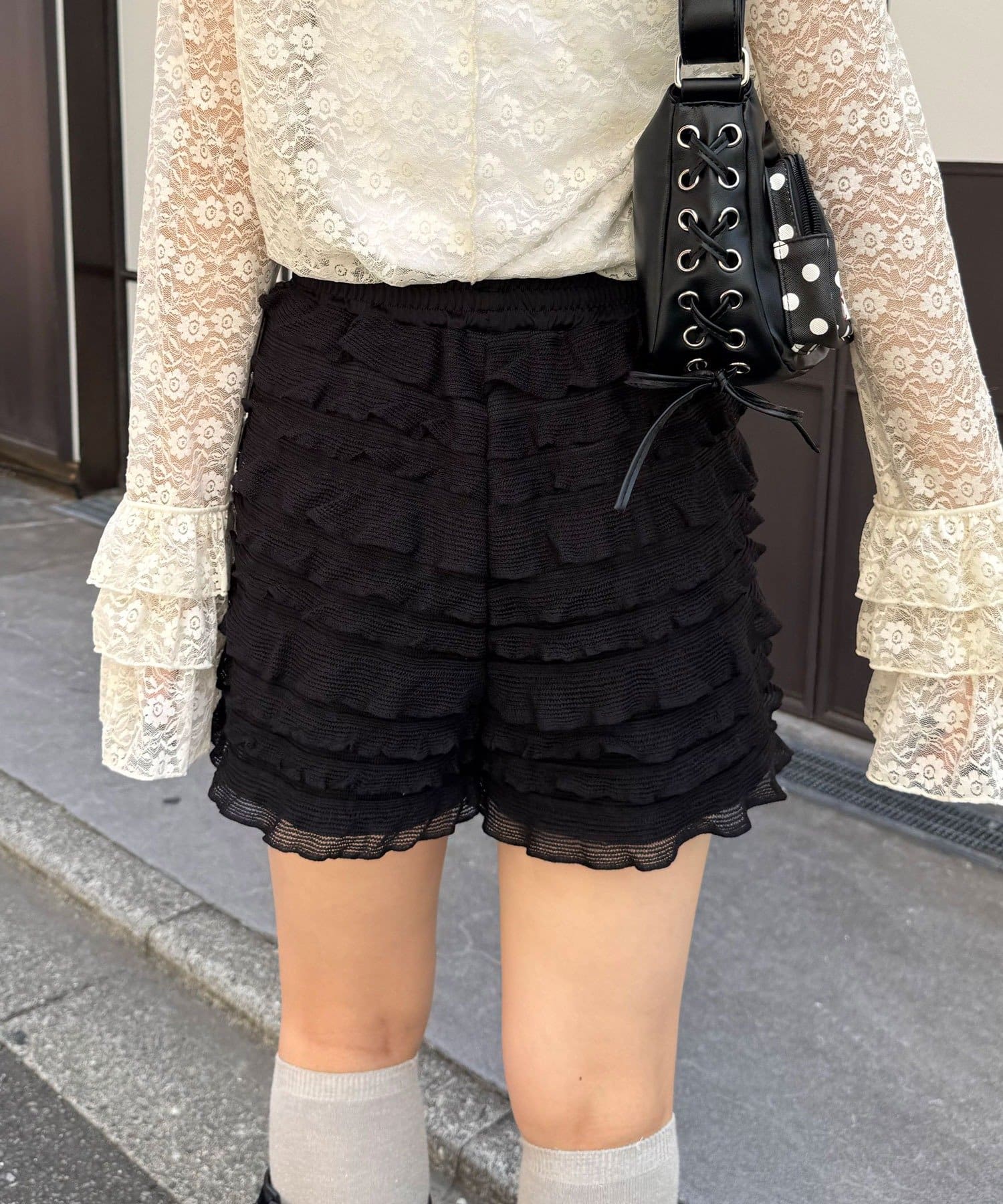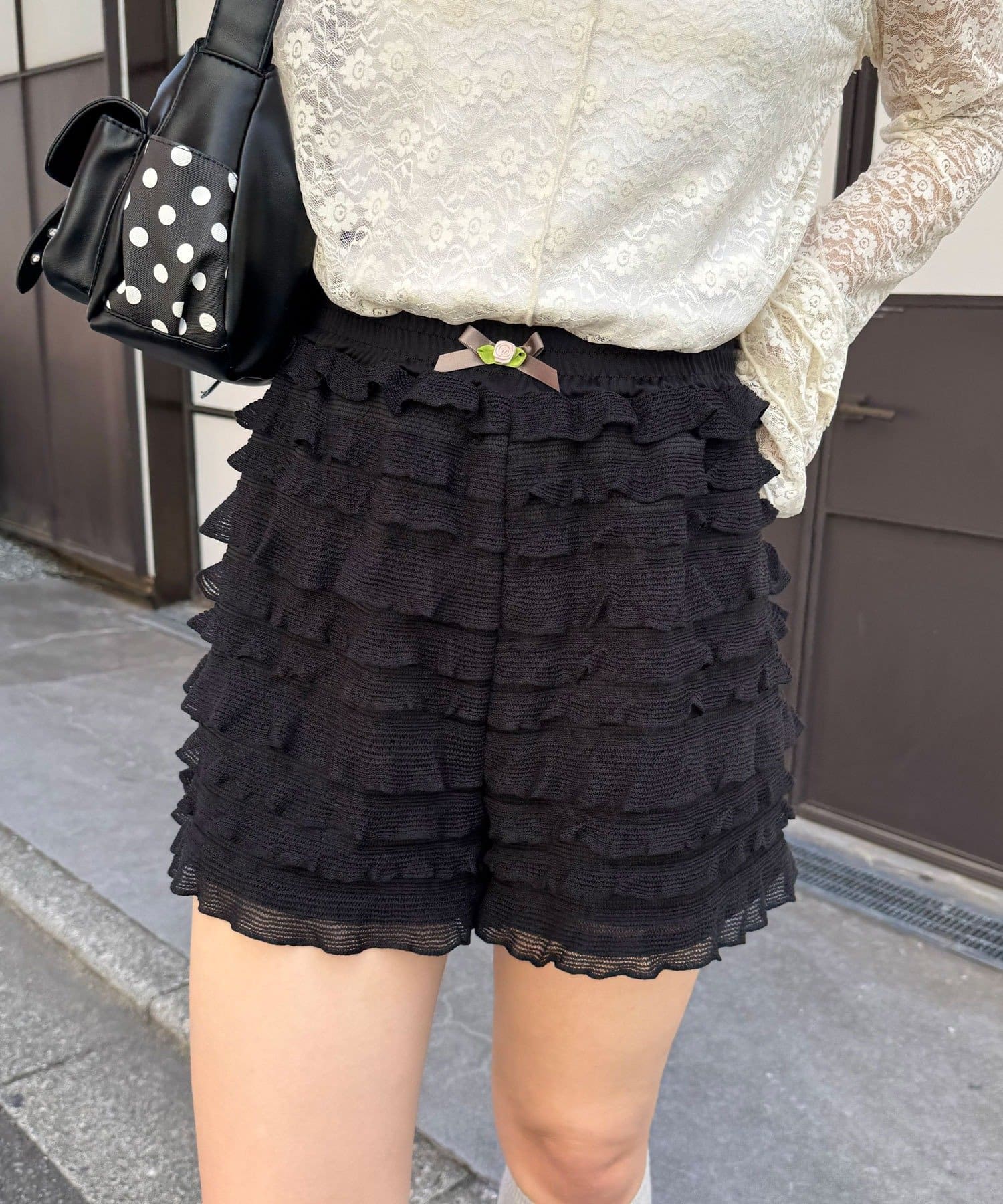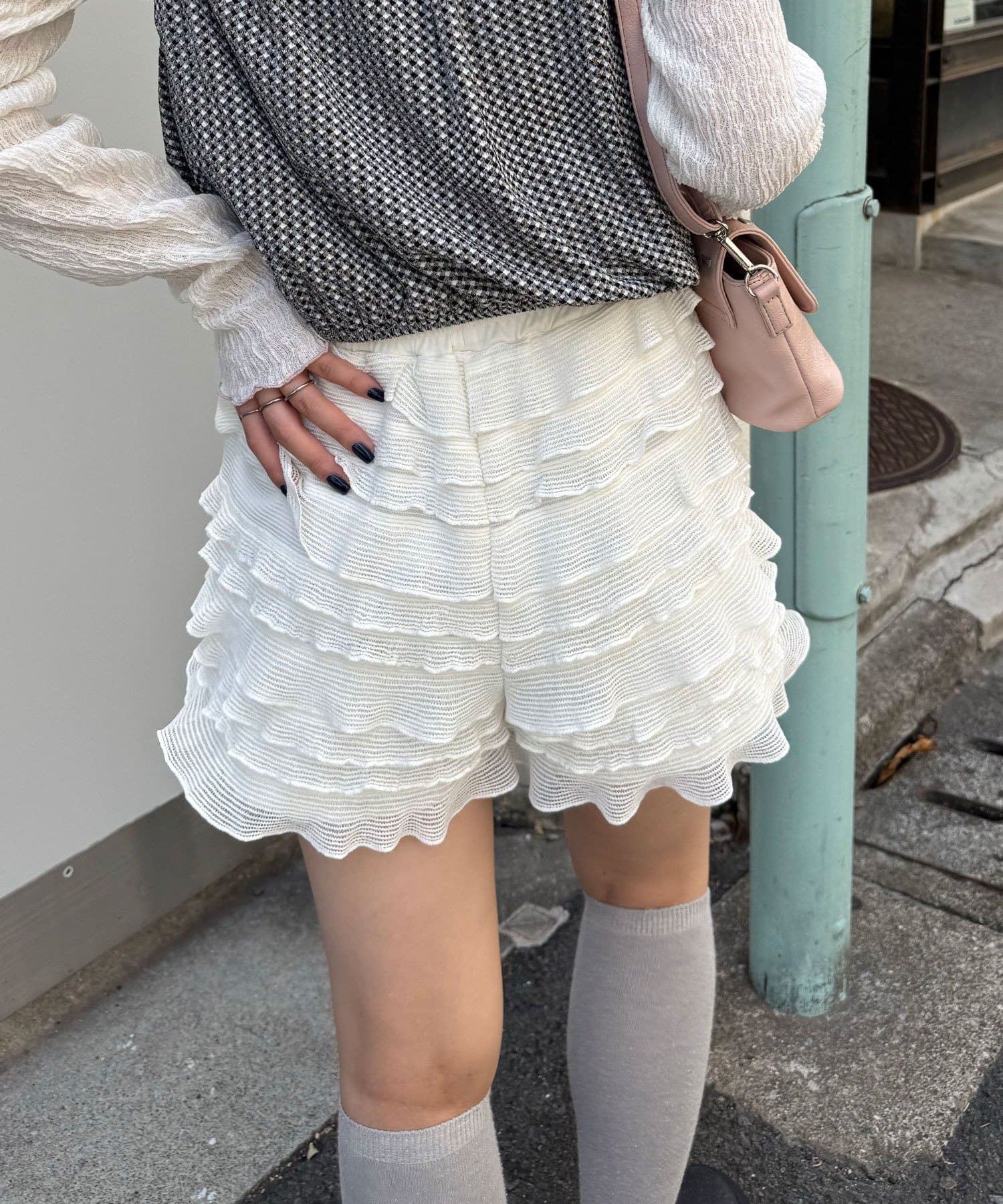 ふんわり広がるティアードフリルが華やかで、スカート見えするショートパンツ。
