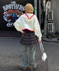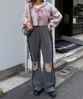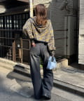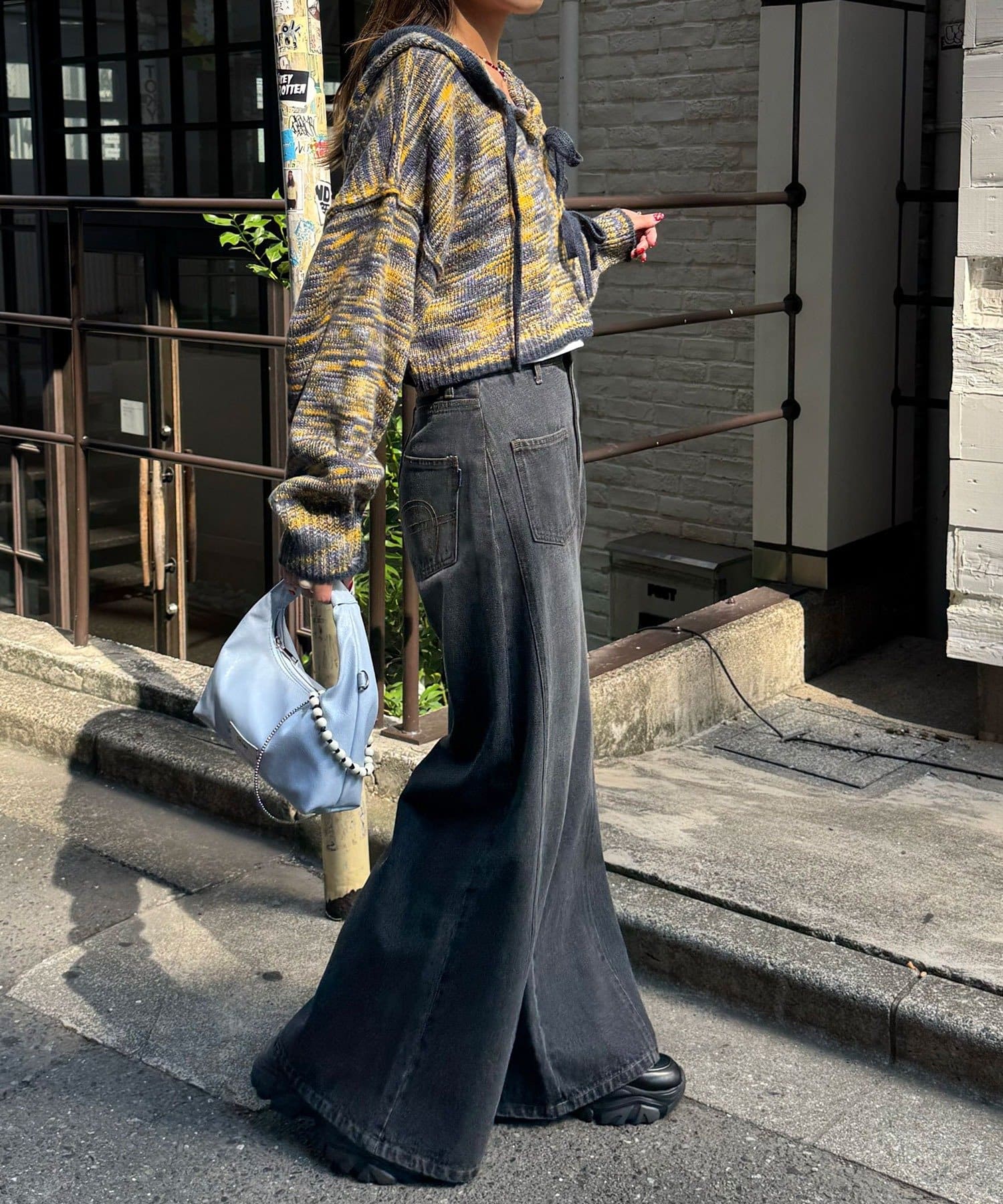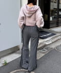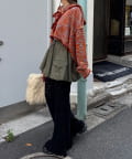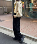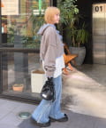 切り替え部分は外側で縫い合わせるアウトリンキング仕様で、古着のようなリメイク感のあるデザインに。