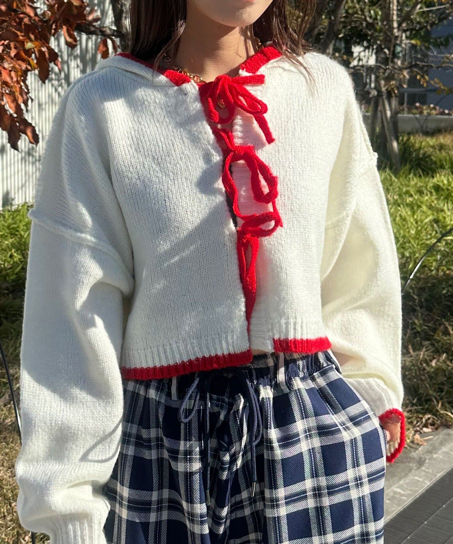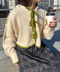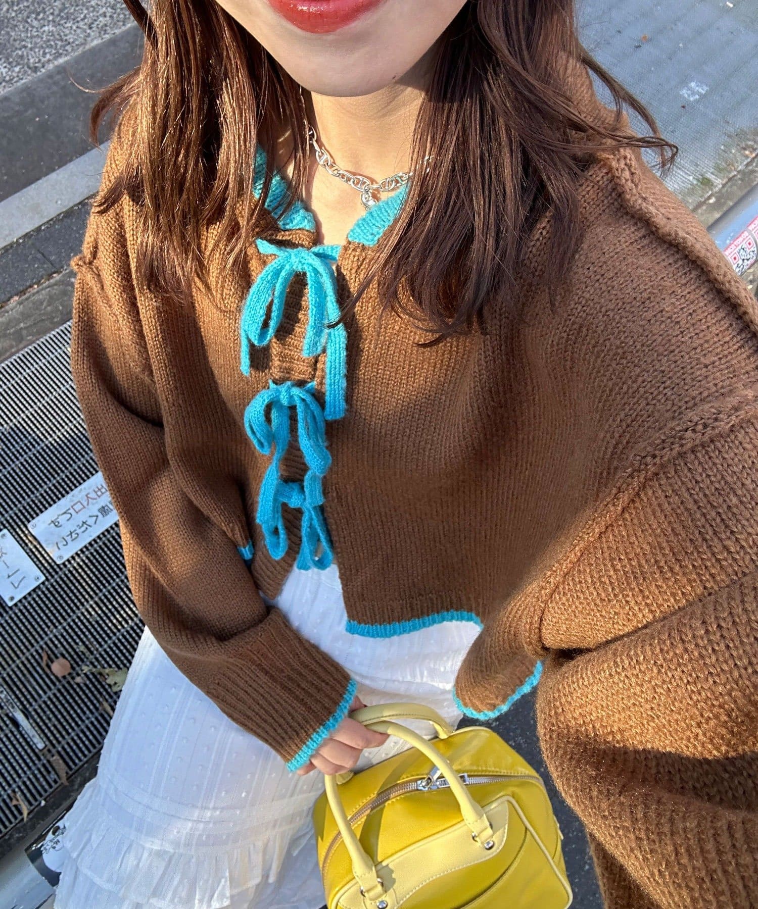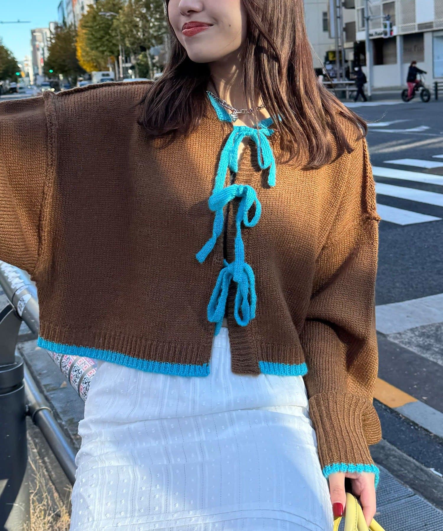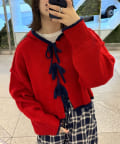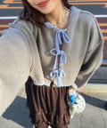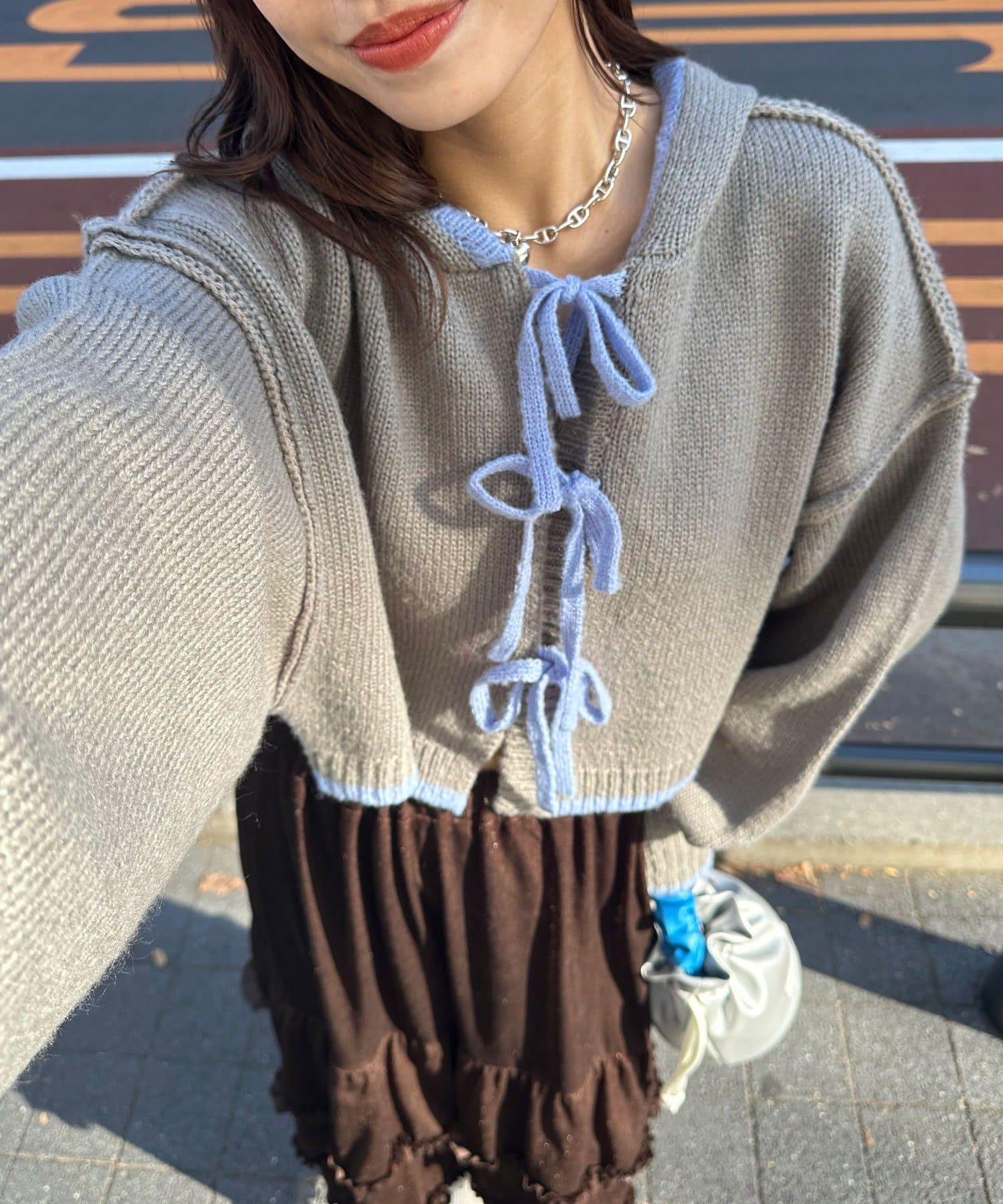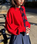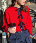 フロントのリボンやたっぷりのボリュームスリーブが甘めな印象をプラス!