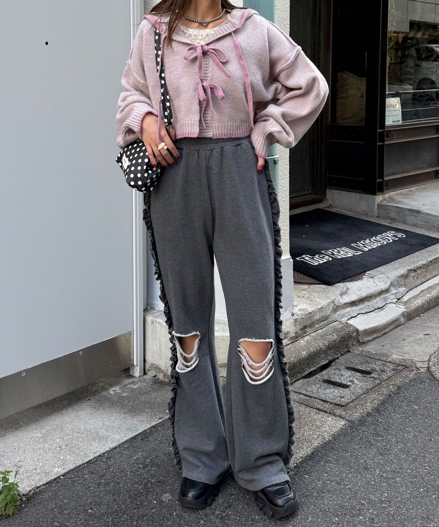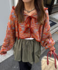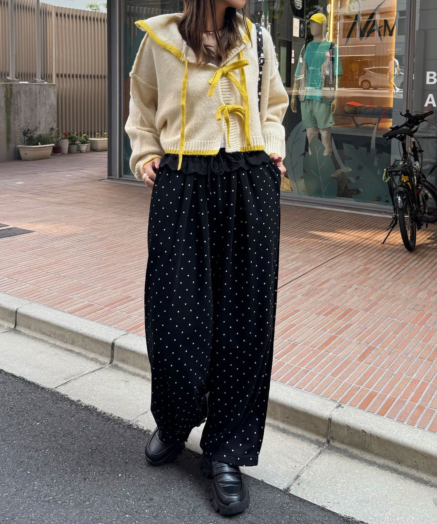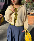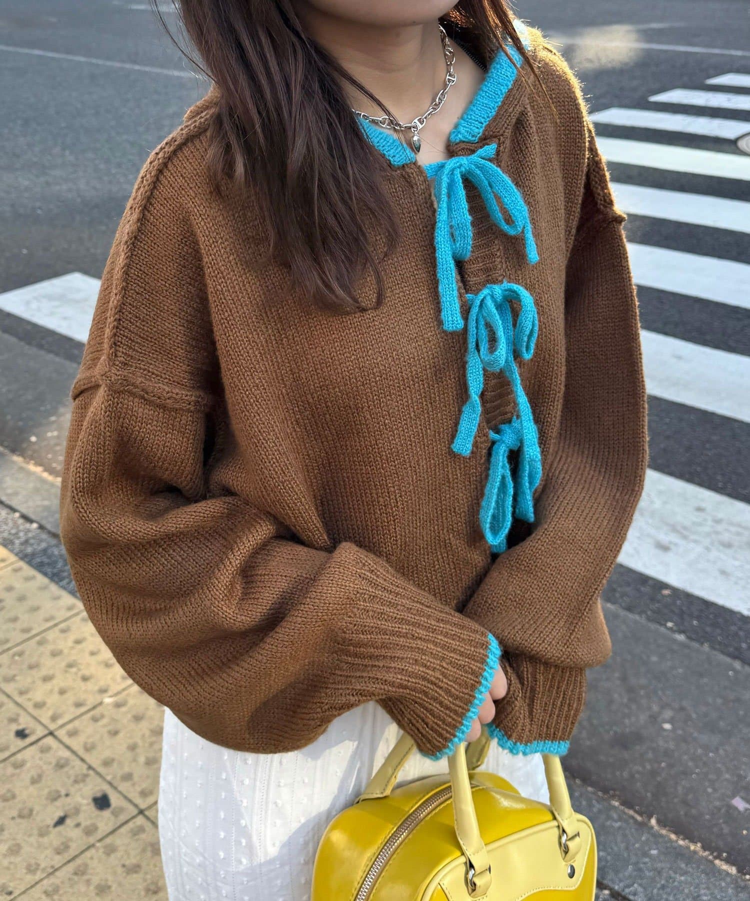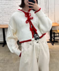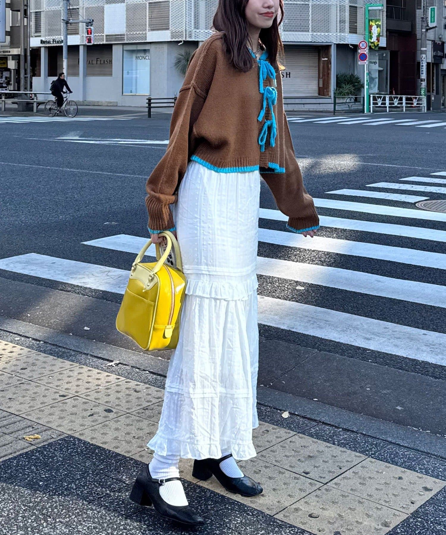 フロントのリボンやたっぷりのボリュームスリーブが甘めな印象をプラス!