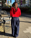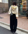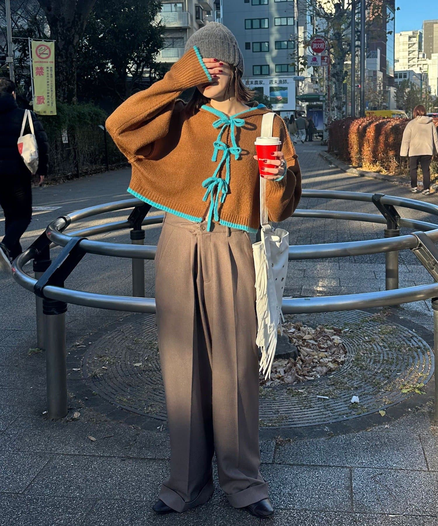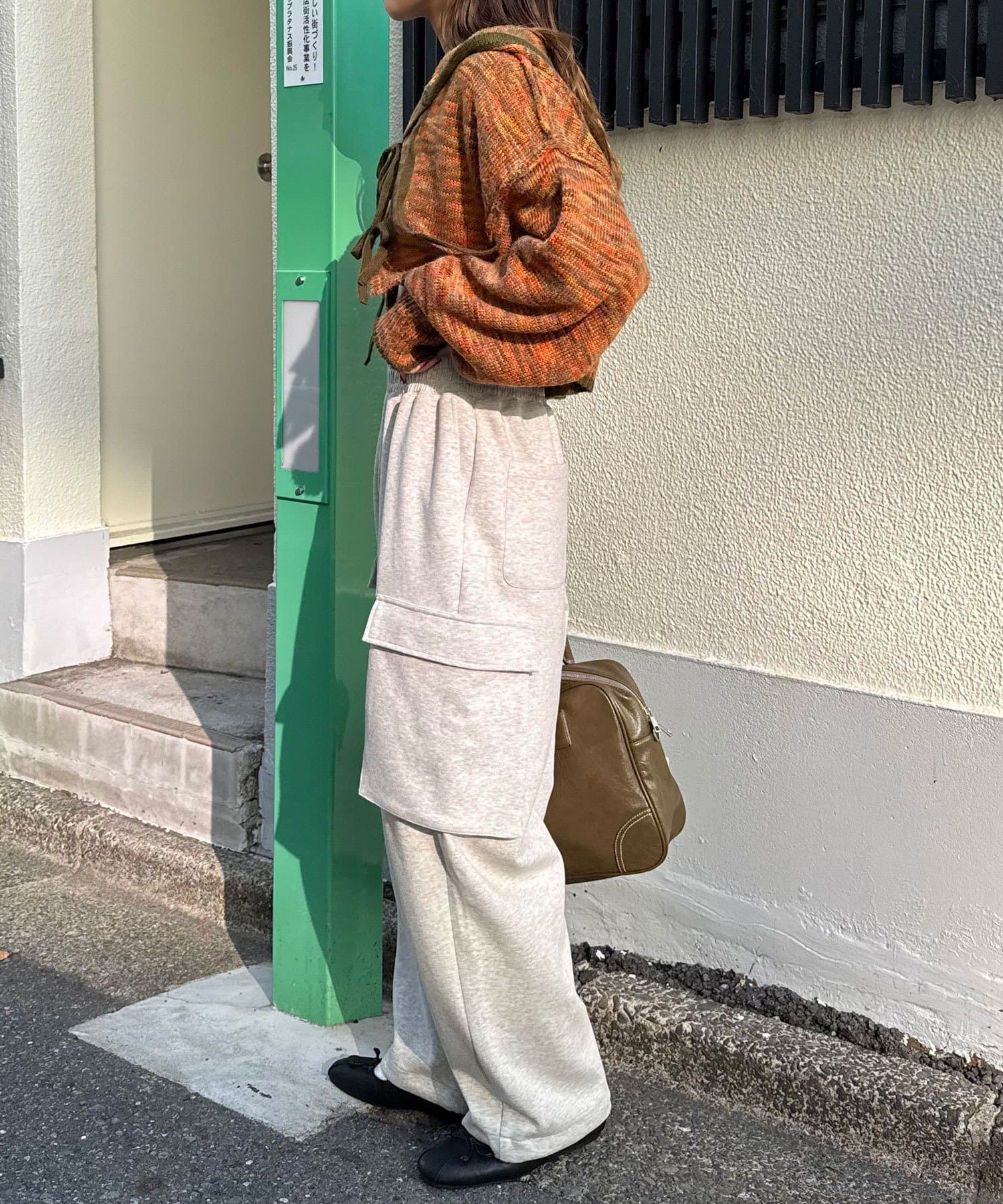 カーゴパンツのゆるっと感とニットのコンパクトさでおしゃれなシルエットに。