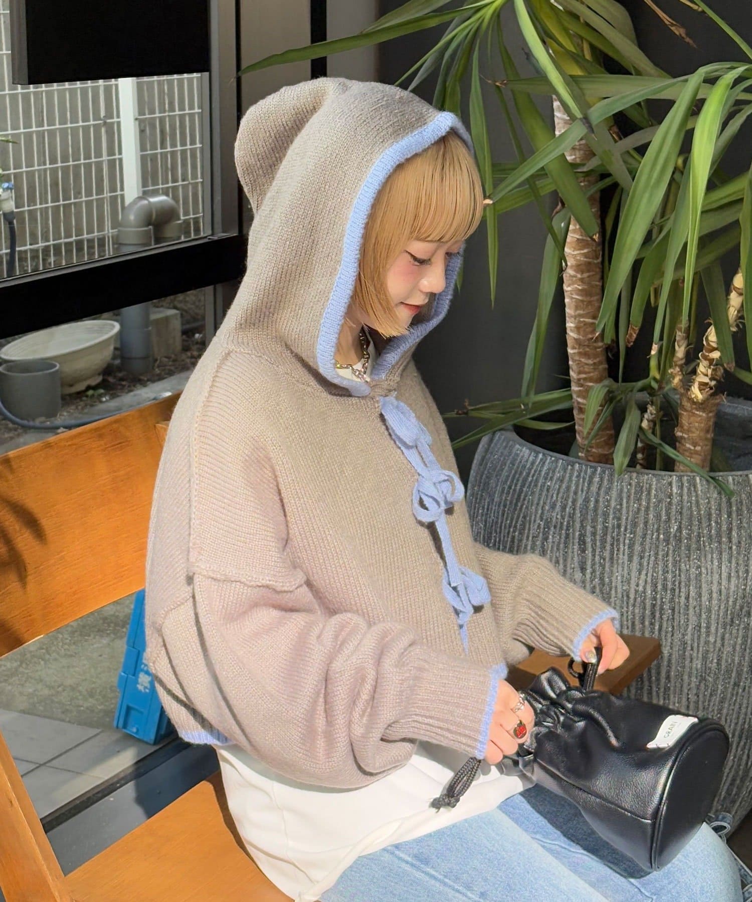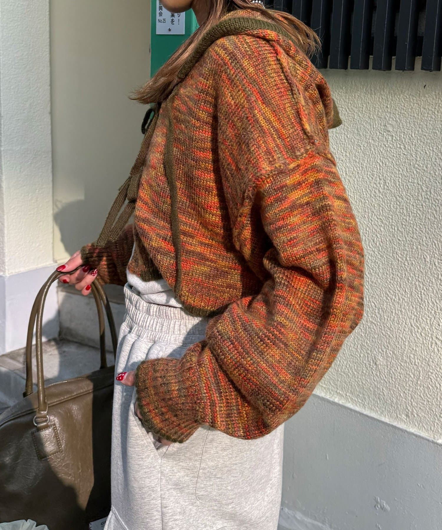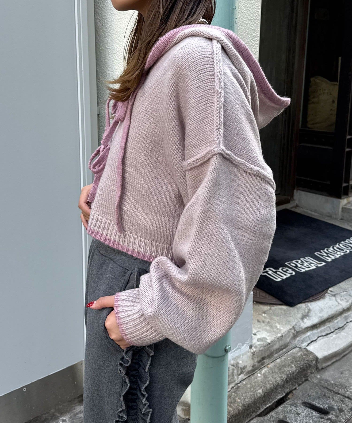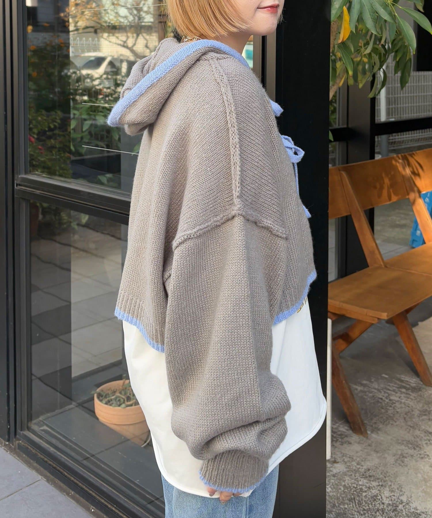 短丈シルエットでスタイルアップ効果抜群なニットフーディー。