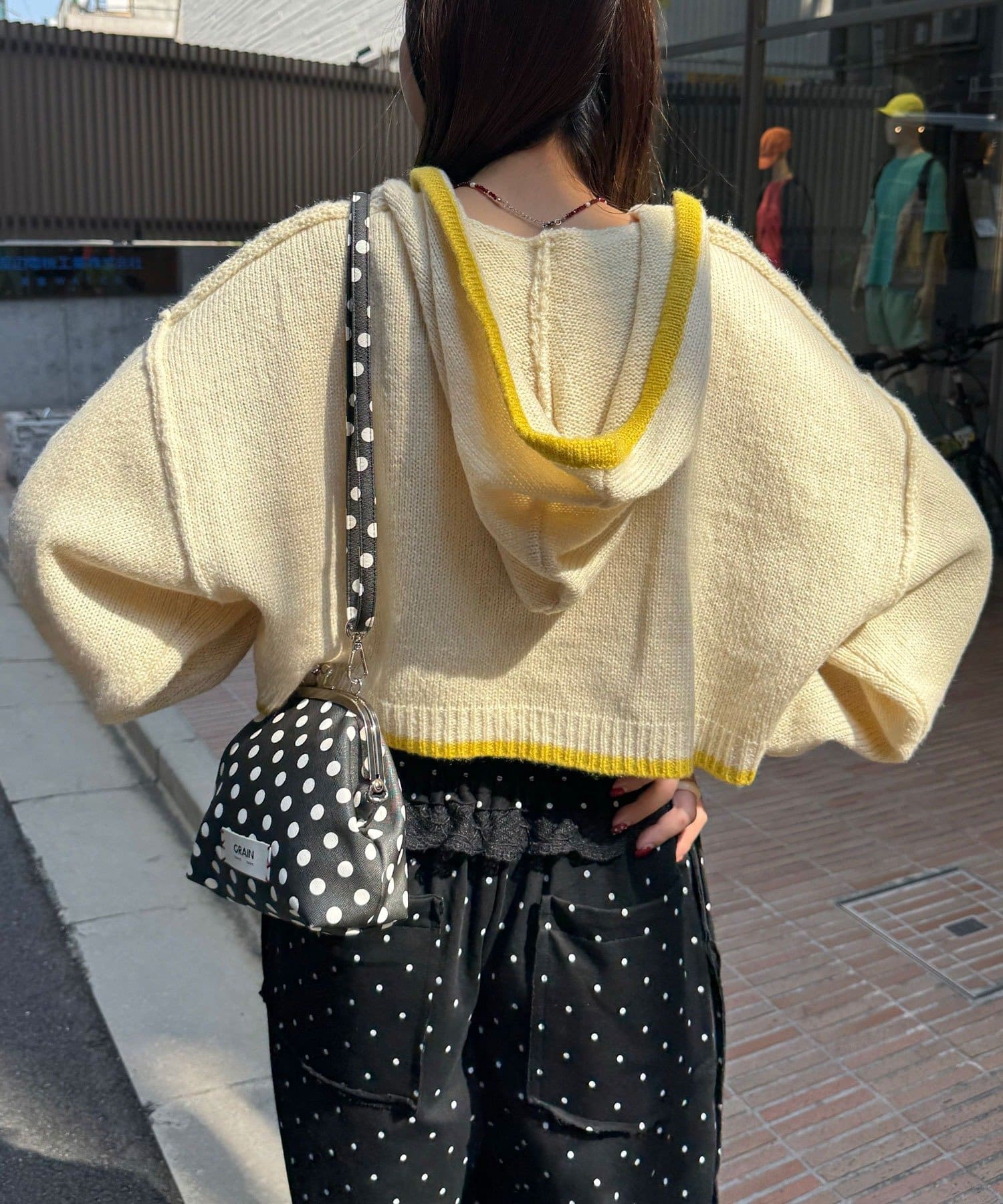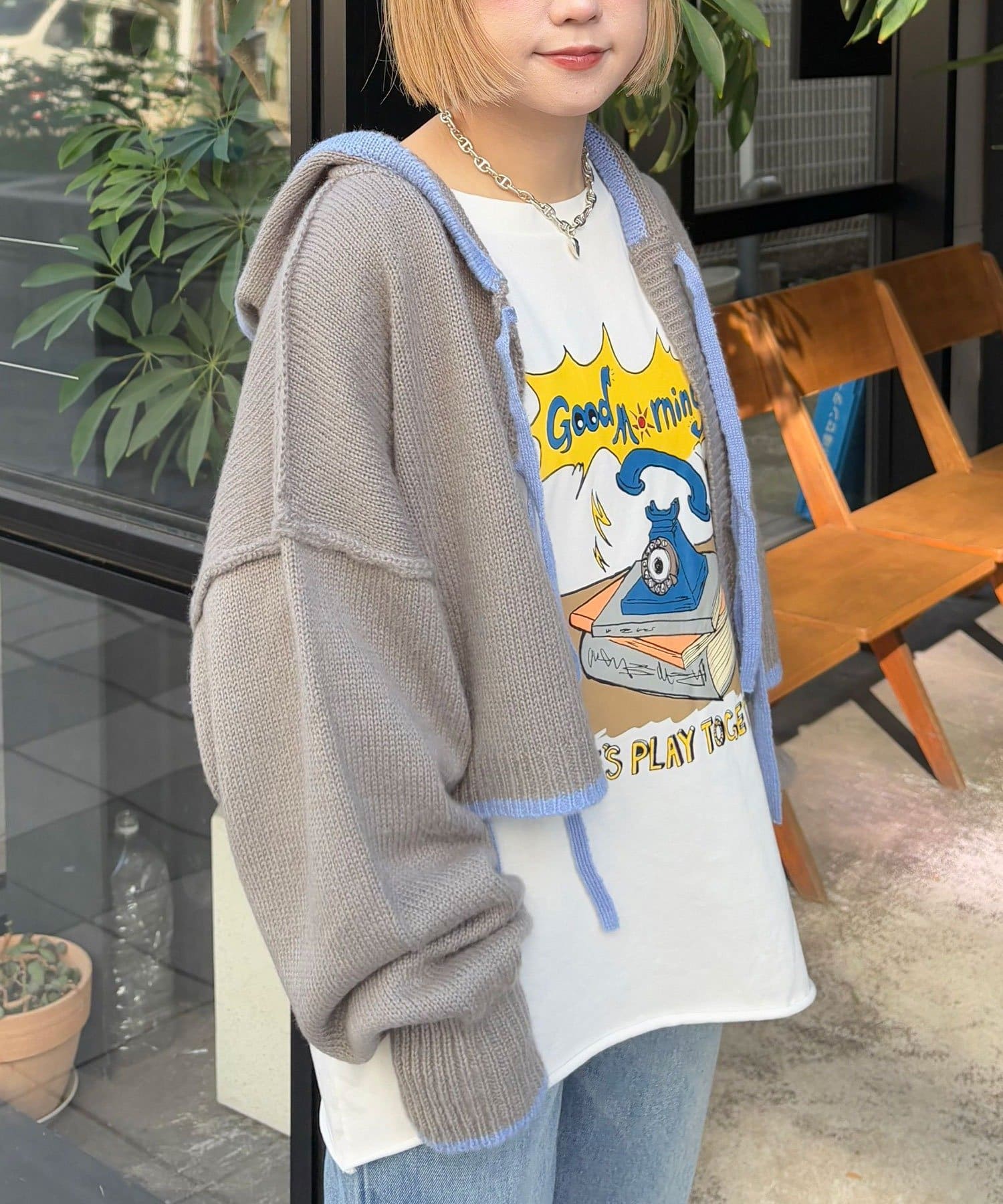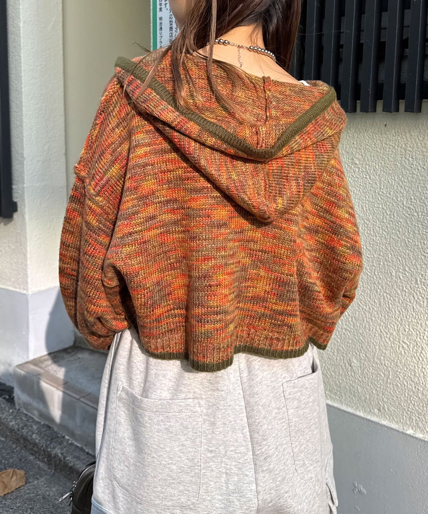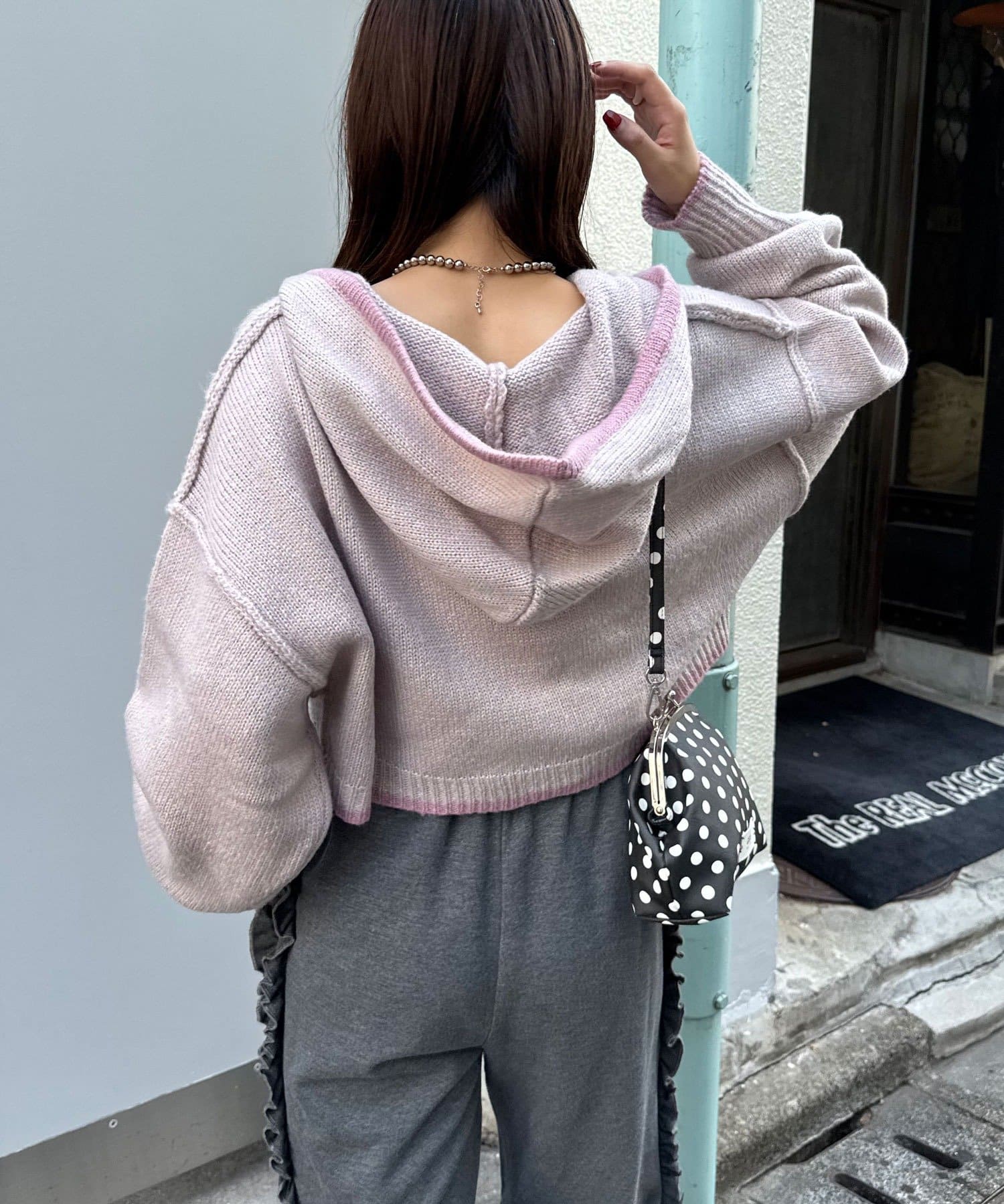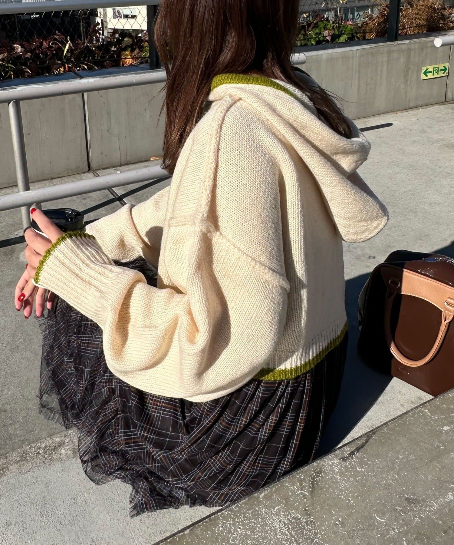 短丈シルエットでスタイルアップ効果抜群なニットフーディー。