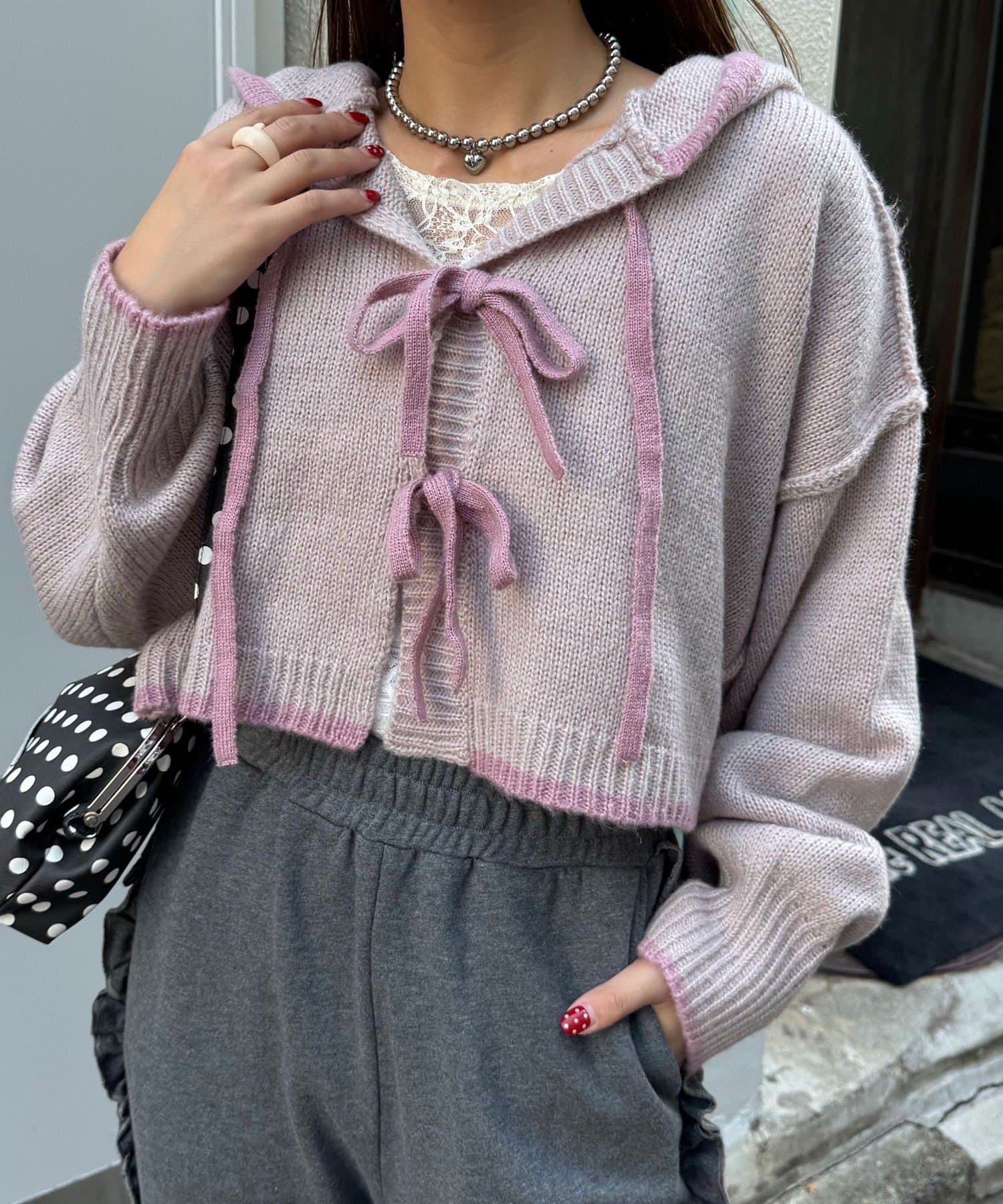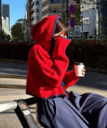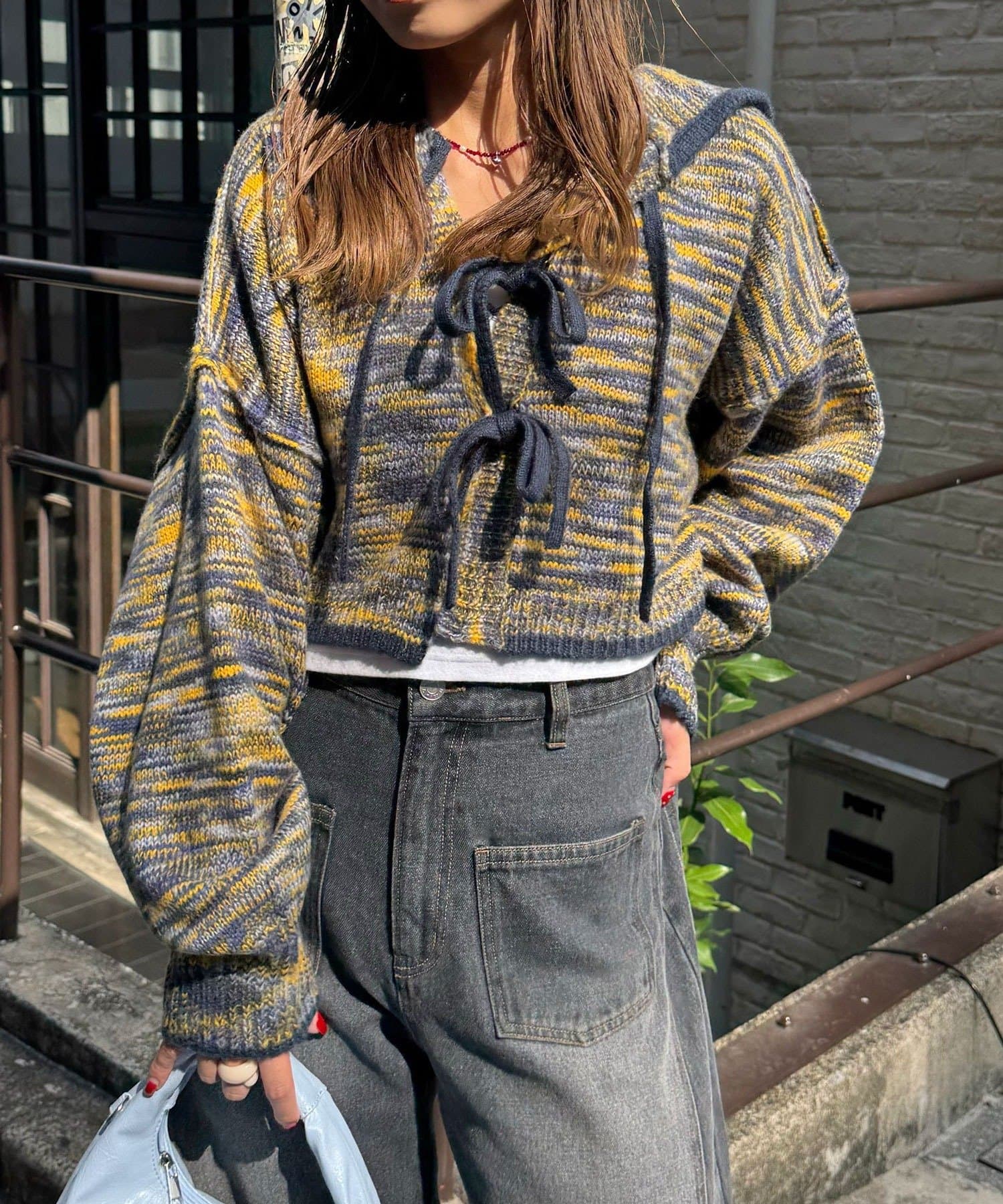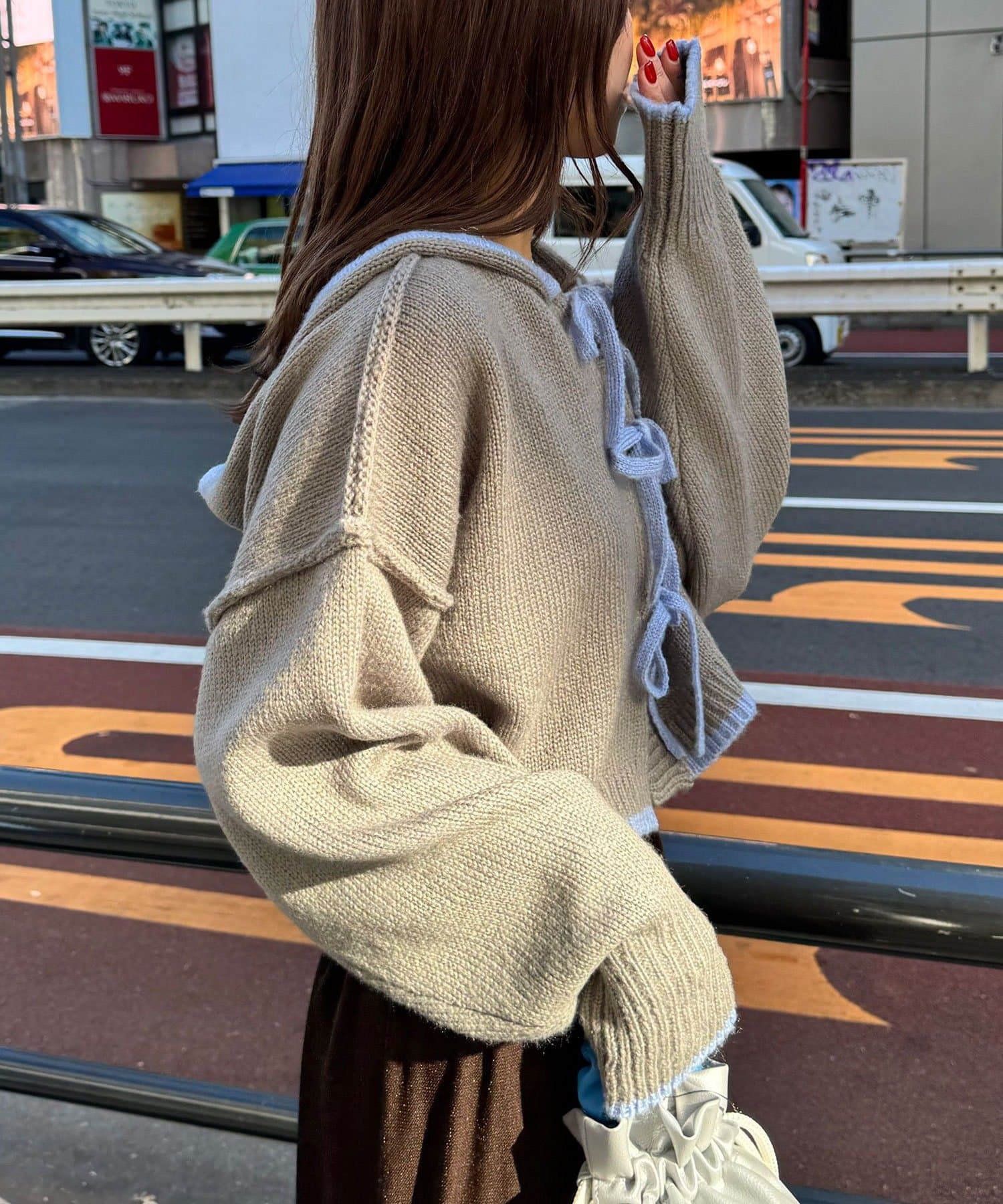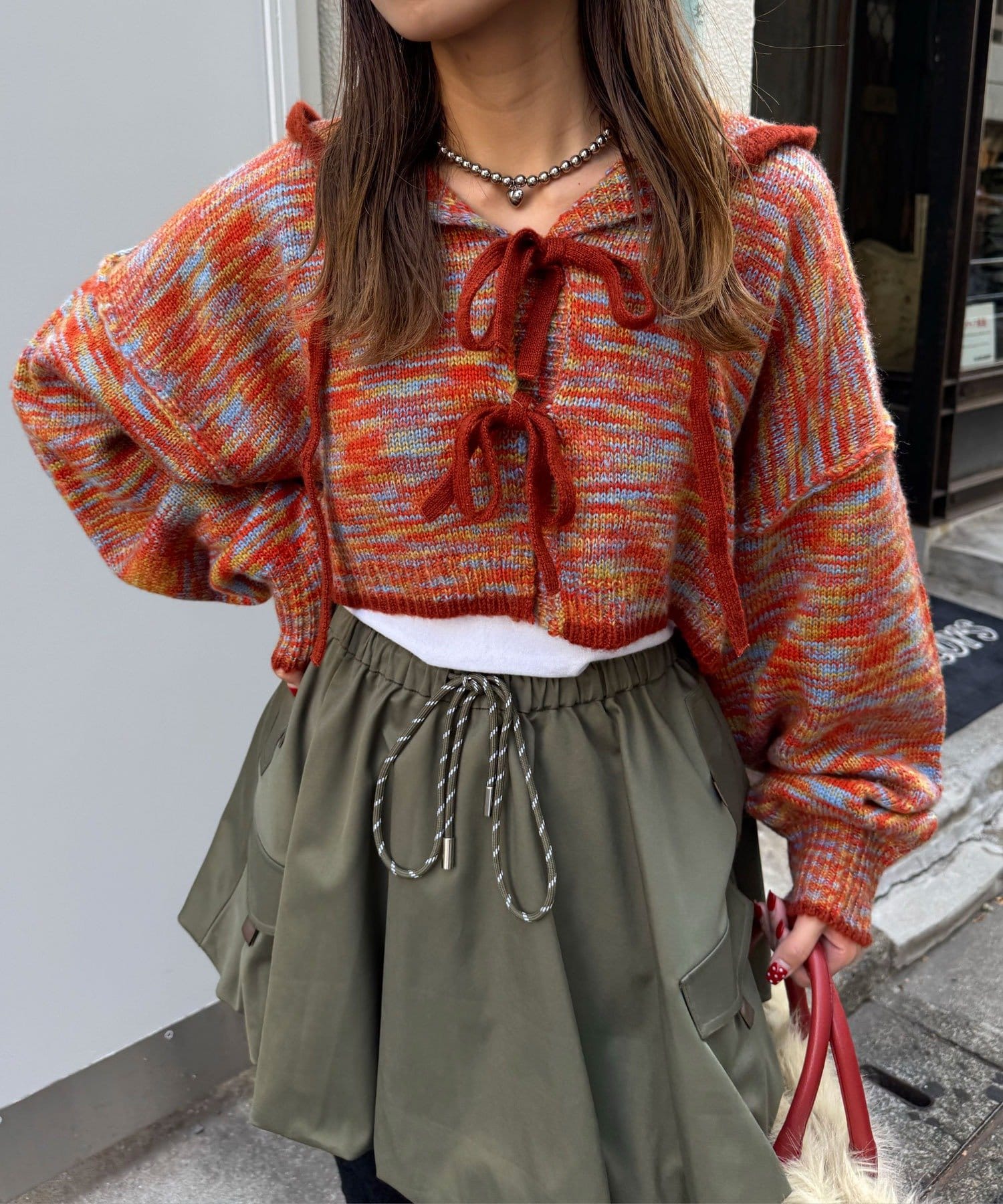 短丈シルエットでスタイルアップ効果抜群なニットフーディー。