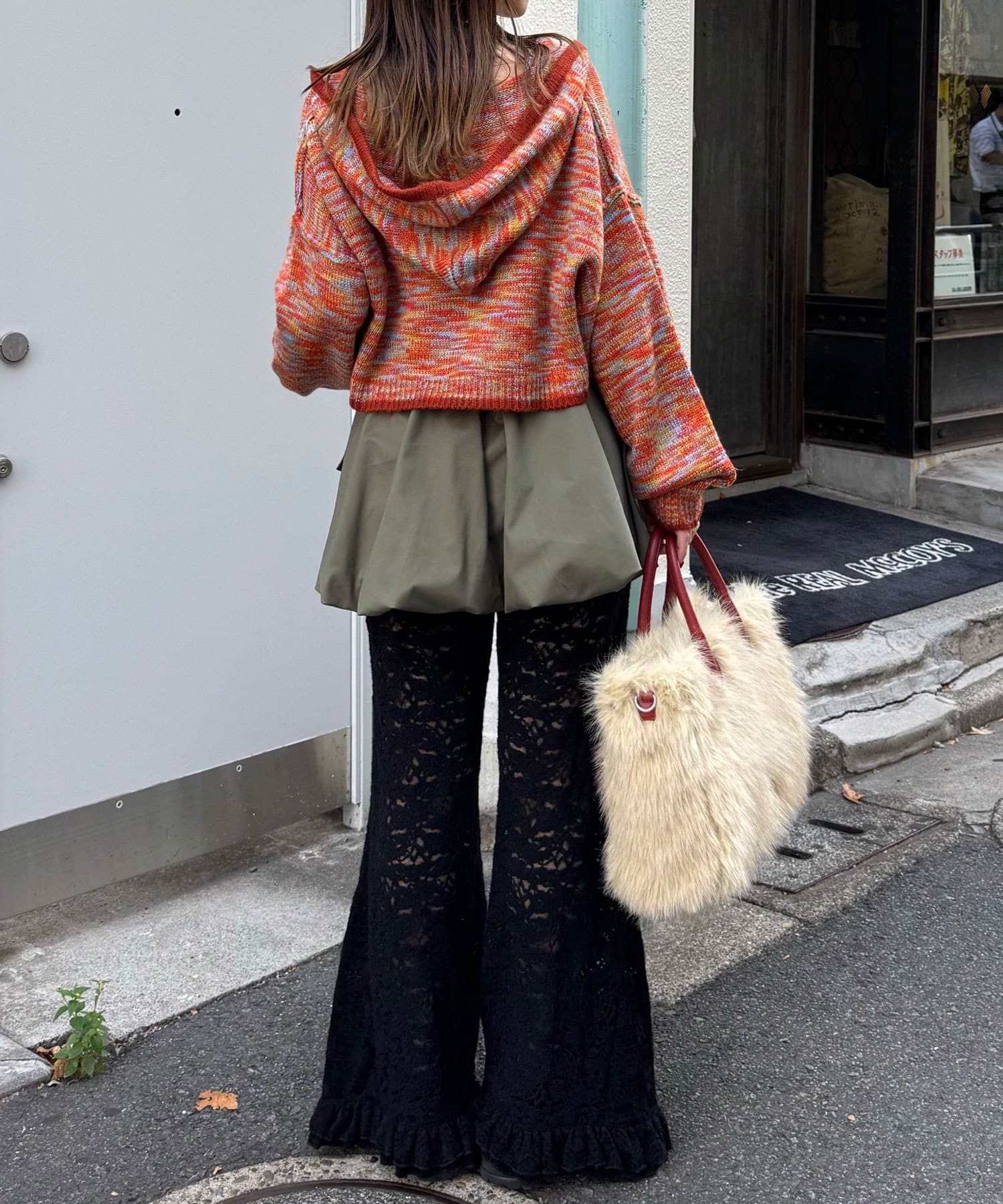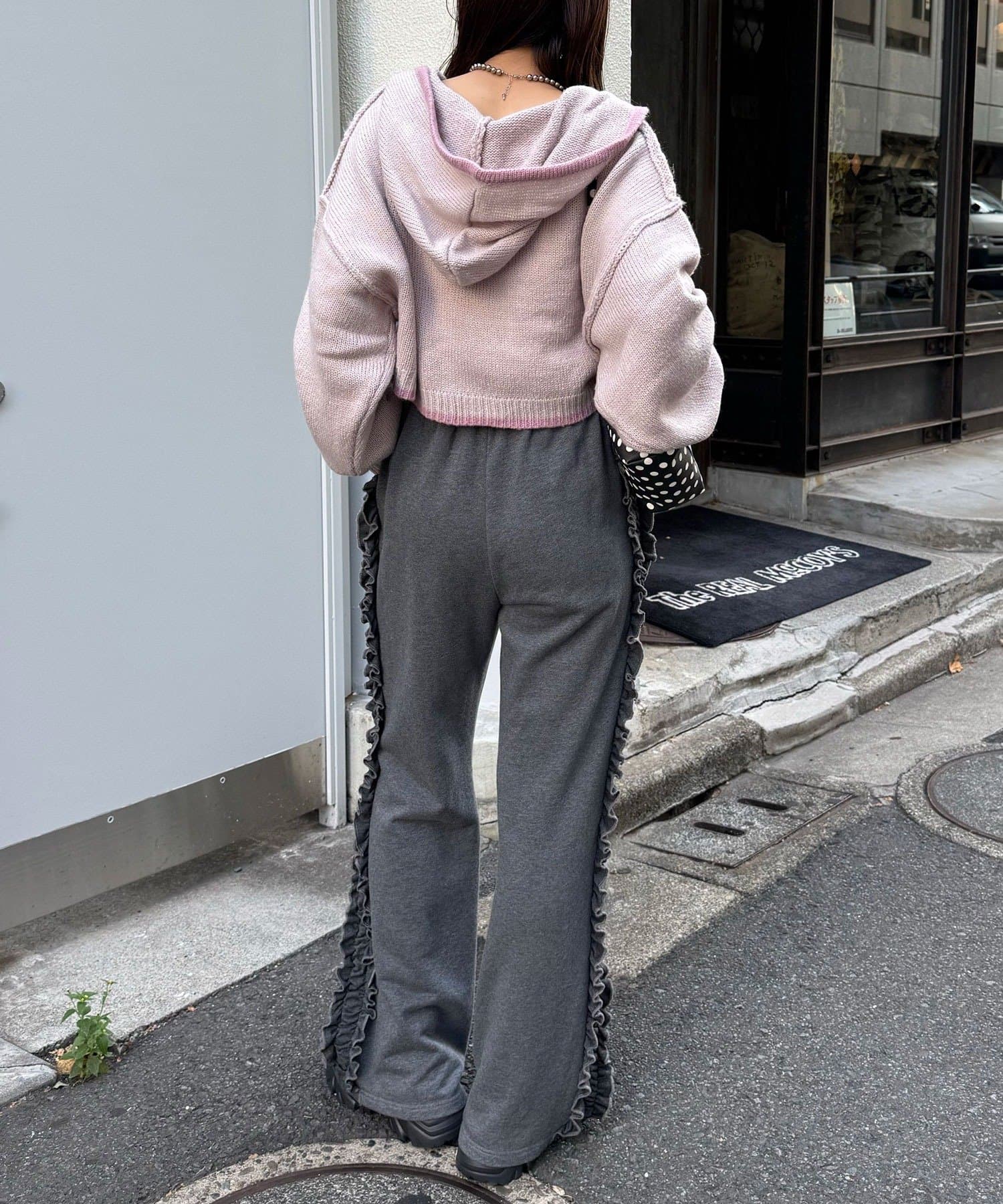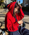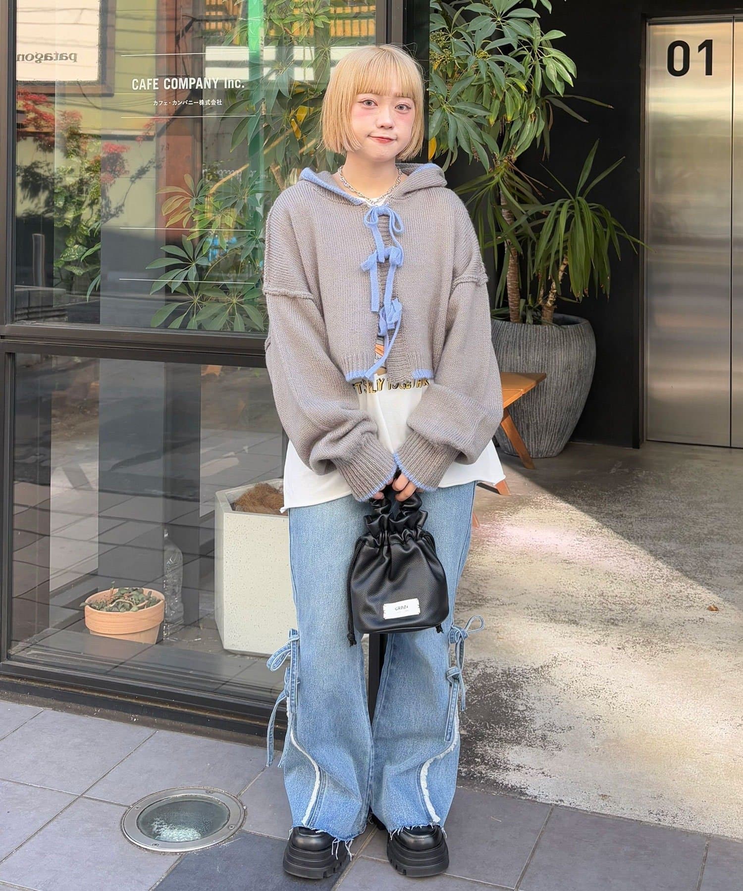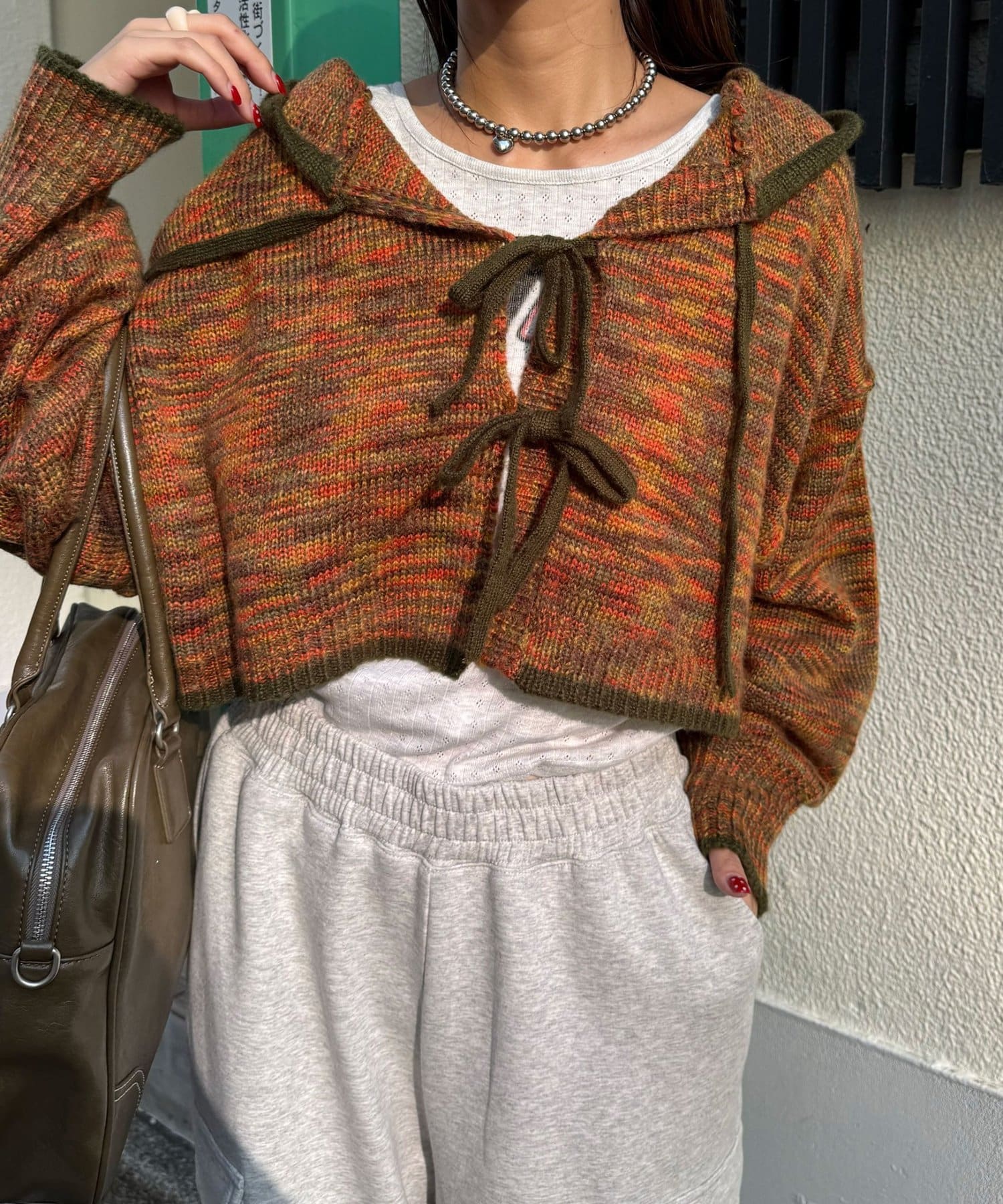短丈シルエットでスタイルアップ効果抜群なニットフーディー。
