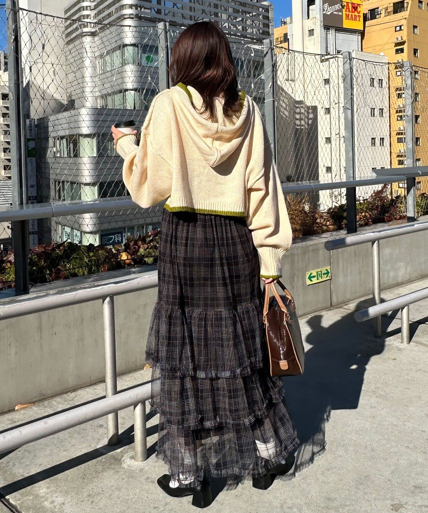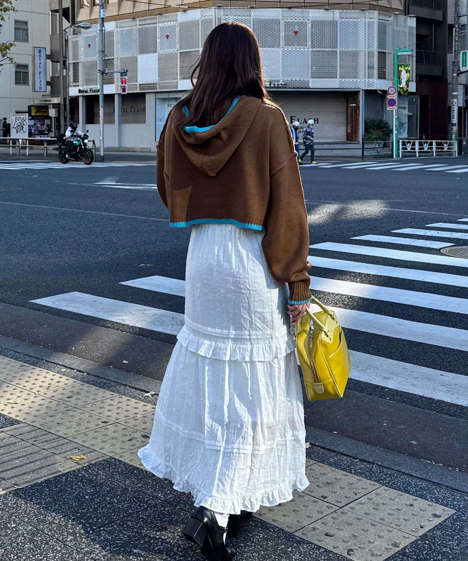 ワンピースに重ねて甘めカジュアルな印象に◎