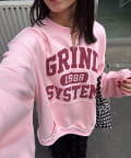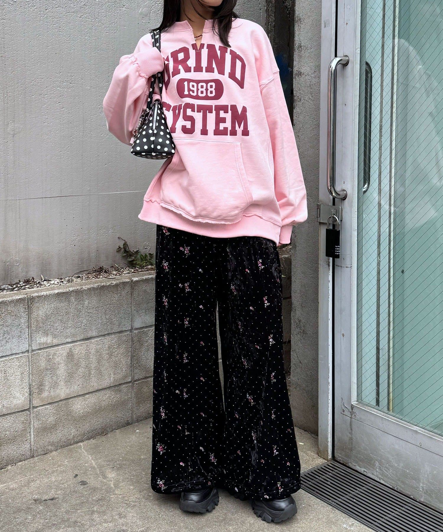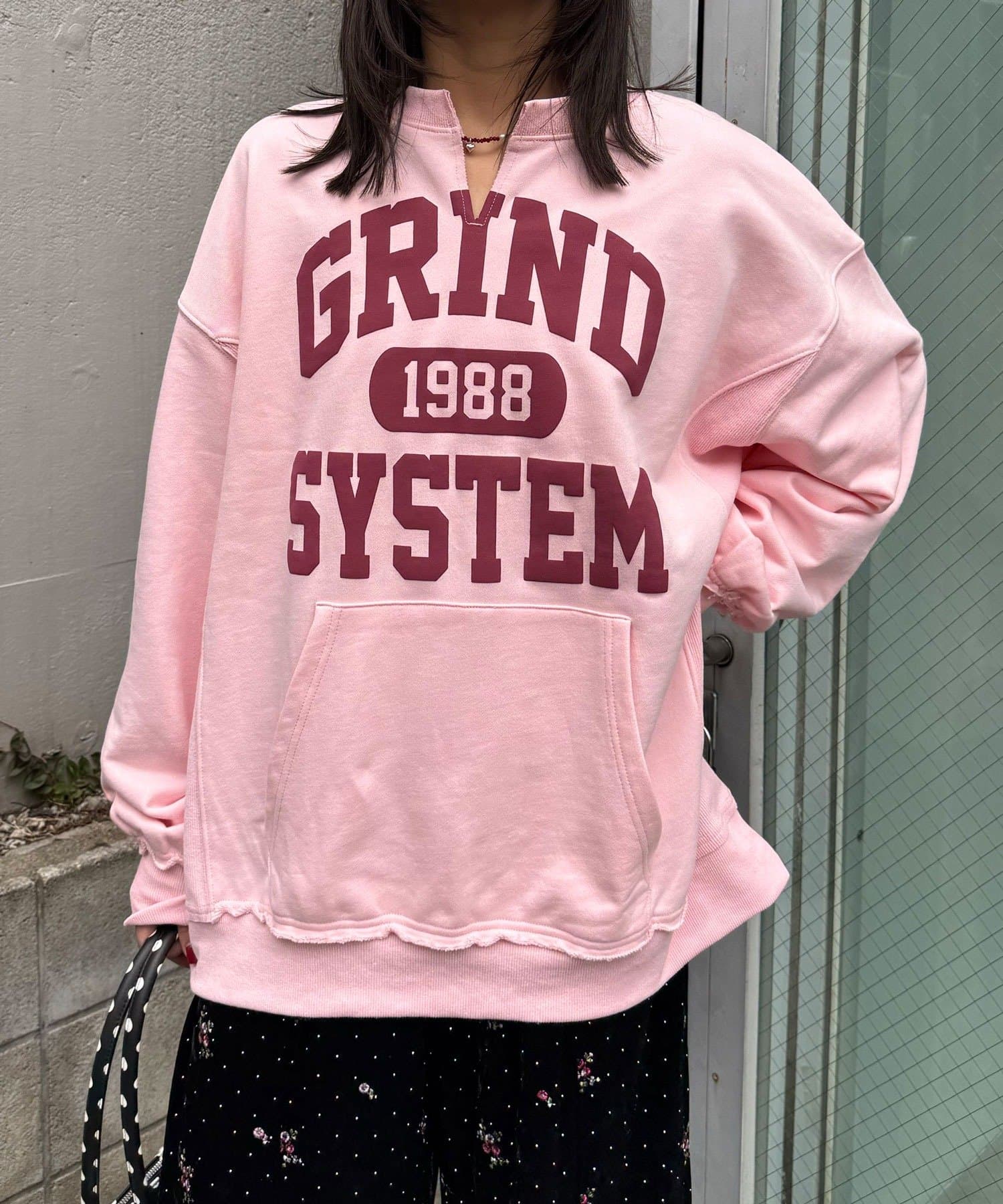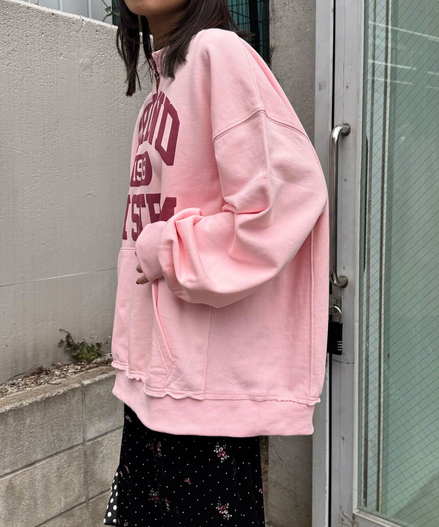 ゆるっと着られるビッグシルエットに、スキッパーデザインで抜け感をプラスしたカレッジロゴスウェット。