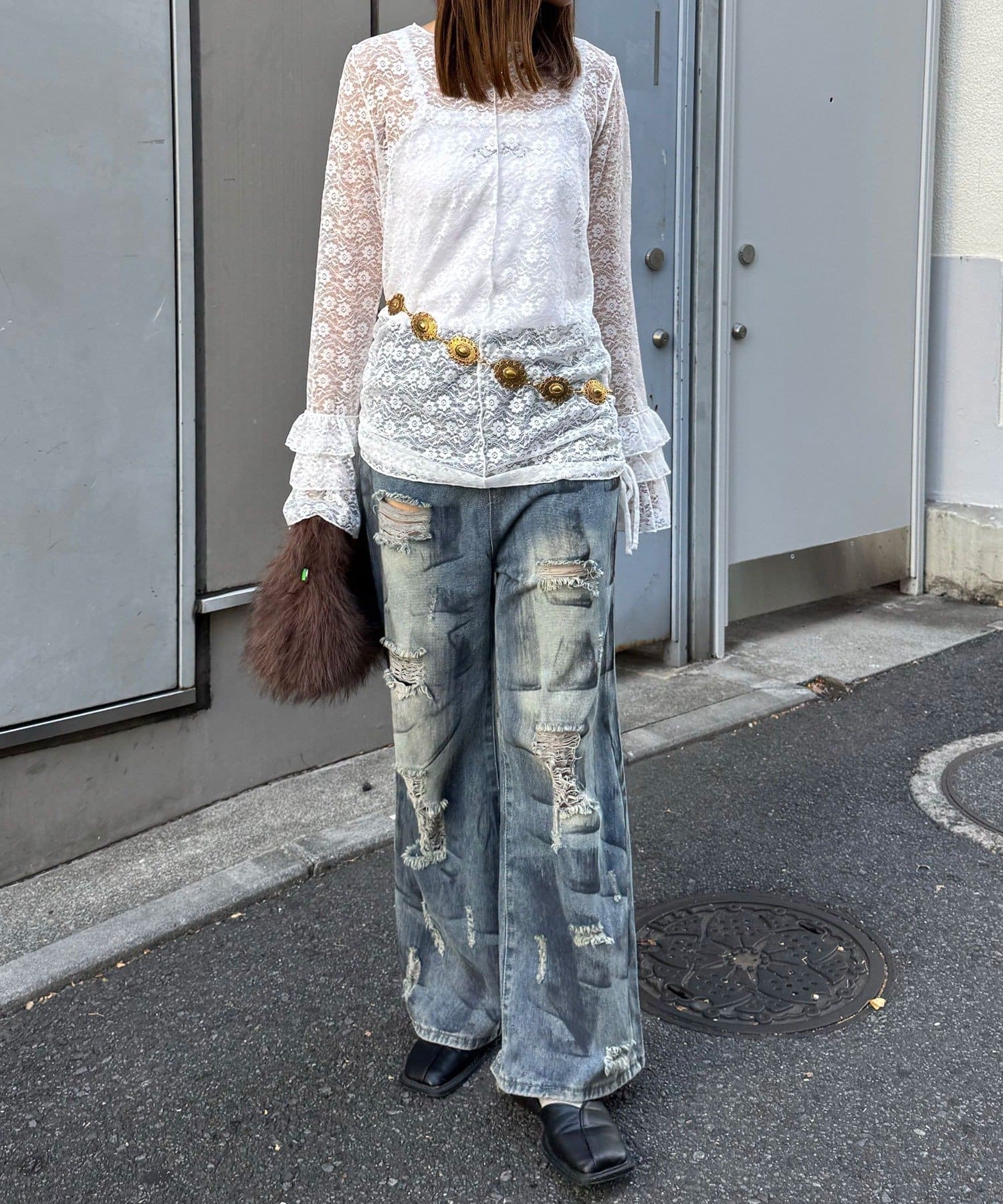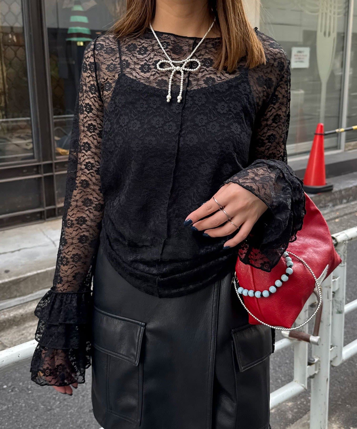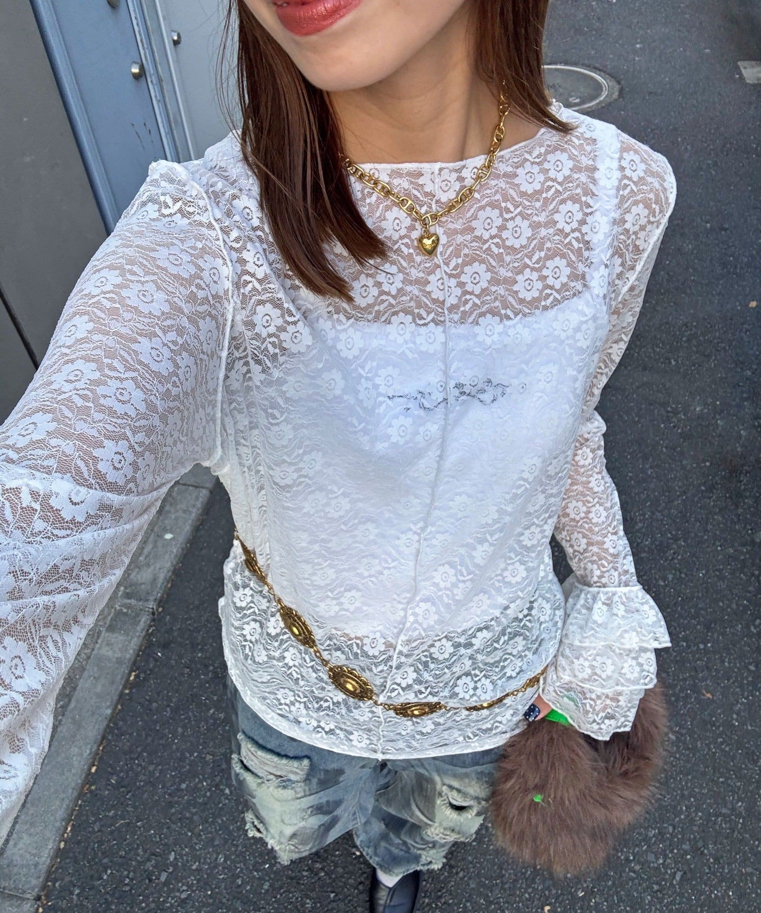 透け感を活かしてインナーをチラ見せしたり、他のトップスの下からレースを覗かせても可愛い万能アイテムです。