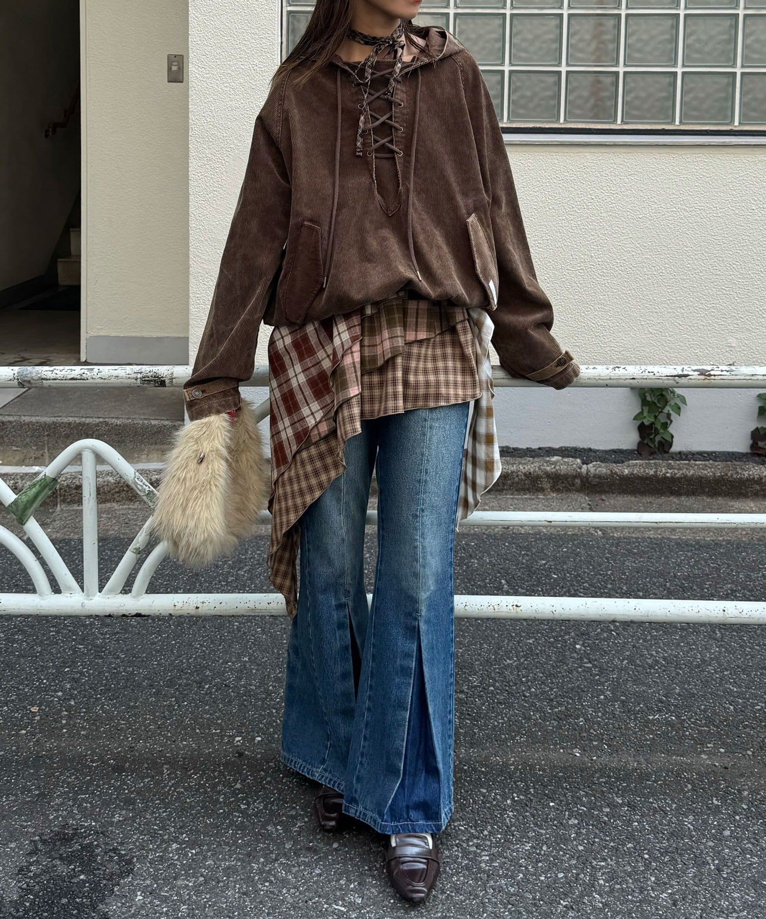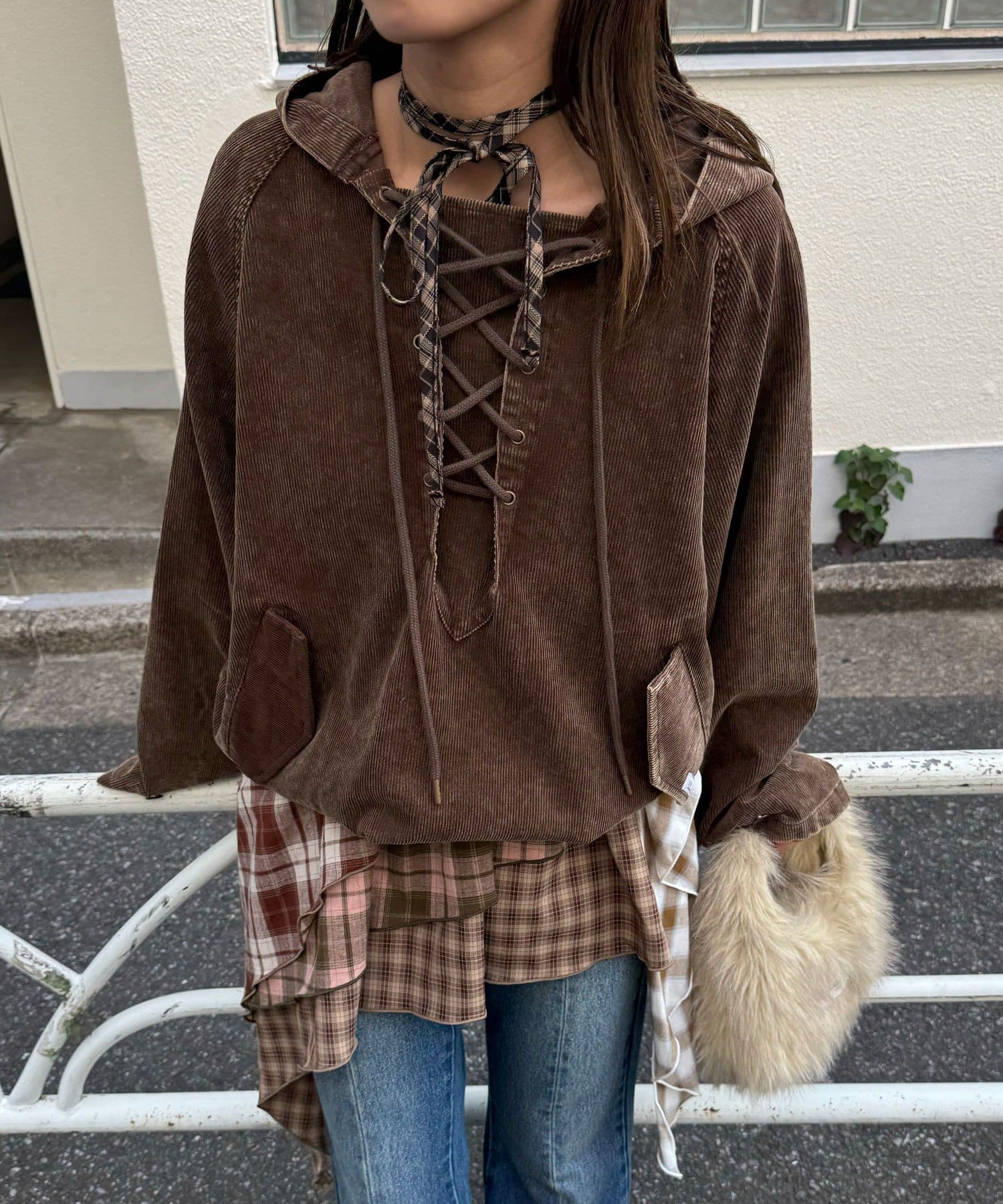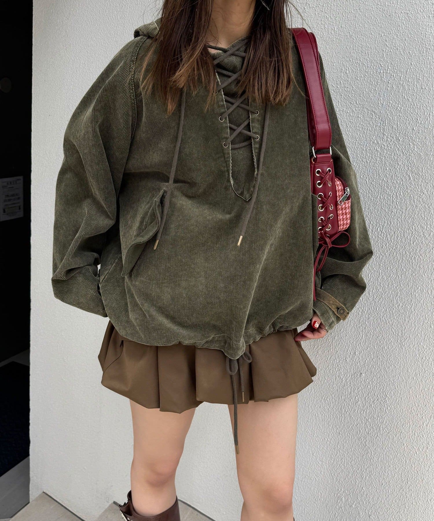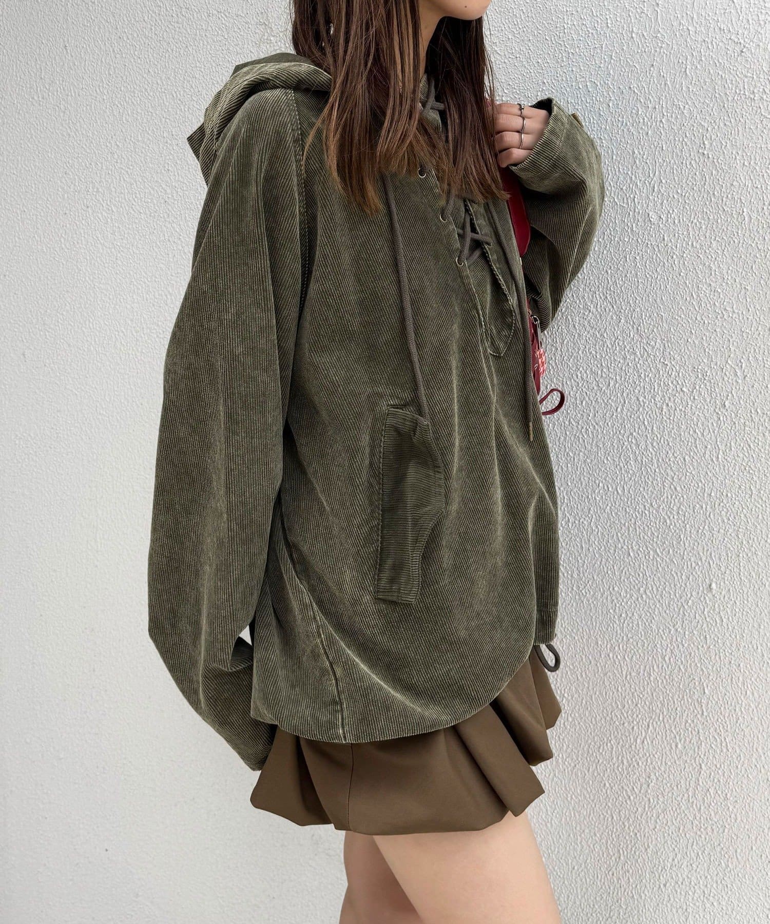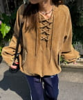 カジュアルな中に映えるレースアップデザインで、一枚で存在感のあるスタイルが決まります。